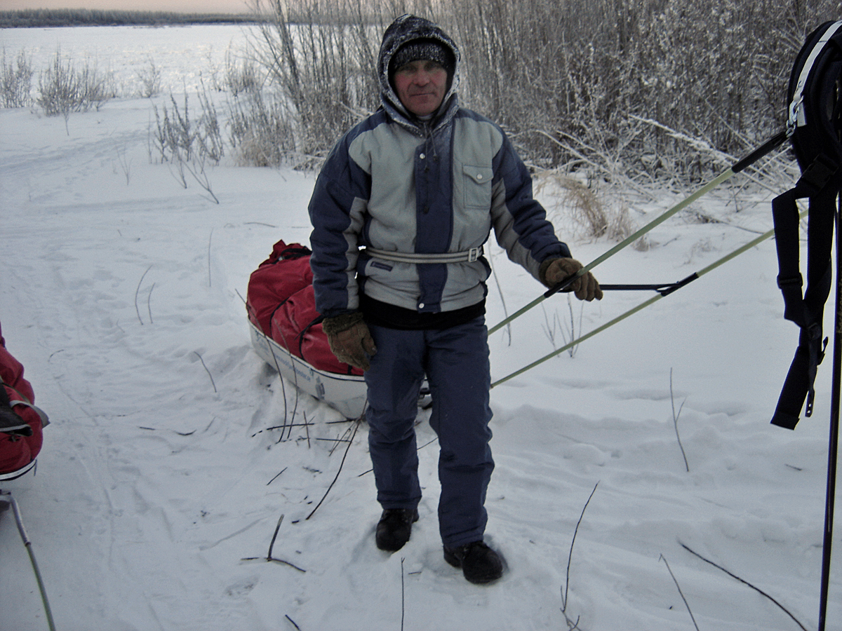 -48 degrees Celius, Johan told me. It was our first day of setting off on skis down the Kolyma River. It was early December and dead dark outside. We had spent 6 weeks in Zyryanka putting on fat by eating everything we could. And it was almost dangerous trying to get our heavy pulks down the stairs. We reckoned they weighed around a 150 kg:s. We had brought lots of gear since we were unsure how inhabited the river was at this time of the year. Our friends were there to wave goodbye to us. They had been the best of friends during our time in the settlement. It was dark, very cold and our moves were heard far away. Our plan was to ski on a snowmovile track for 22 km to a loner namned Alexeyev and stay with him for a night. We head trained quite well back home. But most of all canoing all the way from Kul river to Zyryanka had hardened us up. But -48 felt demanding. We said goodbye, climbed into to the harness and clipped on the belt. We said goodye again and tried to move. I didn´t move at all. So i used all my power to move forward and slowly we moved down the snowmobile track. Suddenly a tiny little bump appeared on the track. I got stuck. It was maybe 10 centimeters high. Johan forced his way over. I heard our friends shake their heads and smack their mouths in disbelief. 1500 km:s to go. More or less, to the end at Ambarchik Bay. I thought: I will never even make it out of town! Suddenly the local marathon runner, Ivan Fralov turned up. he wanted to guide us to Alexeyev. And then run home. 44 km:s. A normal run for him. in -48 degrees below Zero. His apearnace gave us force and inspiration and I got over the bump. We were finally heading north!