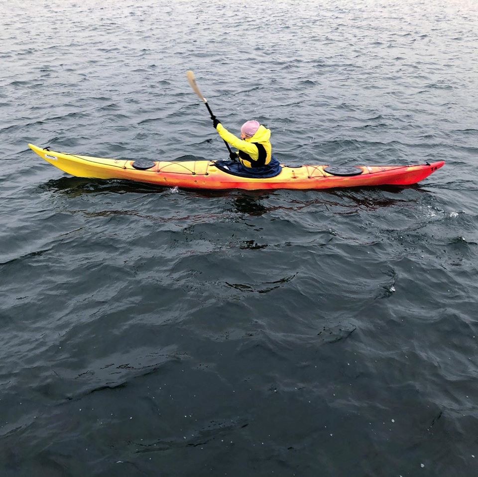 Even though we had a 10 m/s wind, plus 3 degrees C, we found a shelter at Mölle Harbour. Which we needed, since this was Pams first paddle session. Since she has always had good balance and is fearless, she learnt how to paddle the plastic kayak quickly. Or feel comfortable with it.