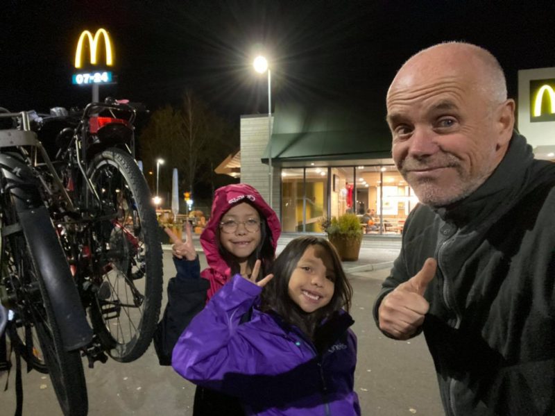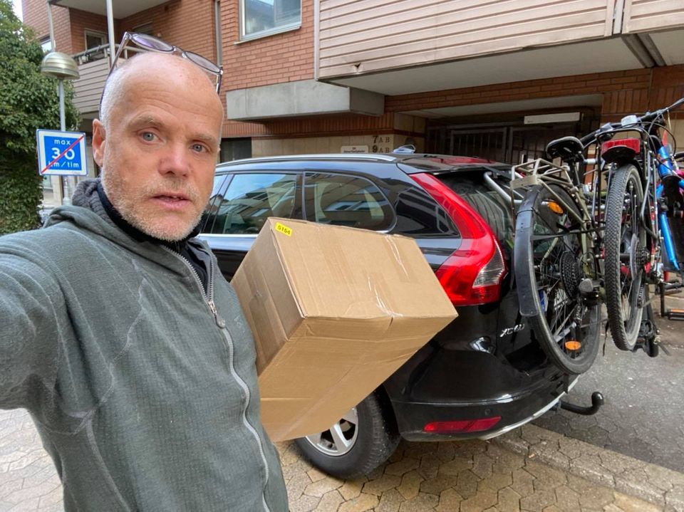Dag 1/Dag 1. (Swedish version, English version follows) Ödeshög. 0 km. 1204 km sammanlagt/in total. Väntar gör etapp 2 , 40 mil. Vaknade 04.00, full fart sedan dess. Tjejernas nya Gneis kläder har kommit! 5 minuter innan vi åkte…dramat hör börjat! 4 timmars åkning kvar./ Phase 2 coming up. 400 km. Woke up at 4 a.m. Busy since. The girls new Gneis outdoor clothes arrived. 5 min before setting off! The drama is on. 4 hours travel to go.