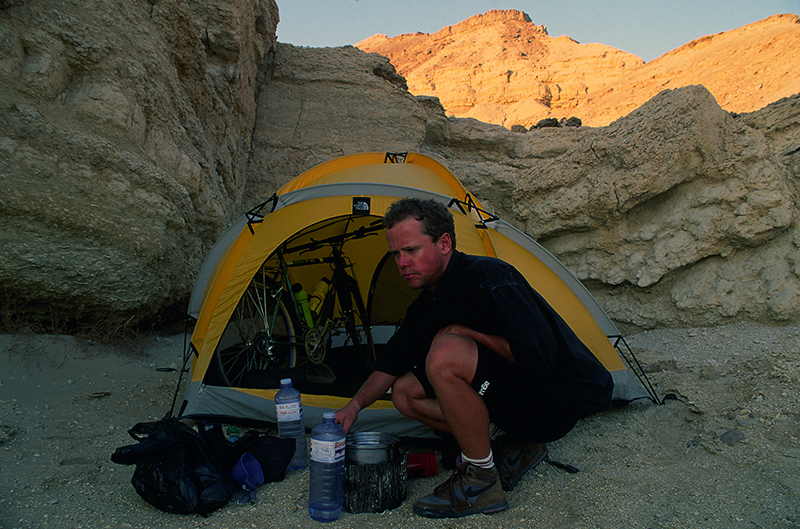 When I saw the pyramids at Giza 1994 I had spent almost 7 years all together on a bicycle. And cycled approximately 90 000 km. During the last 6 months I had been taking my bicycle into the tent regularly. As you can see on the first image taken in the Sinai. The journey from Lahore to Cairo was full of drama.