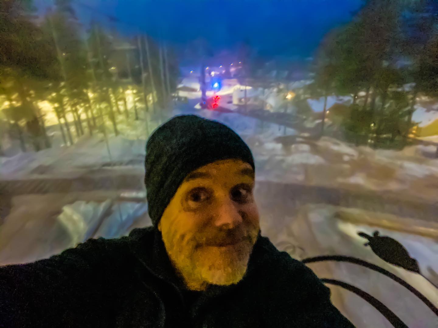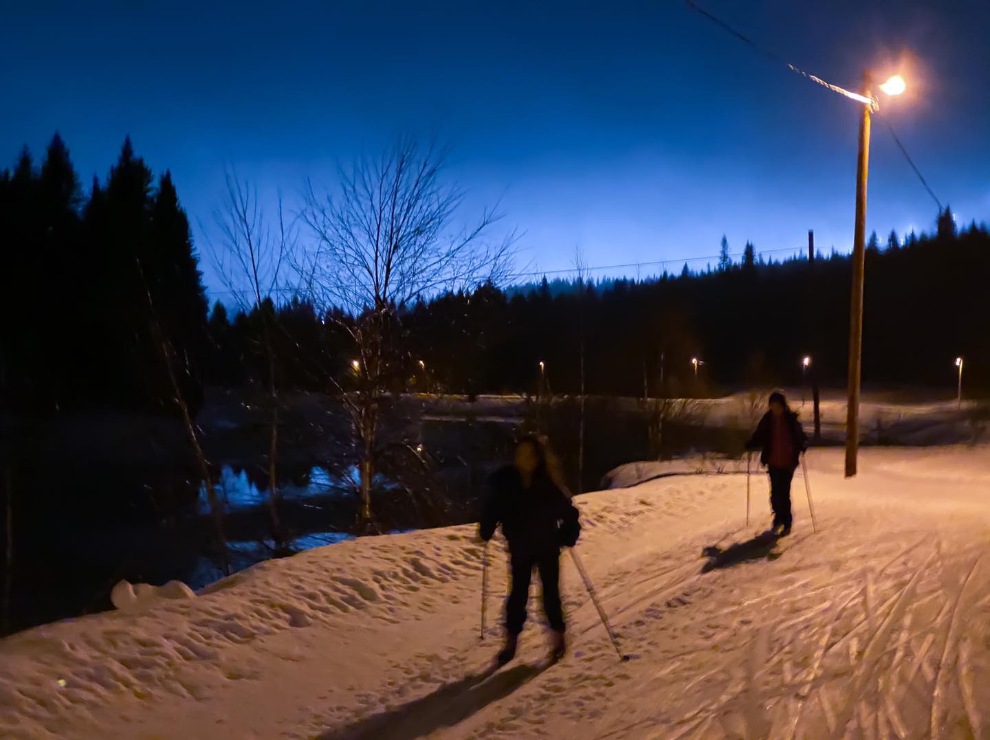 Klockan var sju, elljusbanan följde älven och vi hade varit ute nästan hela dagen. Dana är 8 år och berör redan en livsfråga som detta. Dana saknar den grönländska vildmarken. Hon vill flytta ut på landet och ha hund. Helst flera. Det är ett dilemma för mig. Jag trivs i Malmö och känner att jag har gjort mitt på glesbygden. För Eva är skolan viktig, och som hon säger, adekvat utbildning. Men precis som Dana har hon blivit förälskad i snö och vinter från både Sibirien, Kazakhstan och Grönland. En snörik vinter är en del av vårt liv. Vi pratar mycket mer här än i Malmö. Bättre tid än detta finns nog inte!