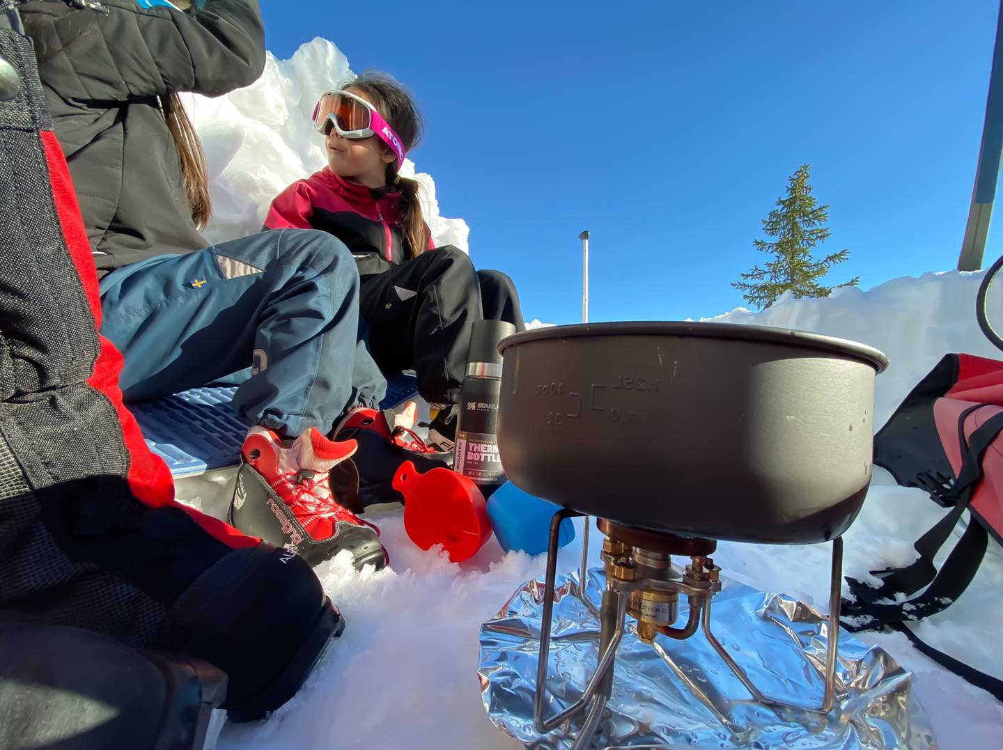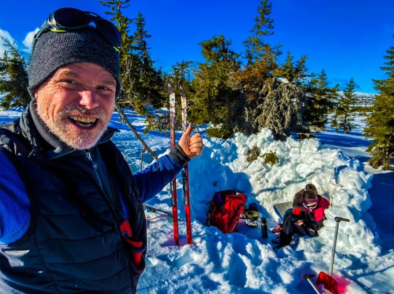 Vi körde ett par kilometer i blåsten, skottade upp en vindskydd och var klara strax innan live sändningen på Instagram. Jag var helt utmattad vid det här laget. Knockad. Sändning får anses urusel. Tjejerna var lika trötta och var extremt fåordiga. Halv fyra åkte vi alla trötta och läätt upprörda tillbaka till parkeringen.