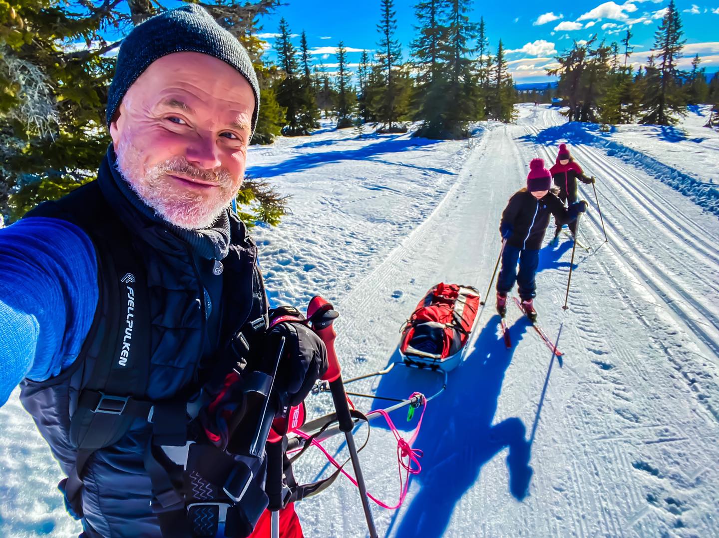 Klockan 11skidade vi iväg med pulkan ut på fjället vid underbara Hemfjällstangen! Varför åka skidor vid Kläppen när paradiset finns här?