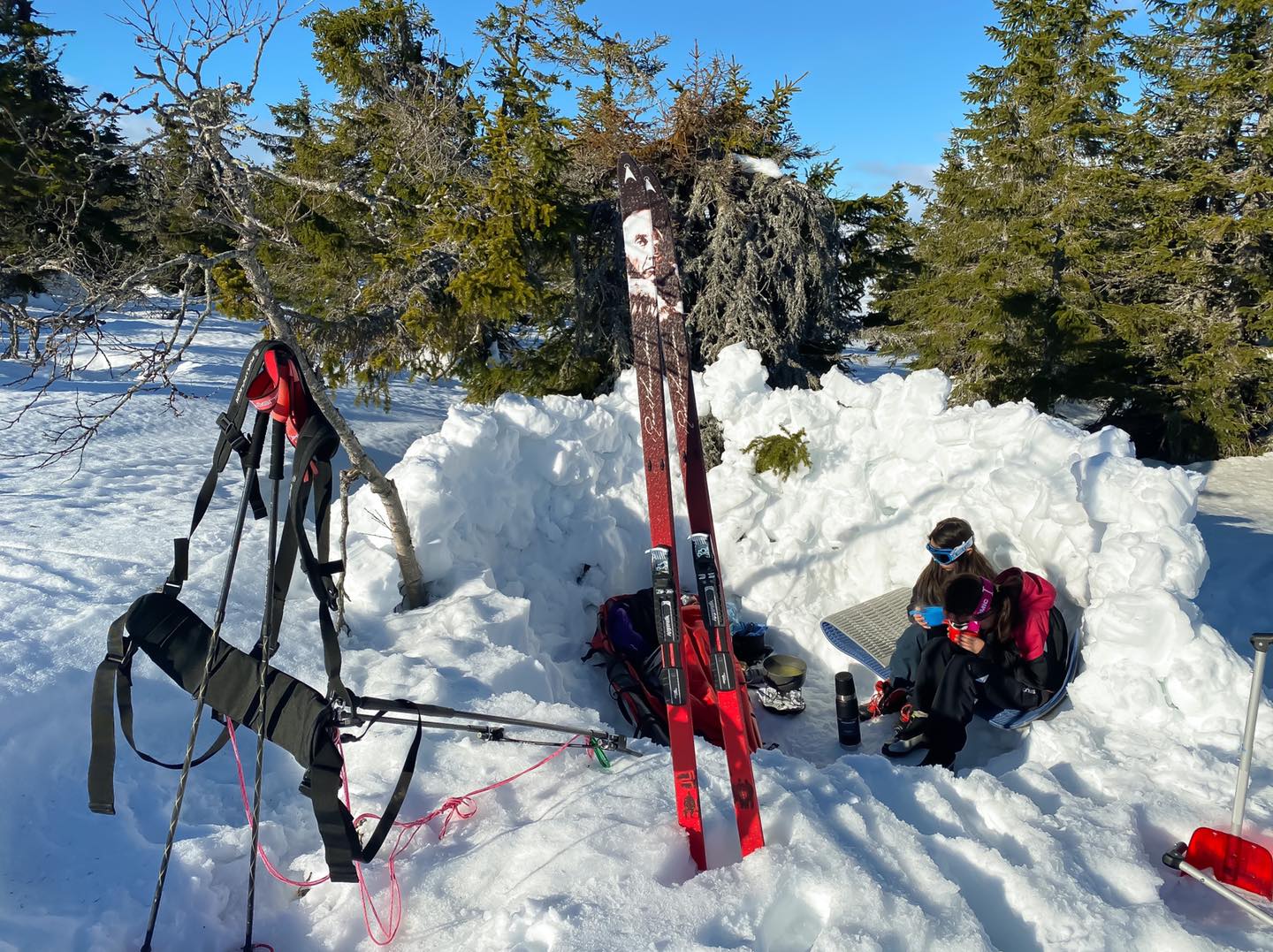 Vi körde ett par kilometer i blåsten, skottade upp en vindskydd och var klara strax innan live sändningen på Instagram. Jag var helt utmattad vid det här laget. Knockad. Sändning får anses urusel. Tjejerna var lika trötta och var extremt fåordiga. Halv fyra åkte vi alla trötta och läätt upprörda tillbaka till parkeringen.