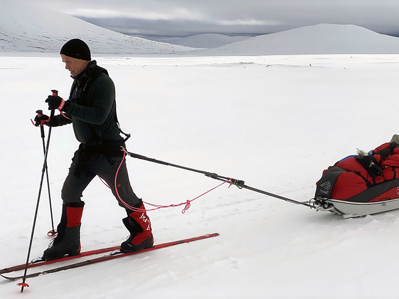 It is a tremendous feeling being on a wintertrip with the girls. Not that cold but windy. The day started with a pretty tough climb up from Grövelsjön Mountain Station with this heavy sledge. Around 60 kg. All my gear and the girls plus all food and fuel. Good test.