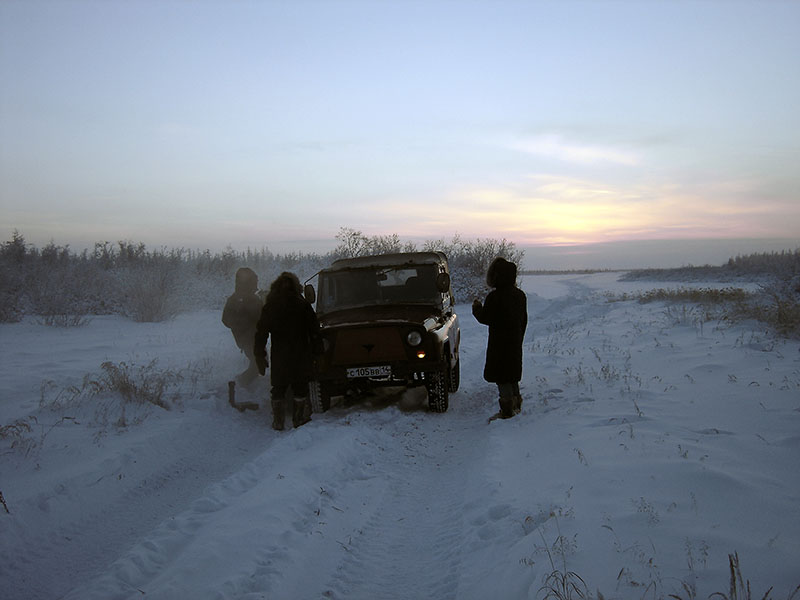 Our friend Sergey from Zyryanka, who we did meet south of Cherski early April, he told us an amazing story. On route -because time is of essence- he got hit by the worst of tooth aches. So bad that pus came out through his eyes. He was in the middle of nowhere. She he drank a liter of vodka, took a pair of pliers, pulled his painful tooth out, drank another liter of vodka. He sweated in fever for two days, whilst his lorry was running. Woke up, felt good and contuined.