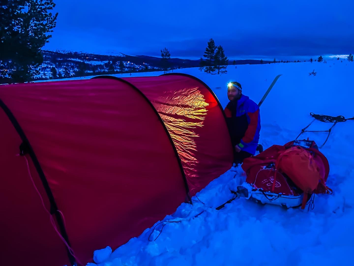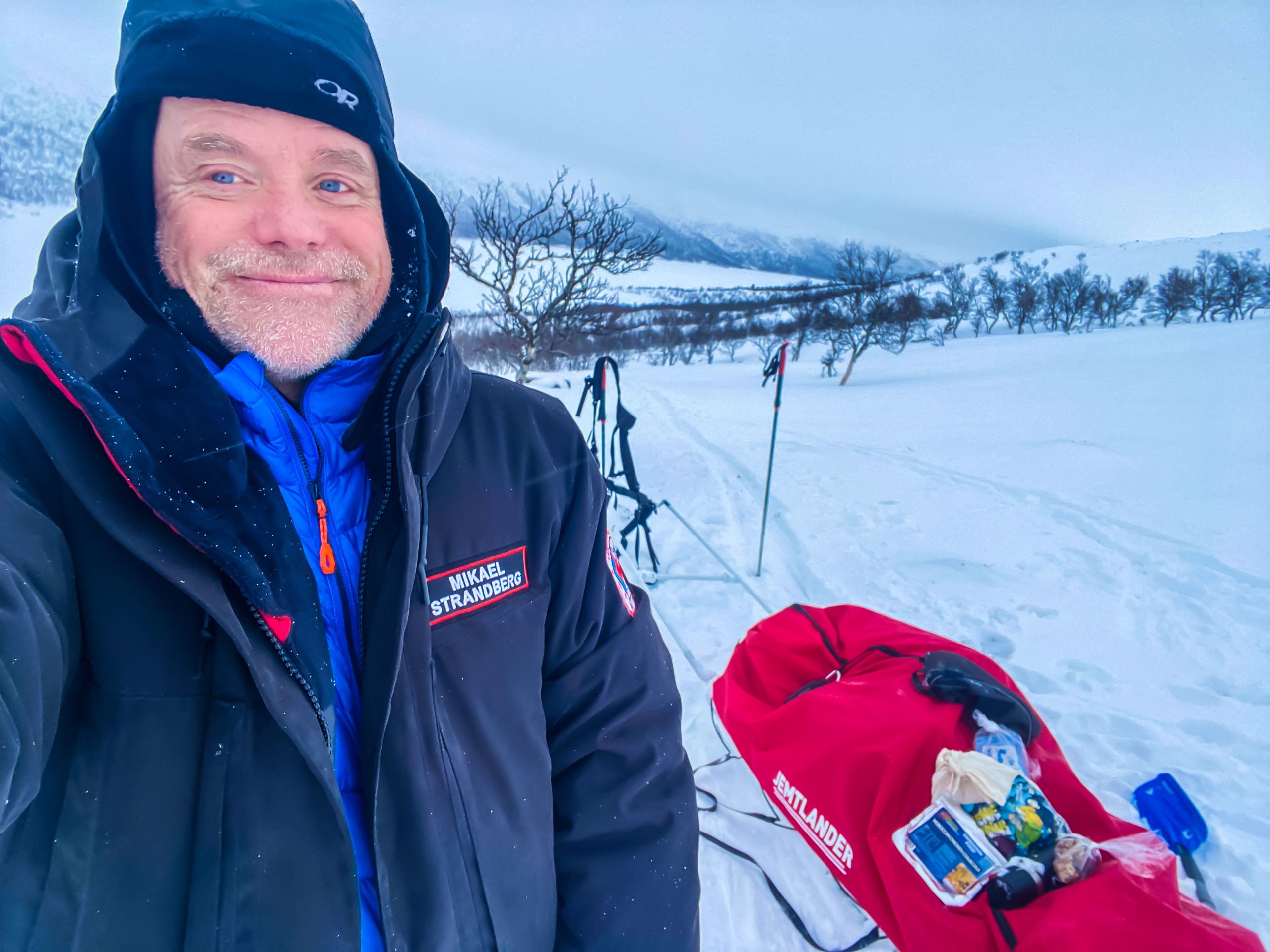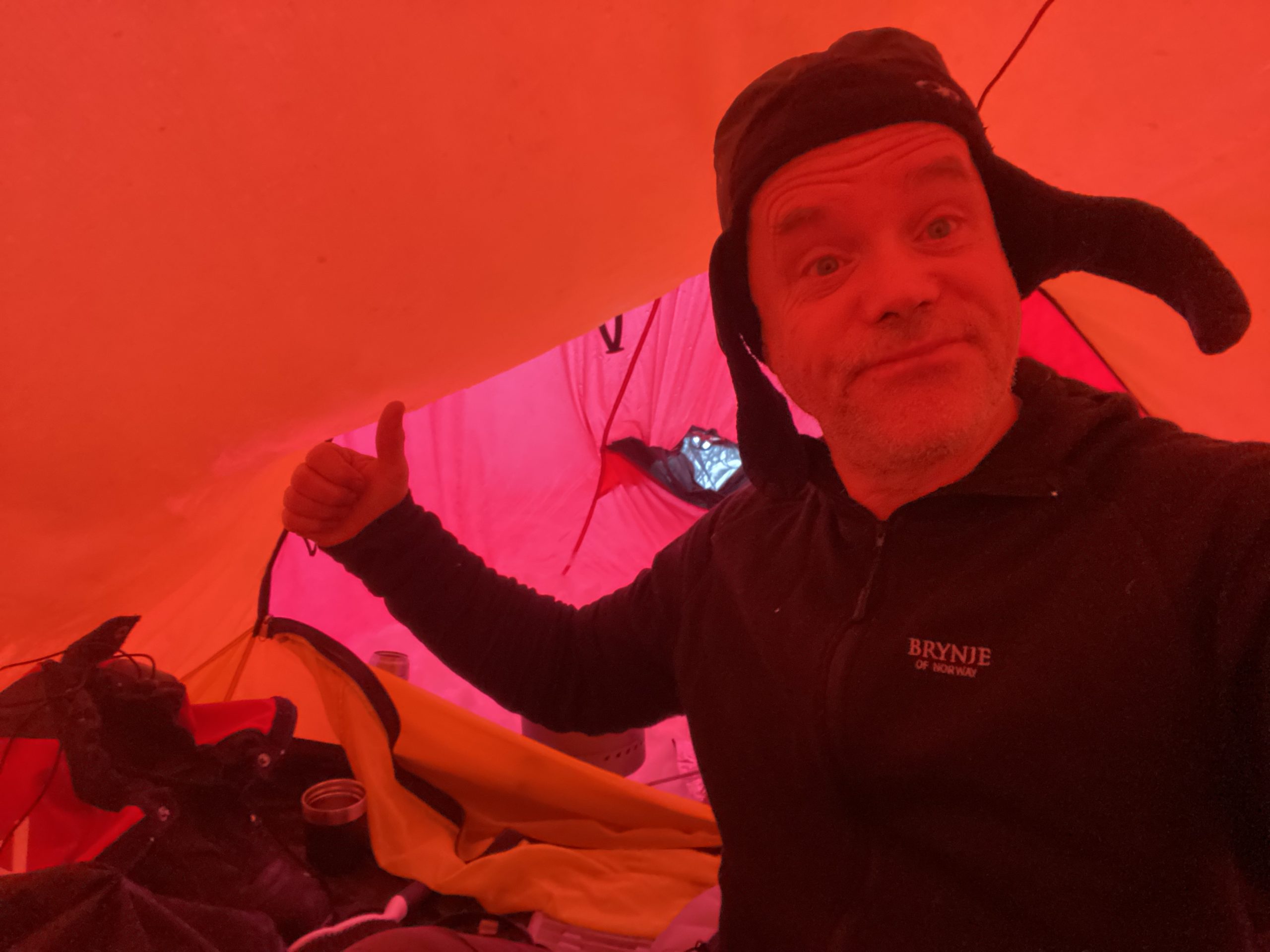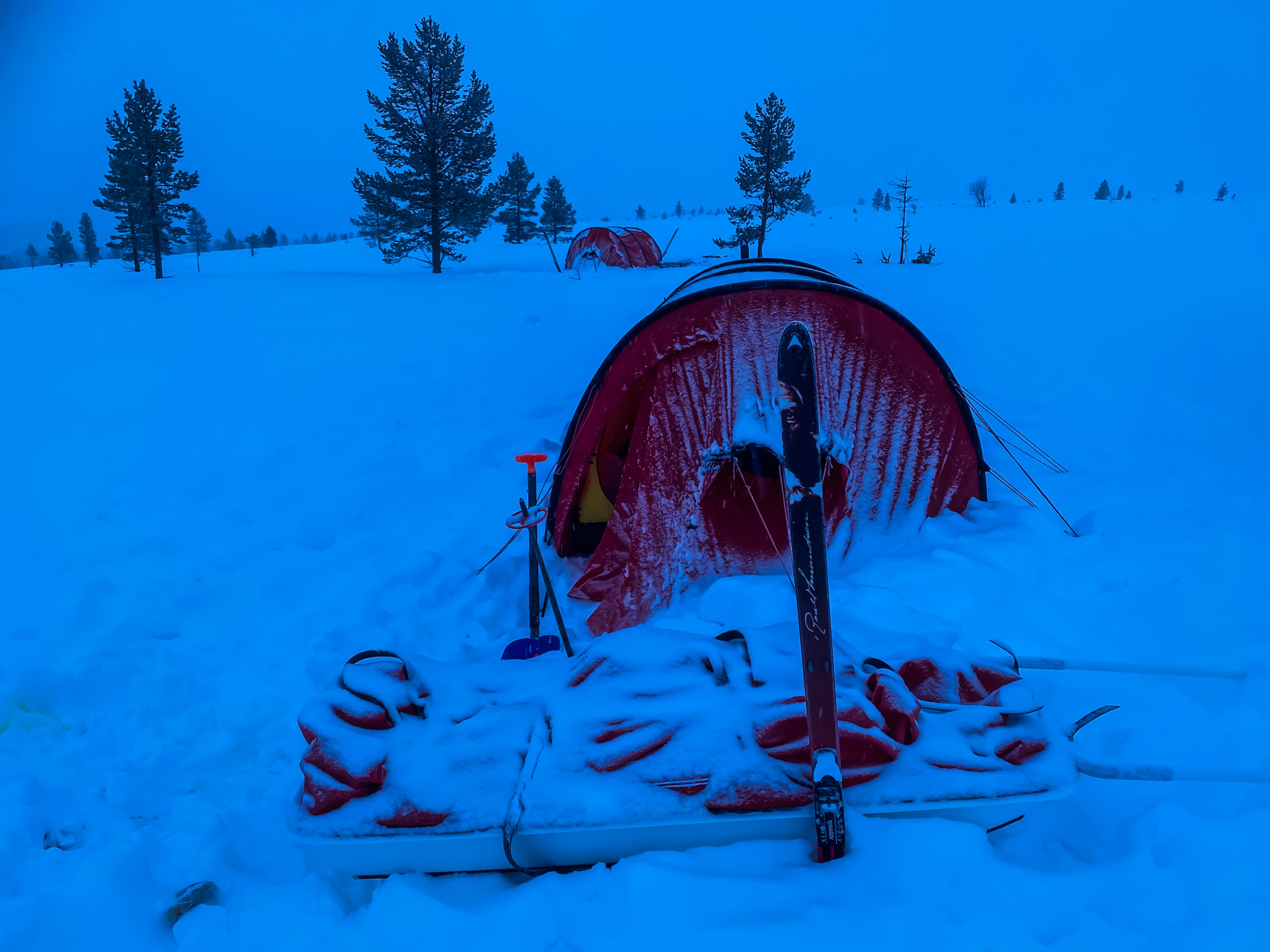 1½ hour later James screamed his classic line, sweated profusely and we put up our first camp. Great view over Lake Grövelsjön. It was snowing. -10 degrees C. Three tents. This was the second outingwith the Greenland team. Well, Peter and Mikael missing. Brexit is not making it easier for the Brits.