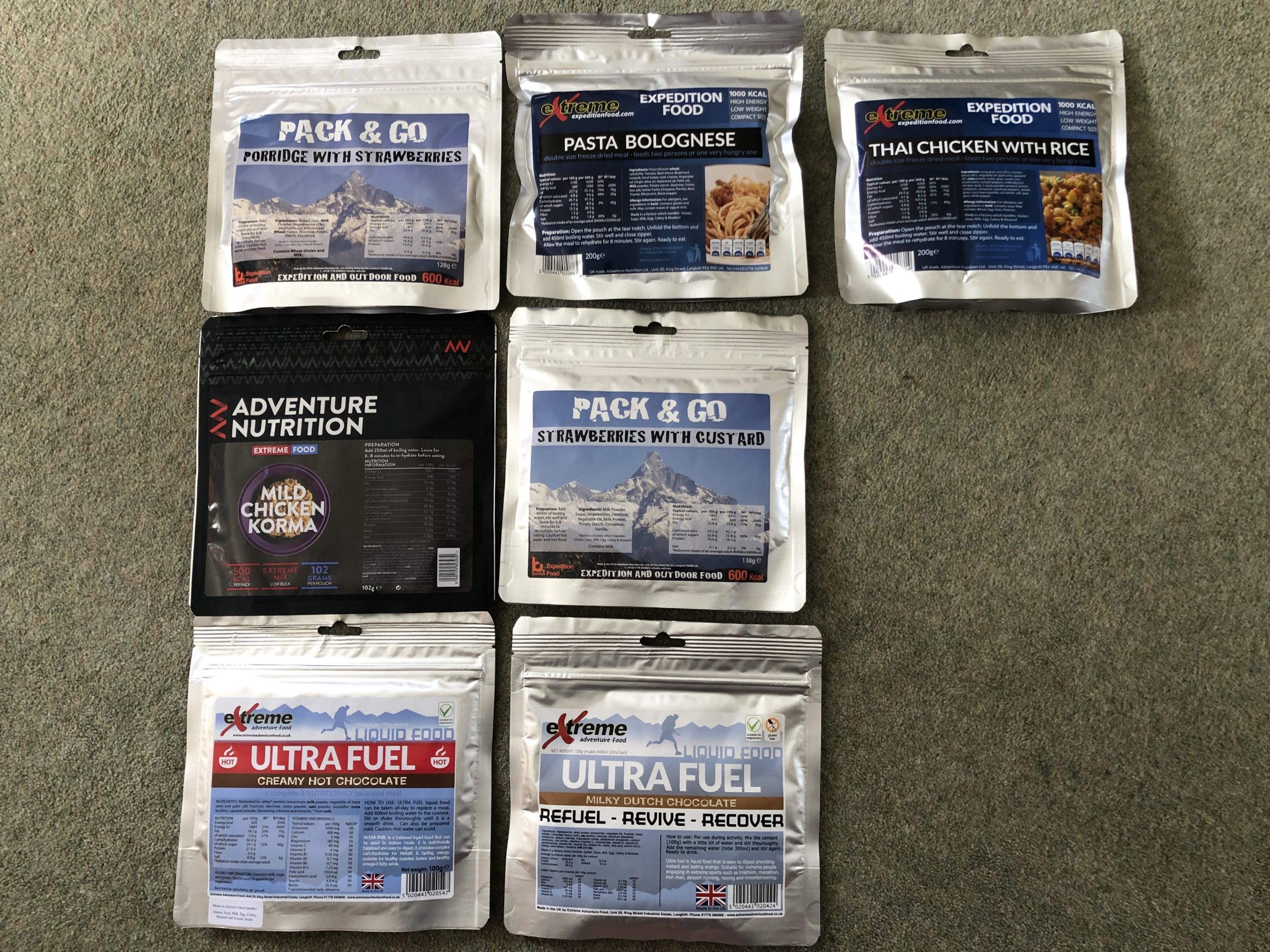 I completed my diet testing considering a Keto diet based on burning fat but opting for a more traditional protein, ‘good fat’ plus carbs-based diet getting most of the carbs from vegetables and fruits. Blood tests showed me, my doctor and dietitian that this was the best way forward for my body. To this I add a sports level multivitamin, omega 3, creatine and a hit of magnesium to supress cramps caused by repetitive exercise movements to which I know I am susceptible. I was pleased with the conclusions and remain so with the results. Then together with James and supported by Adventure Nutrition we agreed the essential elements of our food strategy based on their freeze-dried hydrated packs. To this we added high kcal/g snacks and supplements. From this we computed food orders, weights, and water requirements. All the while I continued to monitor my diet using the Cronometer app with my training partner, Siobhan (also a medical doctor).