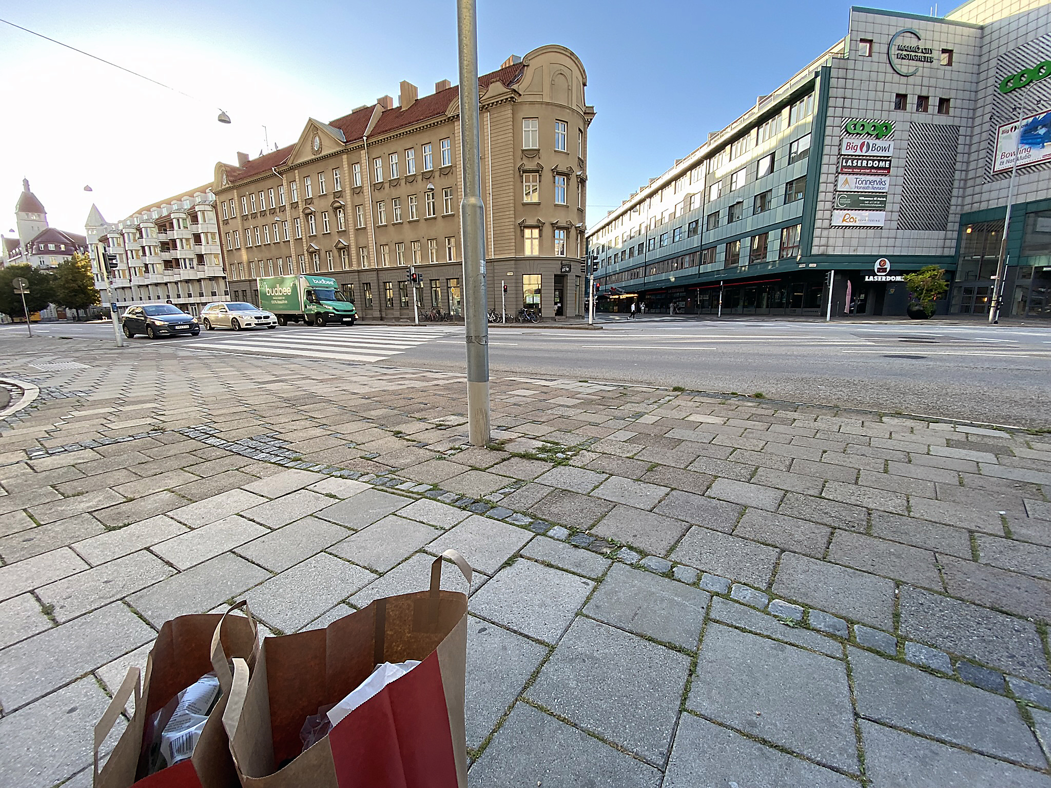 När jag lämnat den påkörda damen, gick jag tillbaka och satte mig i hörnet där. Och tittade på folk. Och vilade med mina matkassar. Tyvärr har jag fick tillbaka hjärnskaknings symptomen. Huvudvärk, illamående och framförallt yrsel. Ingen aning varför. Jag har inte slagit i skallen, men efter Turkiet har det blivit lite frisk luft och mycket dator. Det är som det är. Det händer alltid något när jag sitter här ensam. Aldrig när jag har sällskap. Förra hösten såg jag ett gäng poliser kasta sig över en yngling. Handbojor på. Den brottsmisstänkta på marken. Drama. Jag gjorde samma sak då som nu, reste mig upp och gick hem med matkassarna.