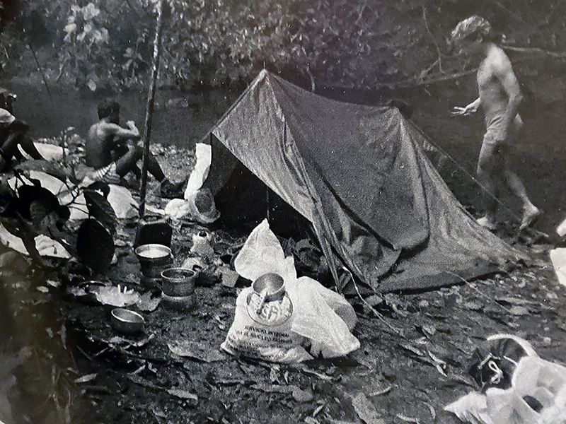 Halfway through jaundice broke out. I peed orange and pooped white like a hyena. I got bitten on my right leg by a conga ant (see trip in canoe) and the swelling was considerable. We all thought it was a poisonus snake at first but couldn´t find the fang marks. I lost 18 kgs. Ed almost the same.