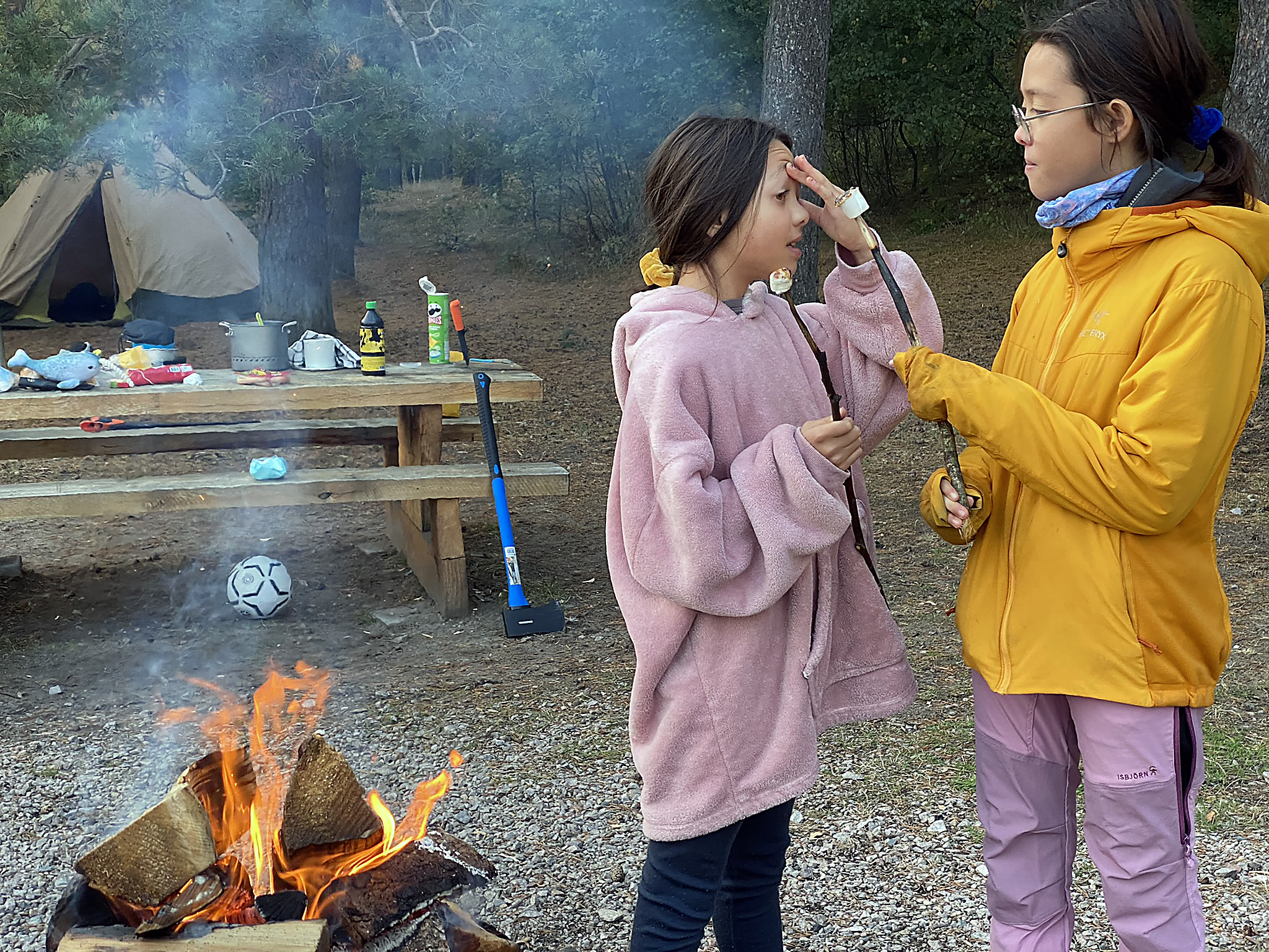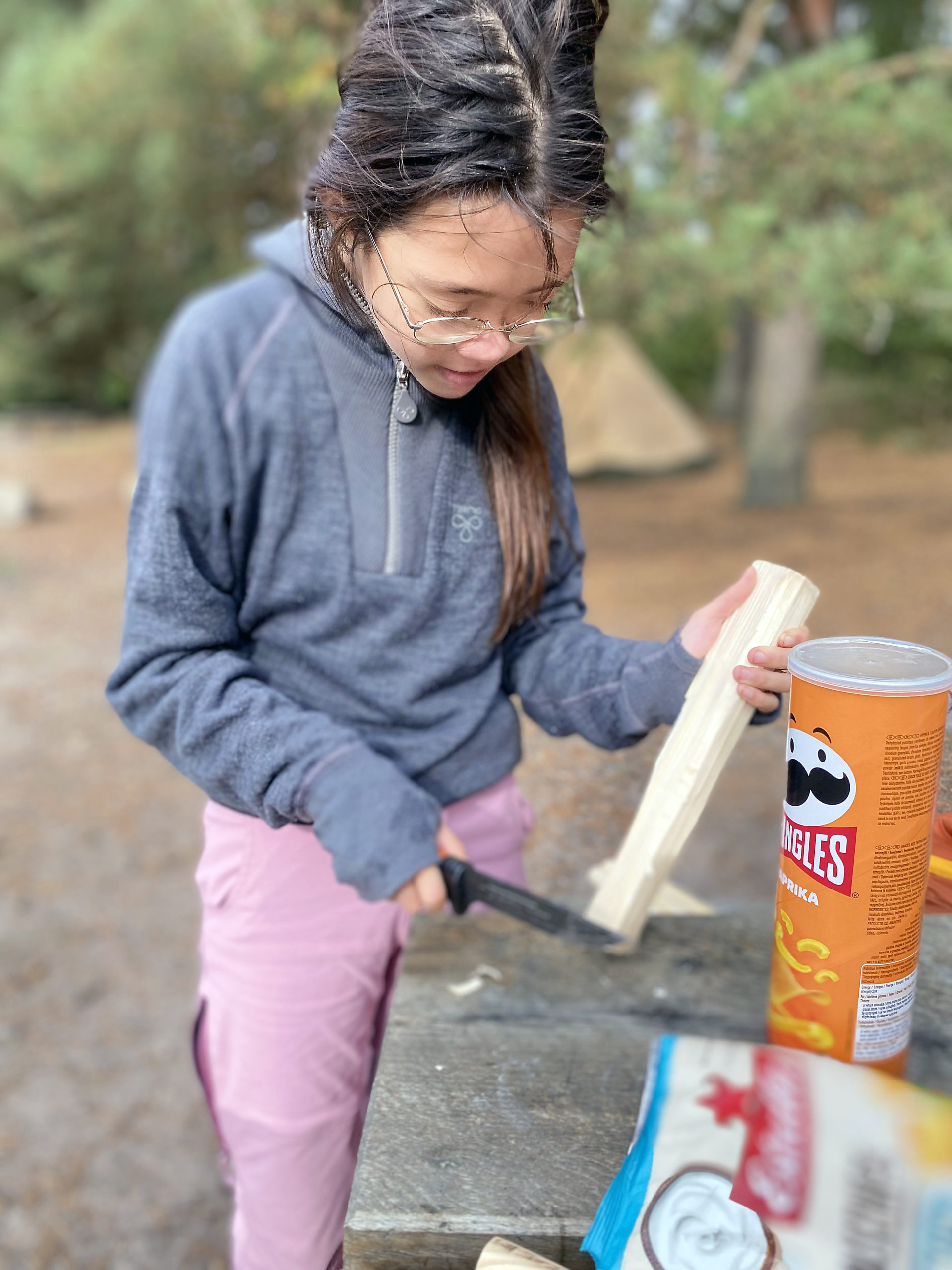 As quick as we stopped the car, got out….silence. And the fresh air. It was raining. We immediately put up the teepee and started a fire. I wanted to teach the girls how to keep a fire alive over 2-3 days by not using too much fire wood. And continue their how-to-use-a-knife-and-axe-and-saw work. We collected firewood together and got the fire started. Raftarp, where we have been going for years, have changed dramatically in many ways since we first got here 10 years ago. It has become….like everything else. Controlled. I understand why, lot´s of not so well behaved people, but it has taken away the sense of freedom. But due to the rain, no people really.