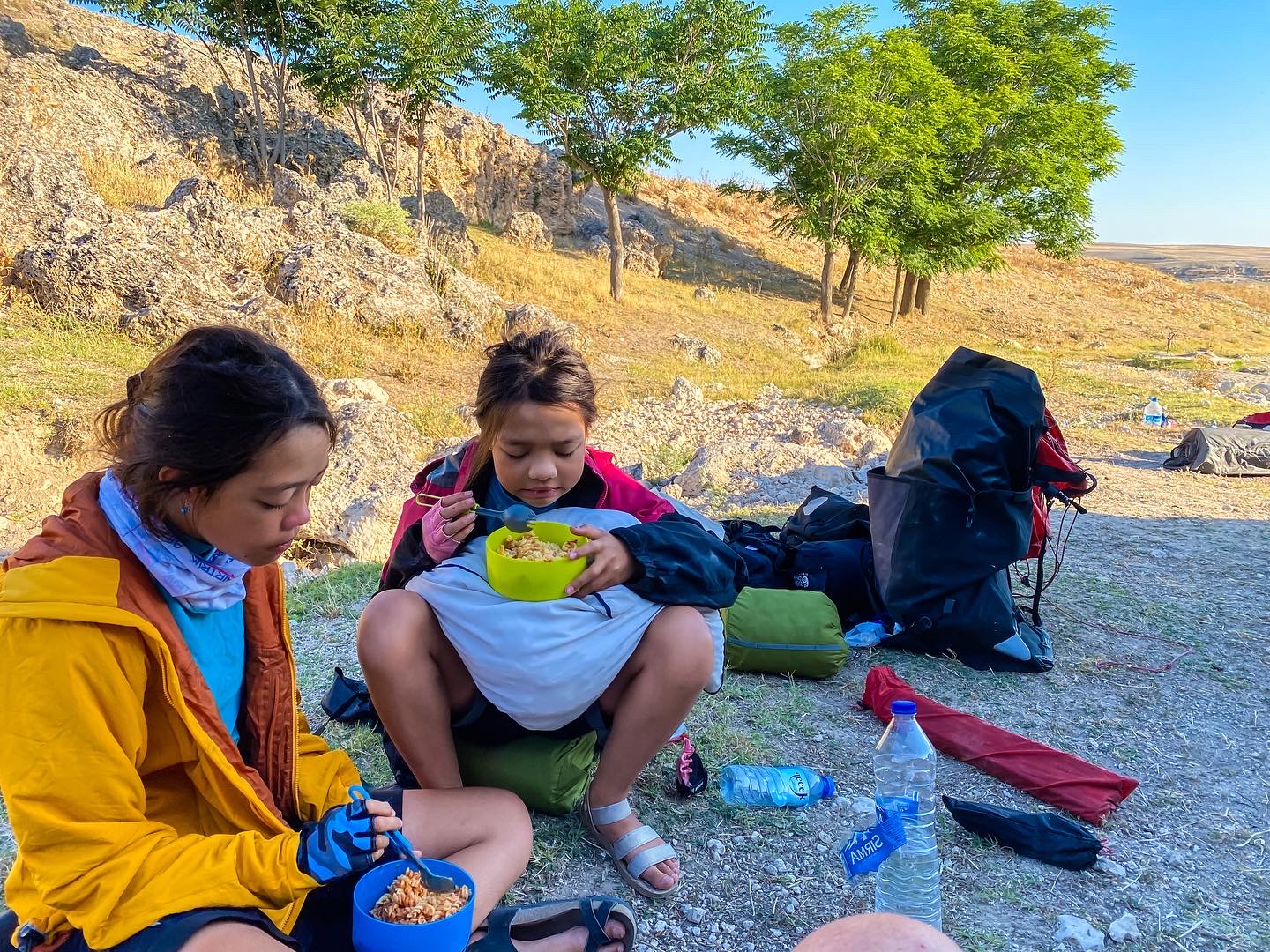 The girls help me with all parts of a journey, putting up camp, fixing punctures, socializing with locals and planning the trip. As a parent, obviously you know more how they in reality feel, so bring lots of food, sweets and charge the Ipads over night for them!