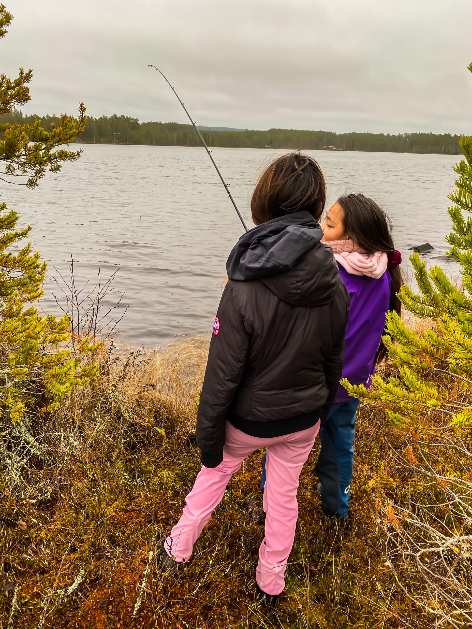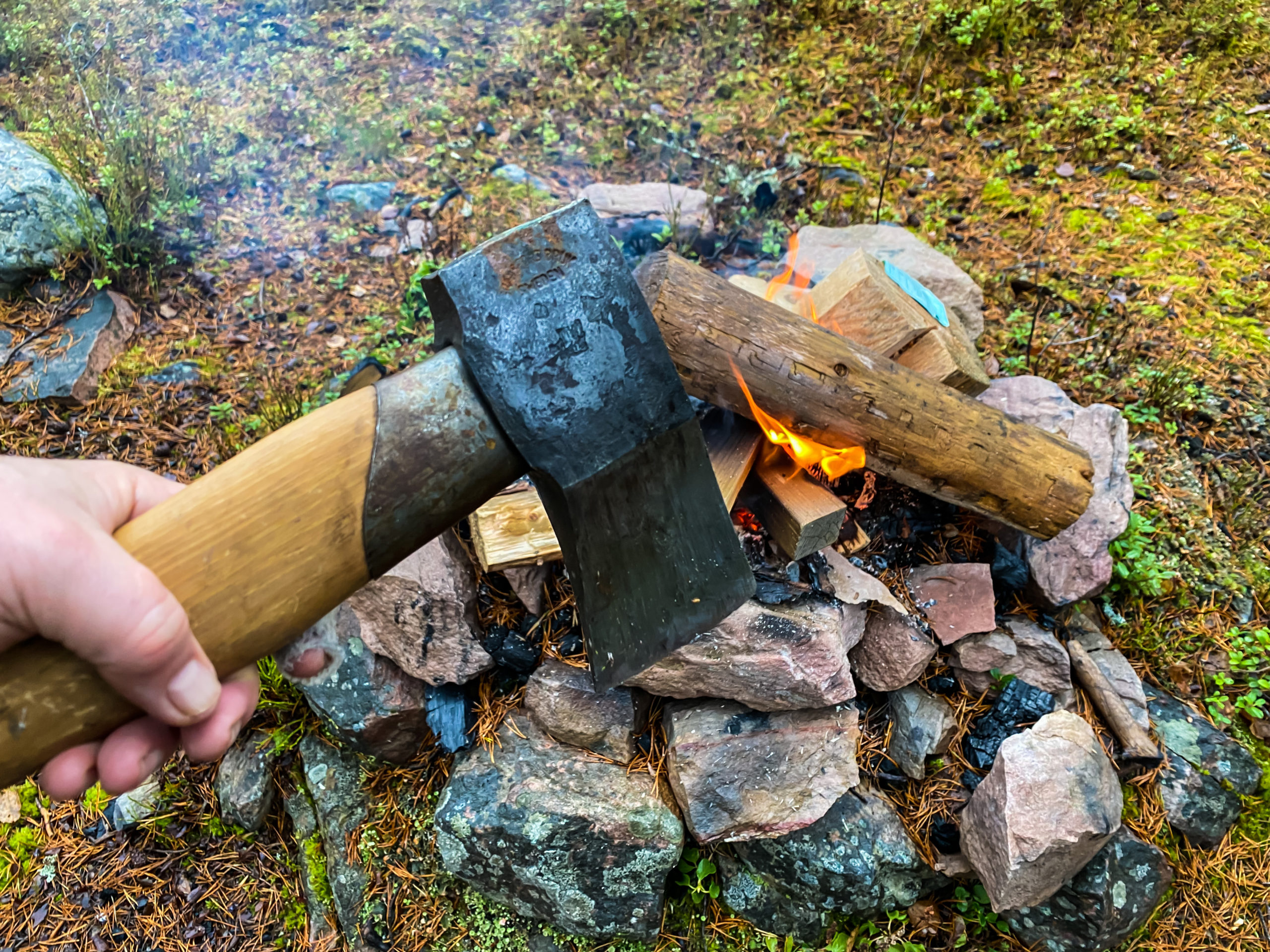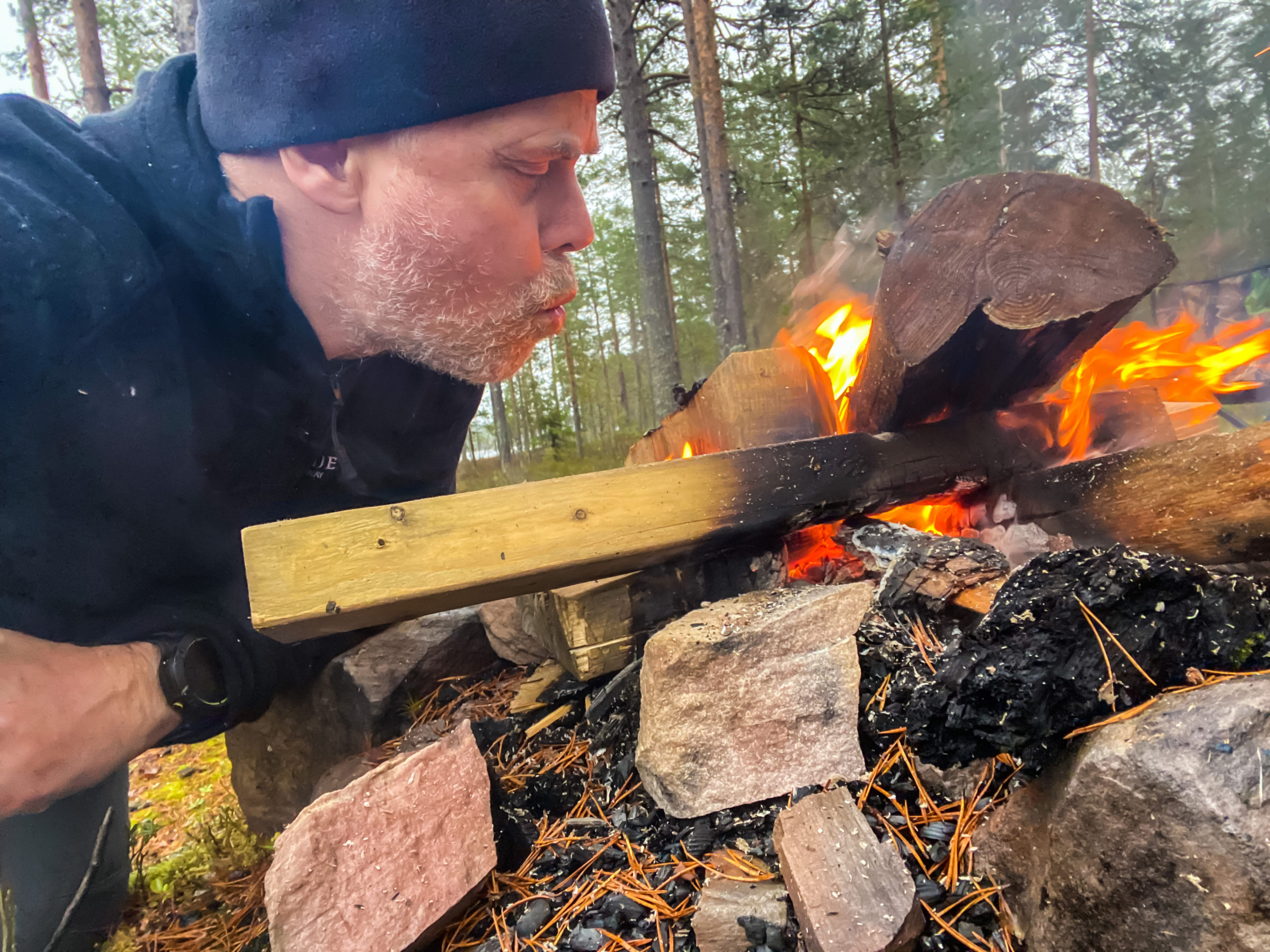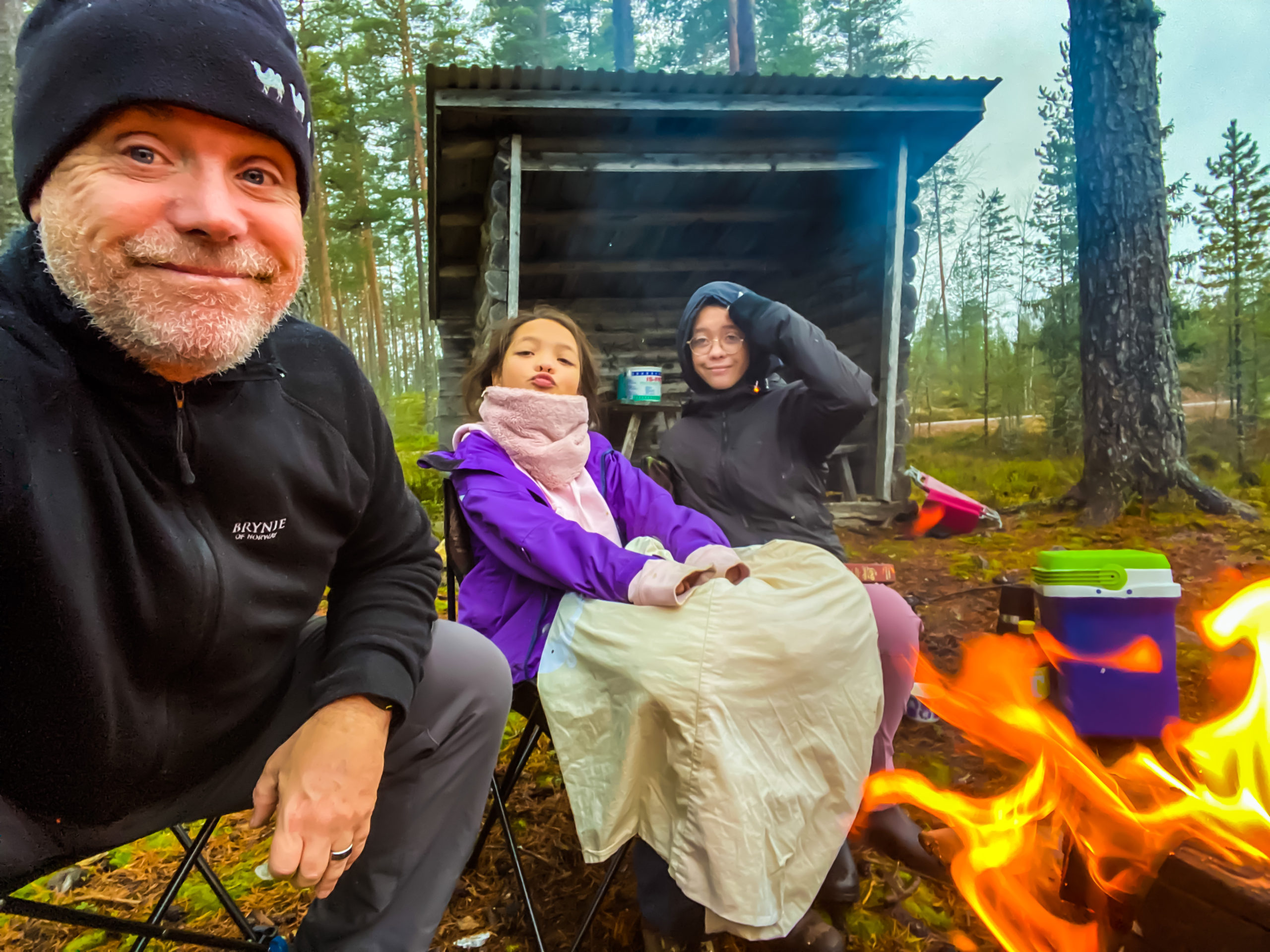 I duggregn sitter vi runt elden tills mörkret faller på. Rösjön är en klassisk norröver sjö med myr, sten, holmar och sällan fisk! Mest sitter vi runt elden och grejar med den. Det blir inte mycket bättre än så. Eva läser, Dana grejer och jag bara njuter av att hålla elden liten men vid liv.