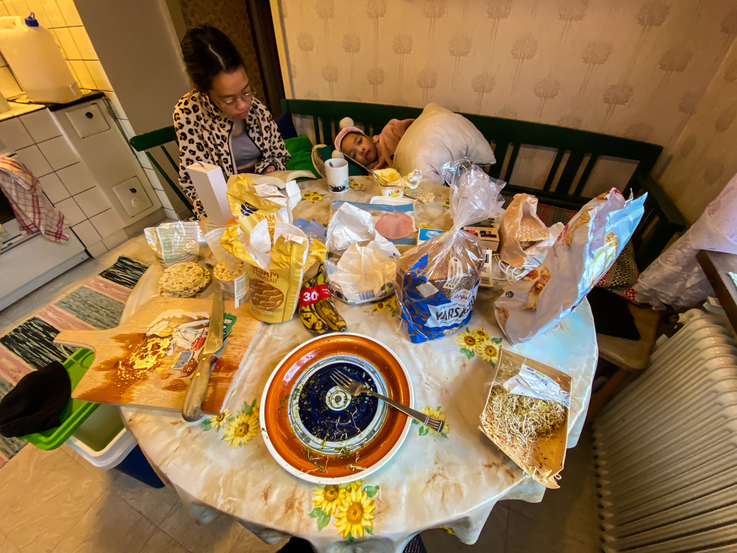 Tjejerna väcker jag klockan elva. Tänk att någon kan sova 13 timmar! Tanken var att vi skulle dra mot Rösjön 12 och prova fiskelyckan. I stället sitter vi och pratar och äter runt köksbordet. Ovärdelig tid. Jag berättar om min snälla men blyga mamma. Tjejerna om eventuella framtida yrken. Eva som förut ville bli lärare, har gett upp detta. Hon tycker nu det verkar vara ett oinspirerande och tråkigt yrke. Men hon vill satsa på skolan. Dana vill fortfarande bli fotbollsproffs. Jag inser hur viktiga det är att komma bort från vardagen. På alla vis. Det är ett privilegium att kunna byta miljö.