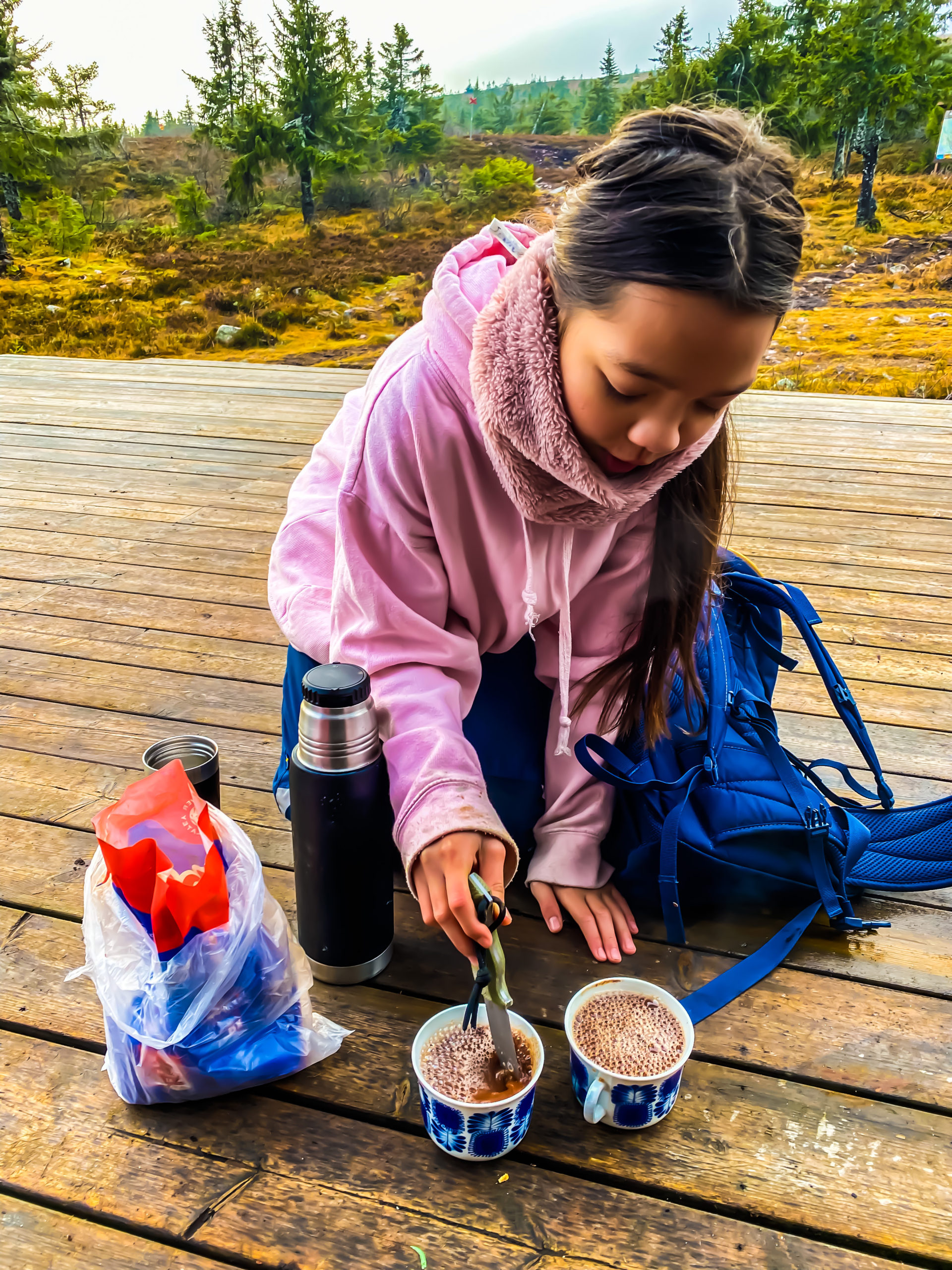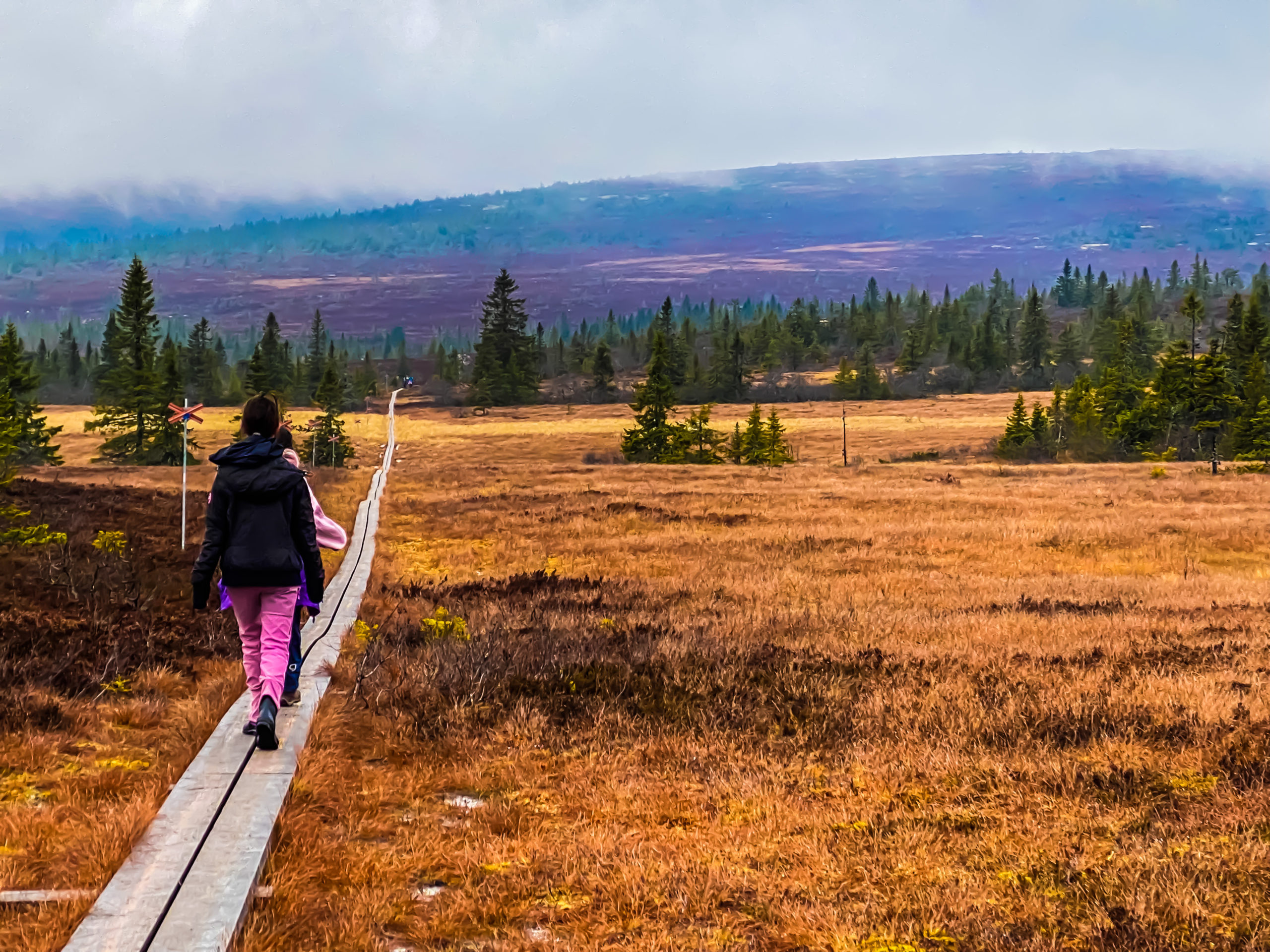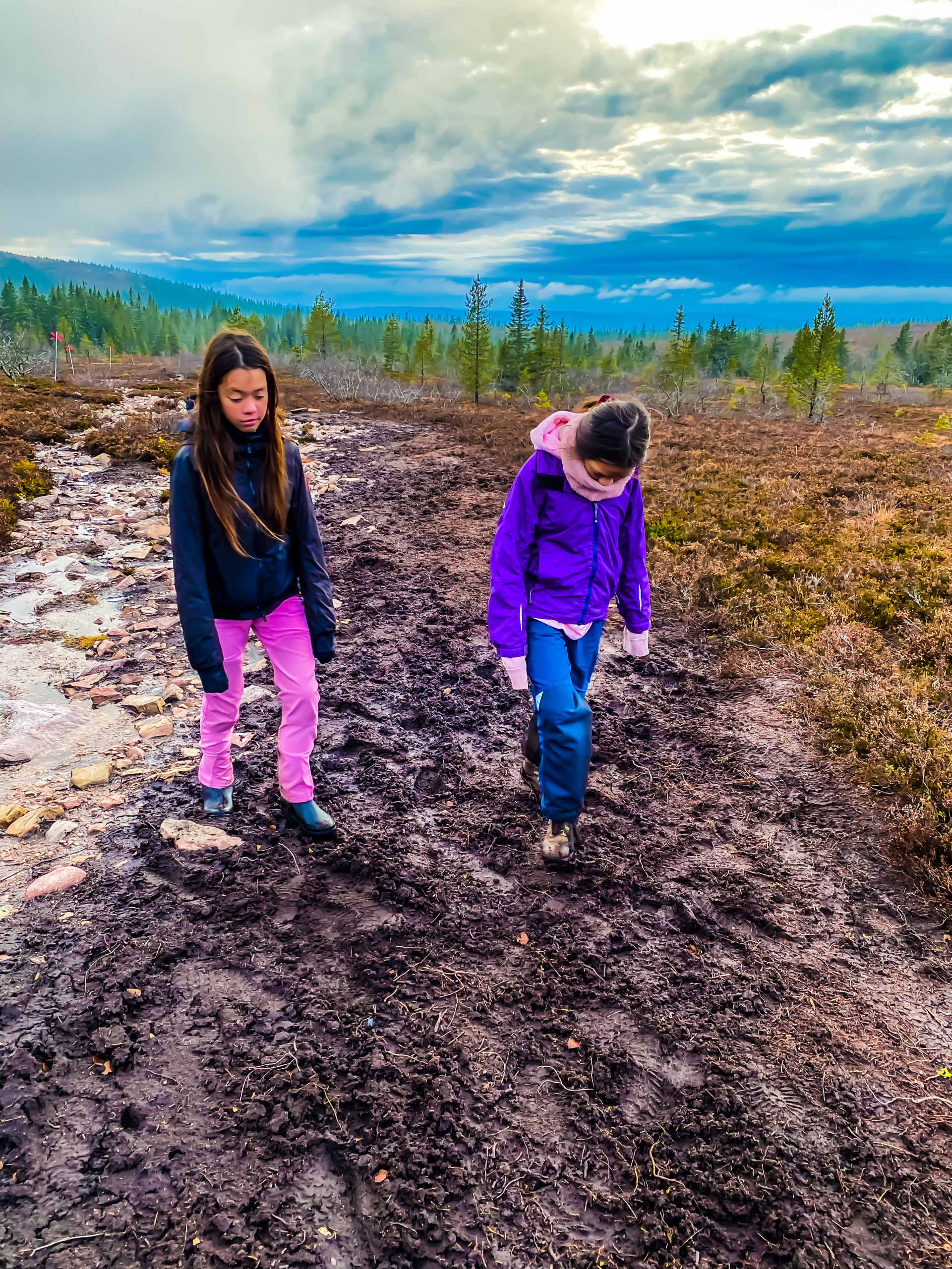 Jobbet är alltid en del av alla våra resor. Igår knallade vi upp på det höstfärgade fjället för bra öppna bilder. Vi knallade drygt 9 km fram och tillbaka med målet Hemfjällstangsstugan. Halvvägs pratade jag med tjejerna med kameran i hand. Jag håller på med nästa dokumentär. Tjejerna spelar huvudrollen.