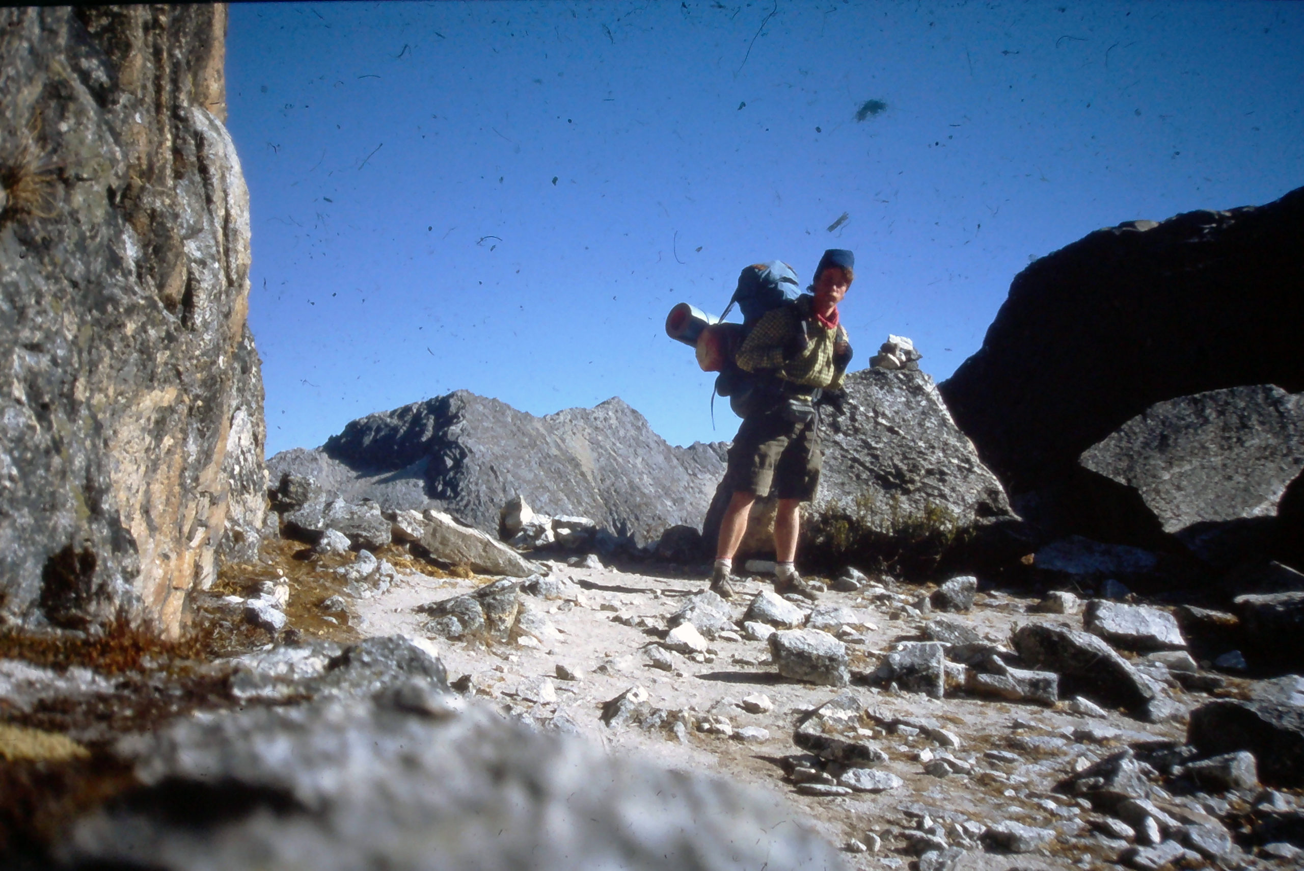 His reasoning came from the fact that I had no proper alpine climbing gear. We stood at the foot of the perfect volcano, Chimborazo, 6262 meters high. A perfect cone. I was dressed in trainers, with two halfs off a crampon on each foot, mums home made sweater, mums home made knitted gloves and knitted hat. I could only afford the hiring of an ice axe, which i had no idea how to use. Temperature at base camp was around -15 degrees C. This was 1986, when things were stil possible to become a classic. Meaning no safety tech of today. Like satellite phones, Garmin GPS:Es or PLB:S.