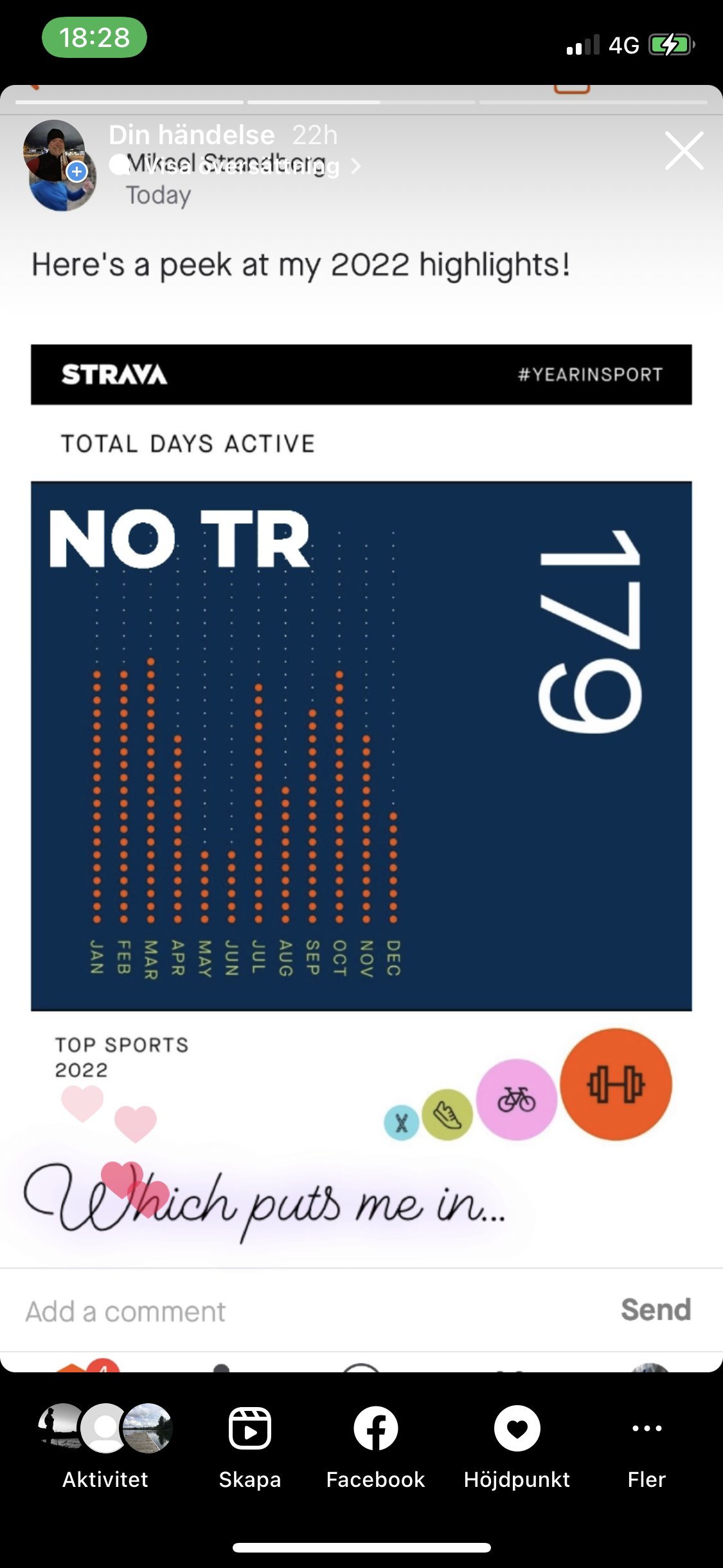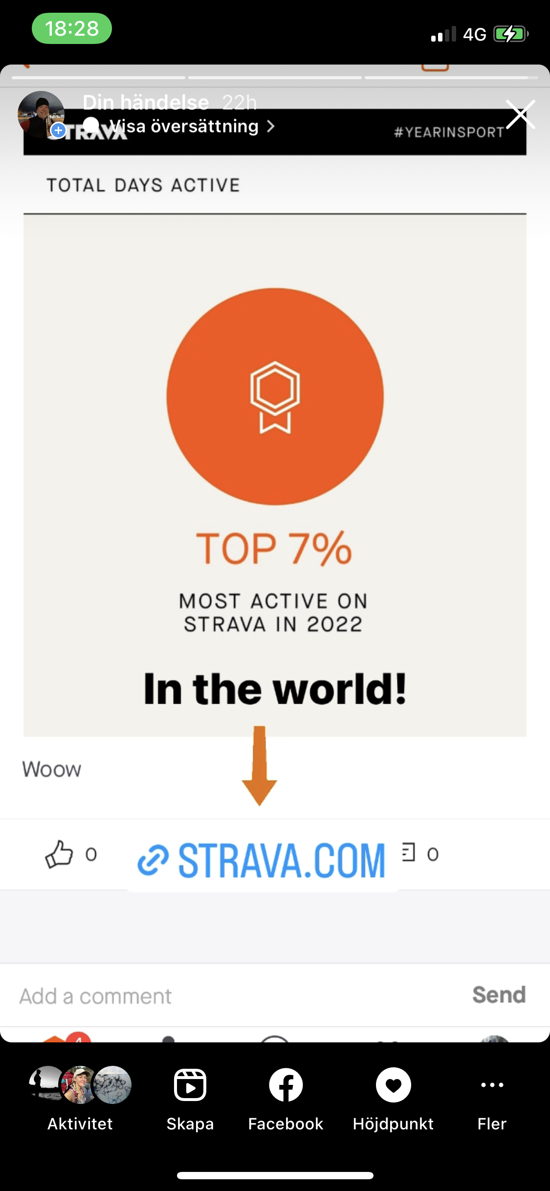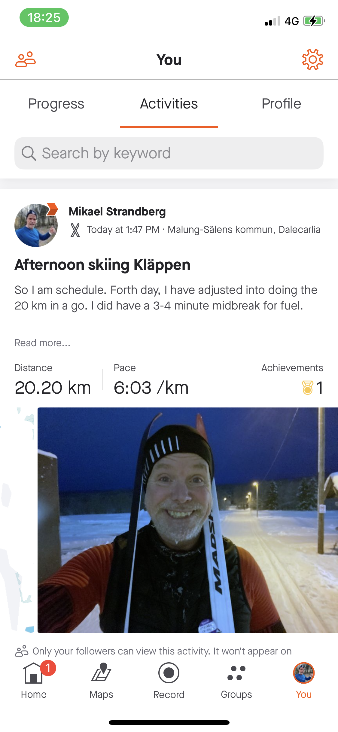 Jag har under några år noterat ned all min träning på Strava, https://www.strava.com/athletes/23404606. Häromdagen fick jag veta att jag förra året hade 179 träningsdagar och tillhörde de bästa 7% med det på jorden. Strava är en träningsapp som de flesta ultralöpare, skidåkare, löpare använder. Helt ok med tanke på att jag under maj och juni knappt röde mig till följd av hjärnskakningen.
