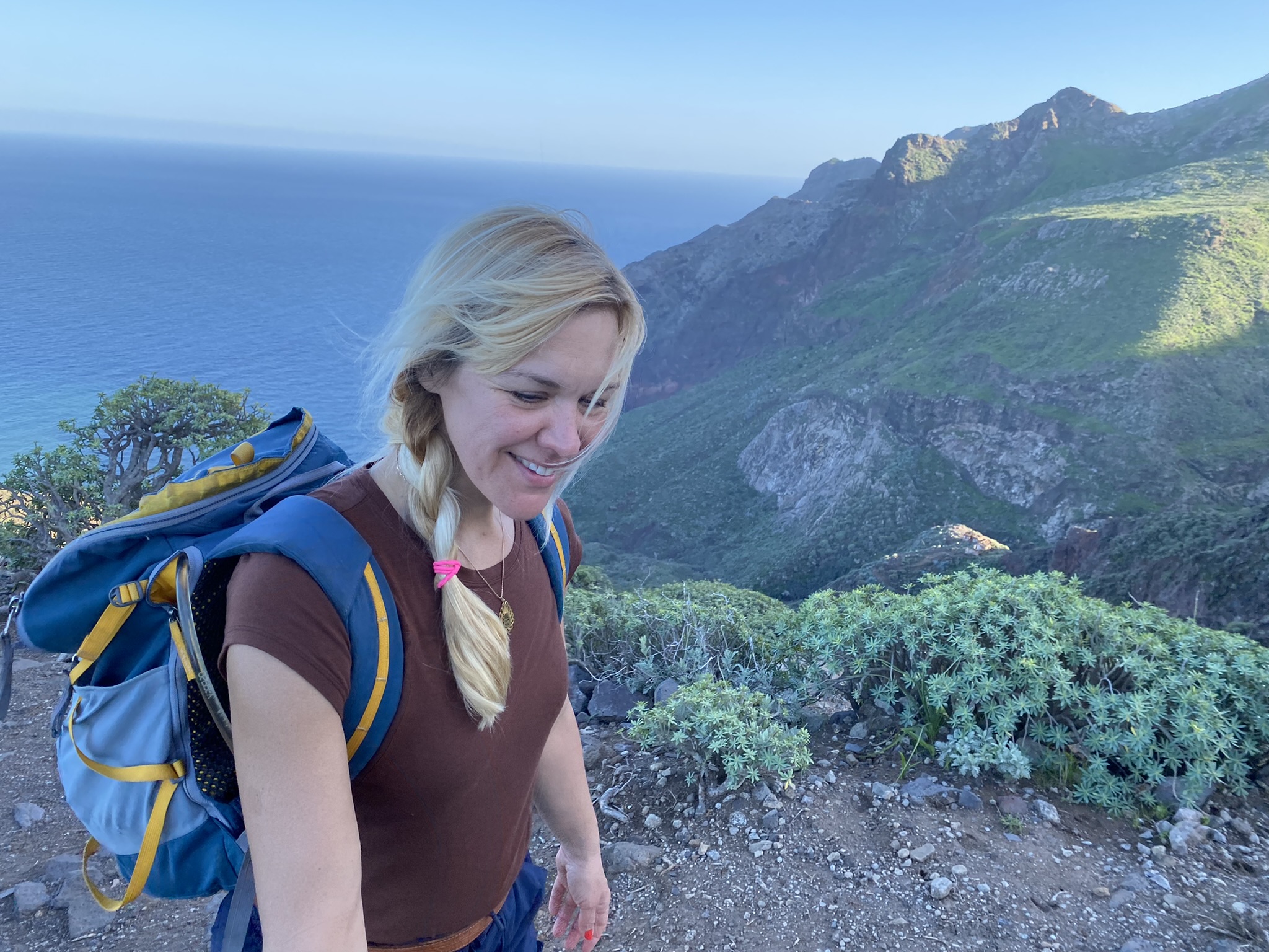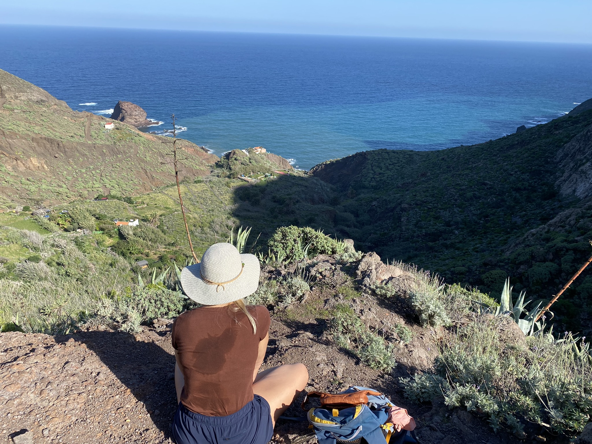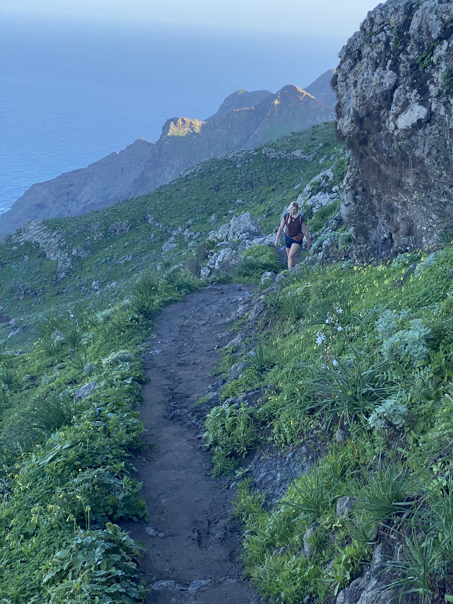 We hiked down through a rocky valley almost all the way to the ocean. And then up again. Hannah is a strong walker so we did it in a couple of hours and a bit more.
