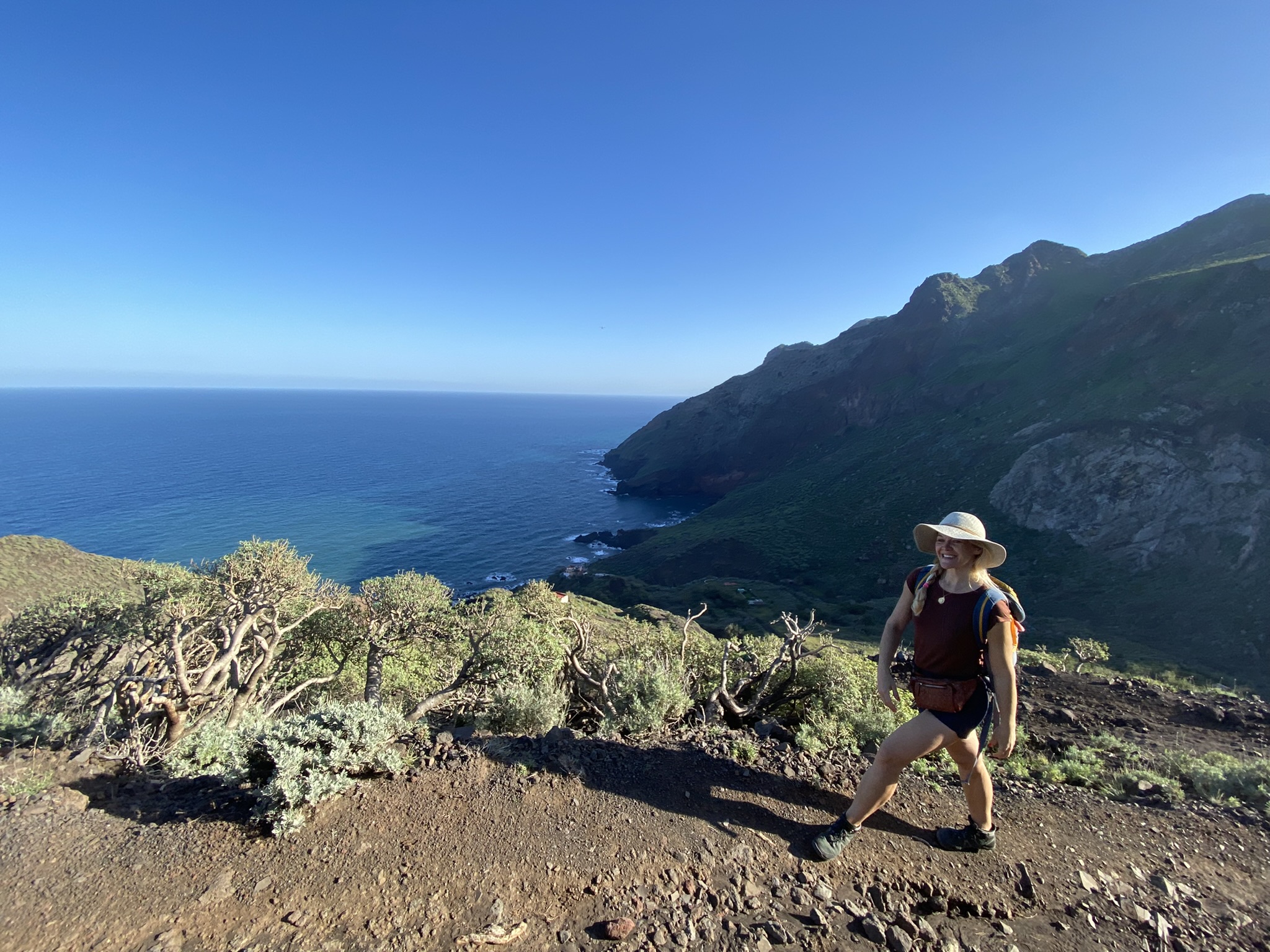 Yesterday we did yet another lovely hike on this spectacular island. A 2 hour drive took us to the Anaga Mountains and the village of Chamorga. The drive up from the busy city of Santa Cruz was spectacular. A real dizzy challenge for checking my status of my concussion! That windy and curvy!