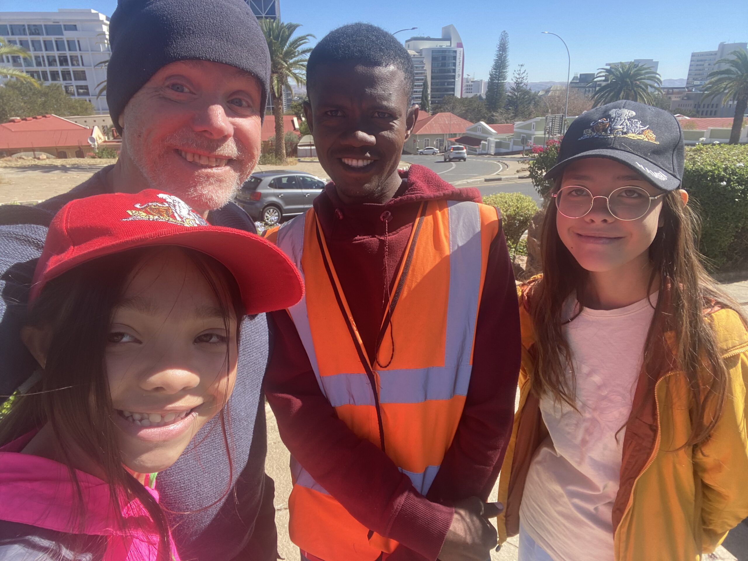 Lots of logistics to get everything together. Otherwise we have been meeting a lot of very nice Namibians sharing their life stories. Dramatic life stories about supporting 12 siblings and wish you could go to school. No money. We met young TikTok Namibians but the girls were a bit shy and thought dad was overdoing it. At times they get tired me talking to everyone. But that is the interesting part in life, dad thinks….