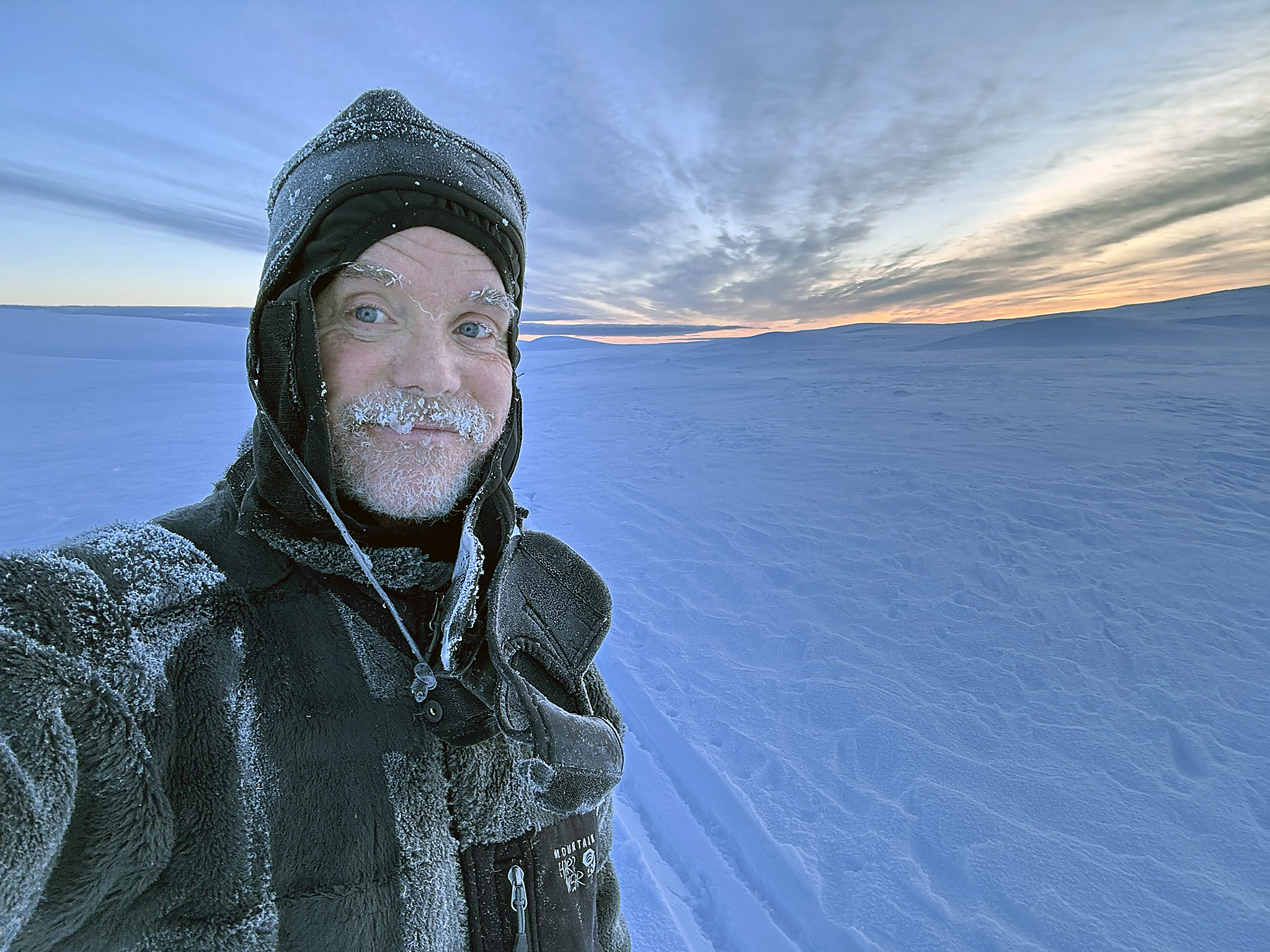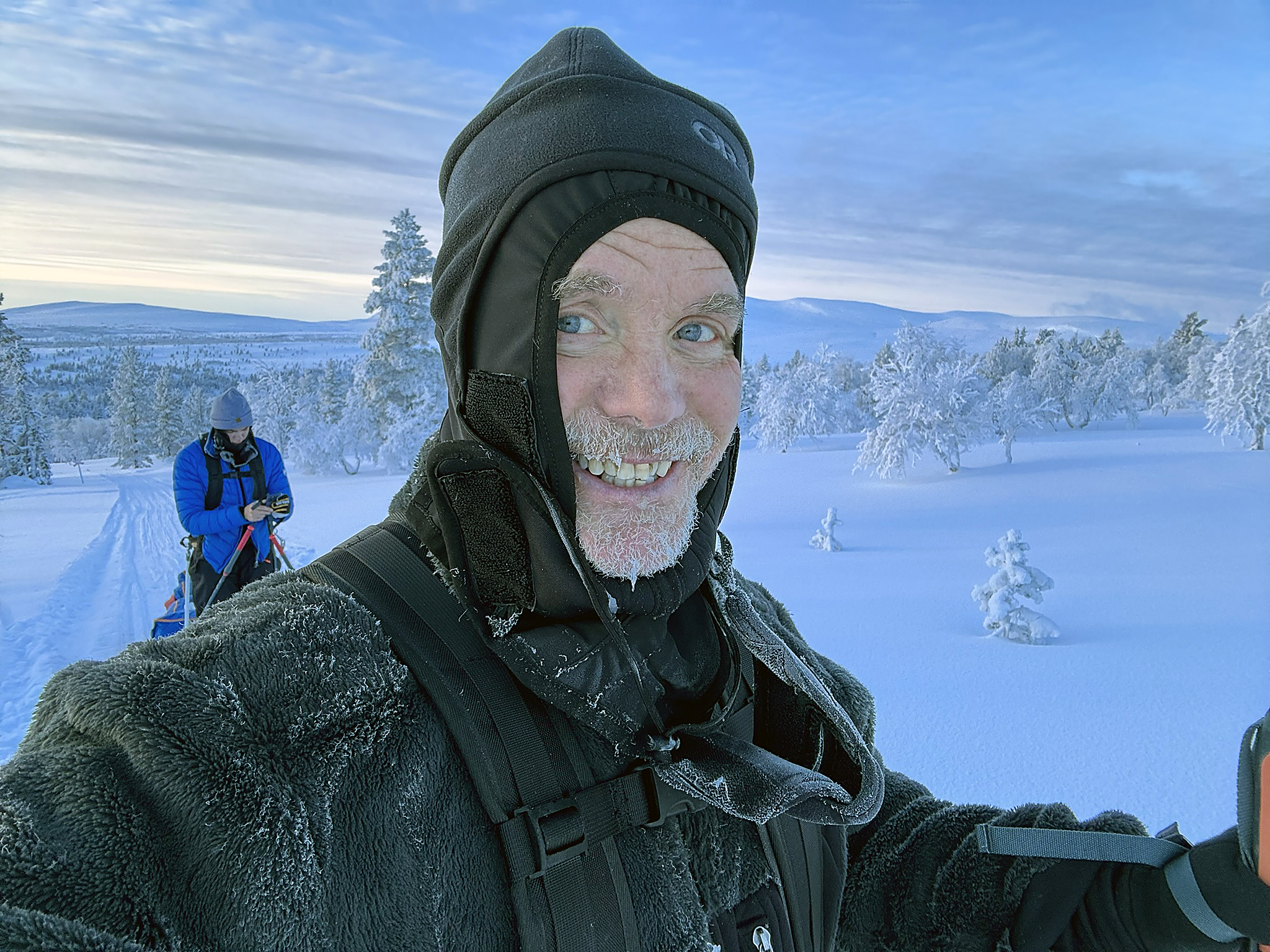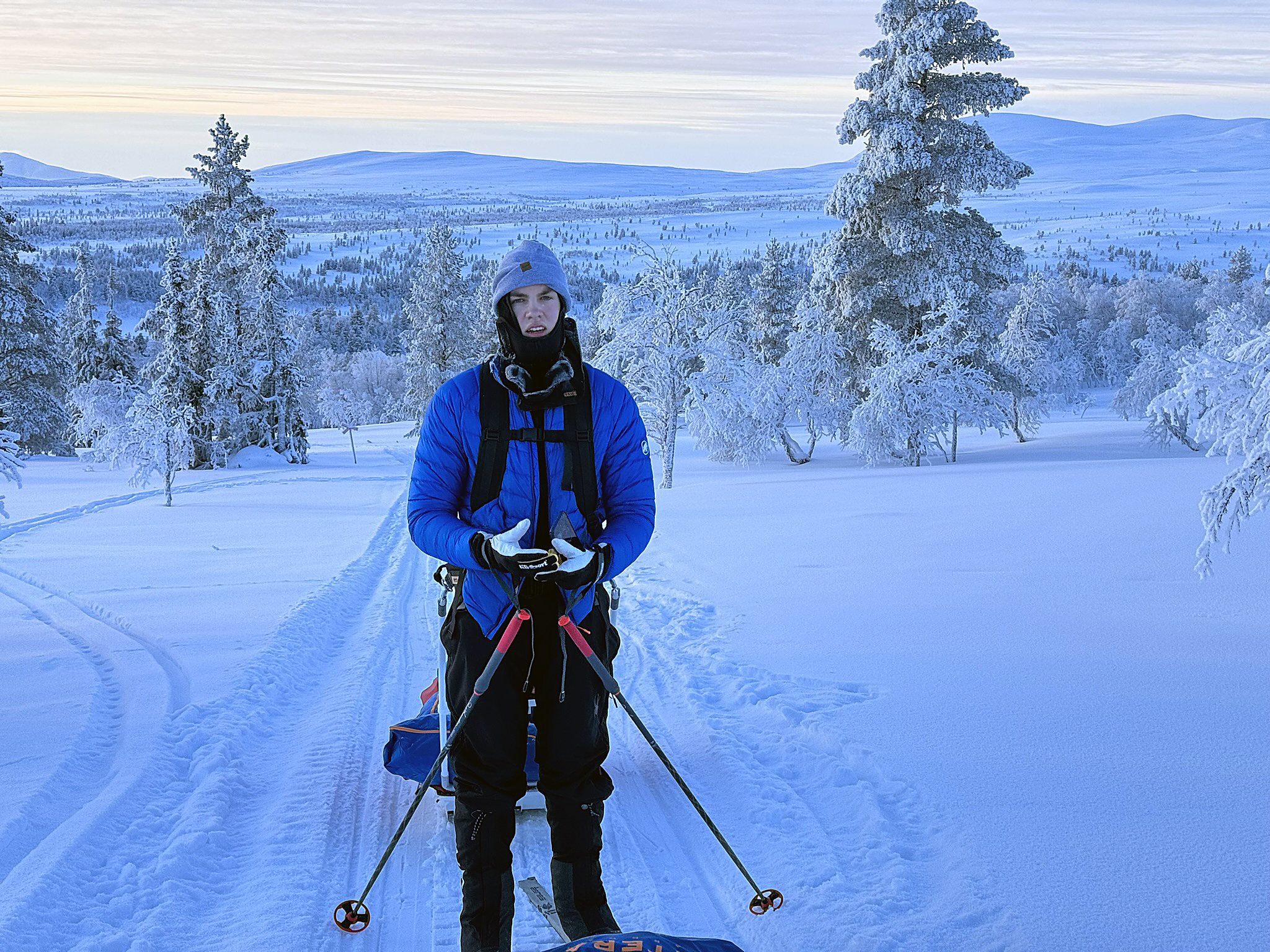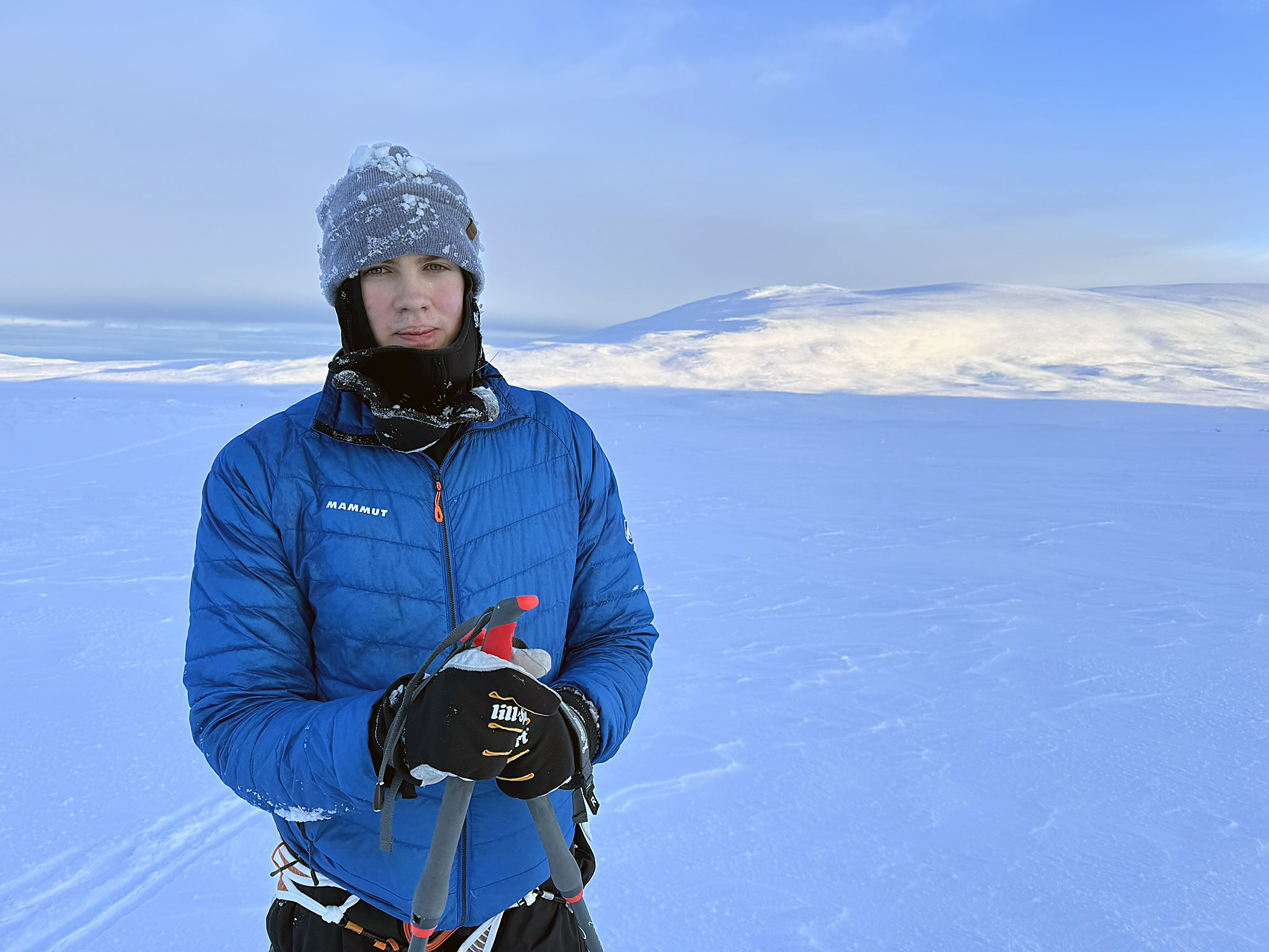 We made camp about a kilometer from the base of Storvätteshågna, which we wanted to climb and test crampons, rope and more the following day. Weather was cold around -28 dergrees C, great visibility, hardly any wind. So perfect Arctic travel weather. We made a simple camp with Max doing the wall to cover the tent, whilst I made everything ready inside. And started cooking. I did the same mistake as in Namibia. I had brought diesel and had no primer for that reason. In Namibia I used liongrass to prime the stove and now in the tent, toilet paper. It worked. max thought that the food from RealMat was so good he could consider eating it at his university.