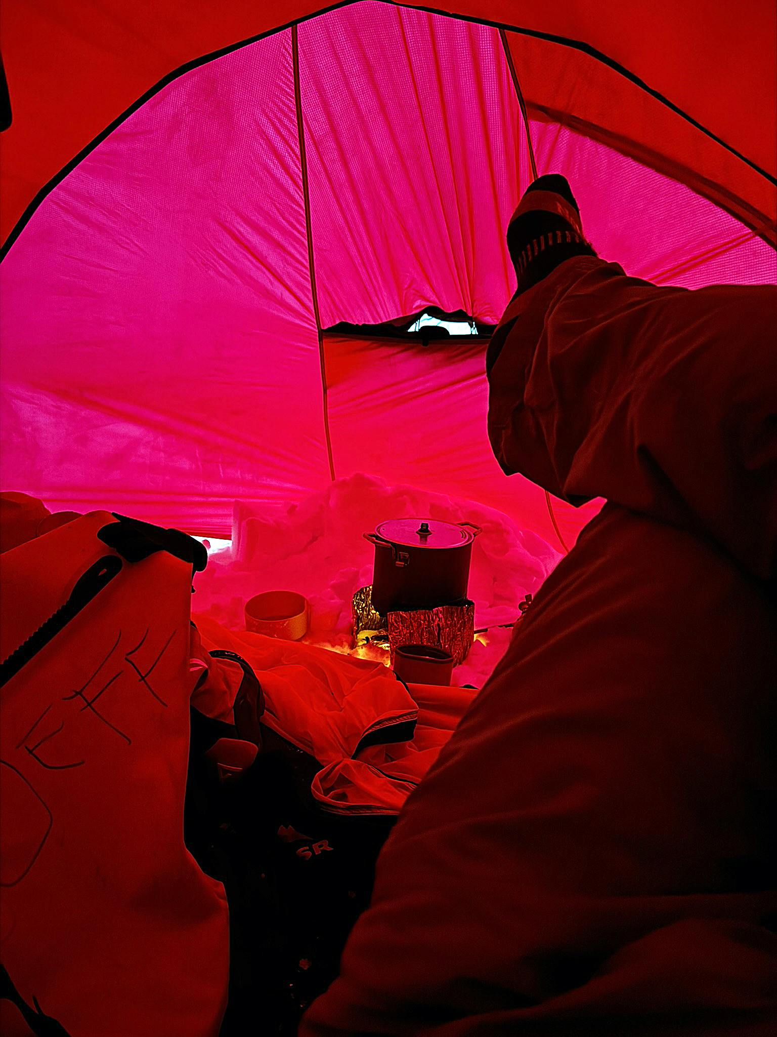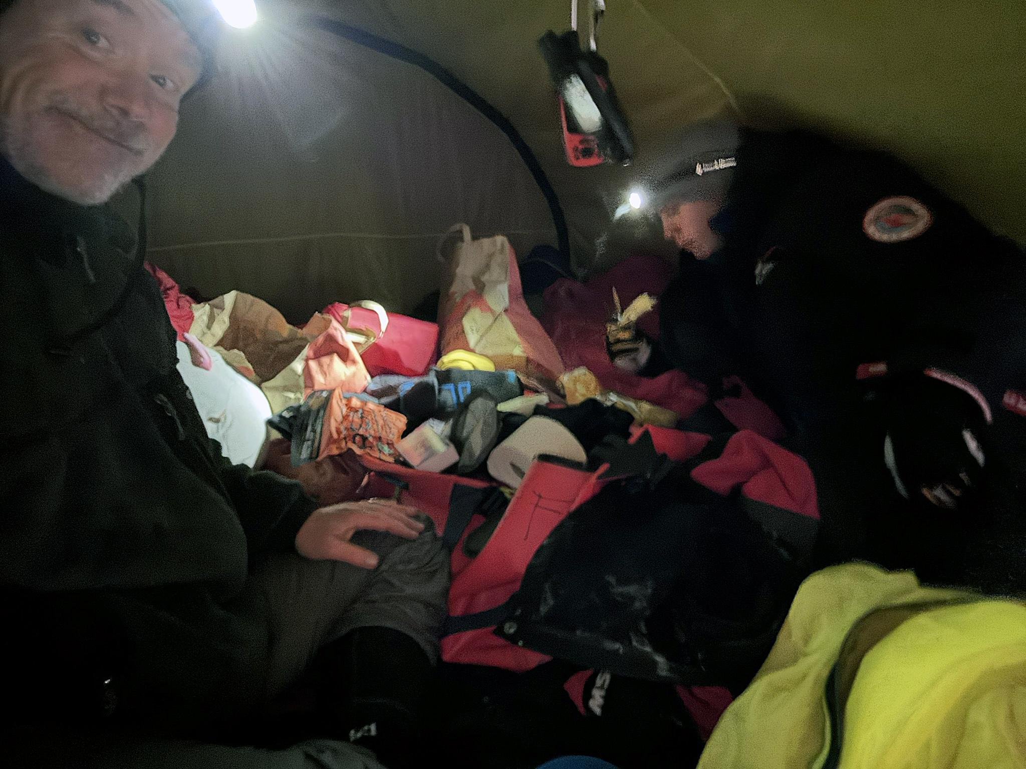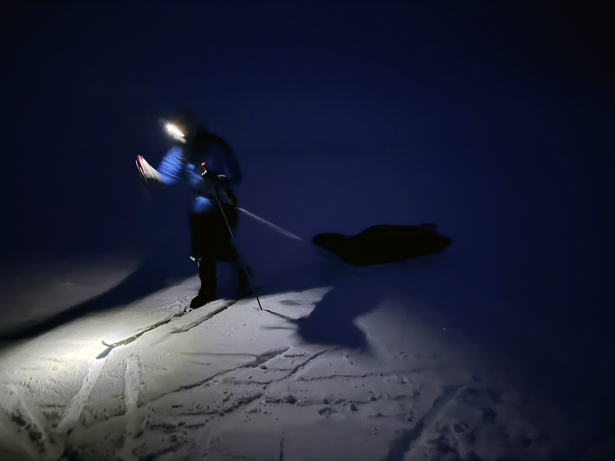 Obviously it was pitched black at 4 p.m. And we knew sunrise was 09.30 am. So yet another quick test for Max in Arctic realities, a long night in the sleeping bag waited. It has to be said, Max was also jetlegged, but fell asleep quickly and got a good nights sleep.