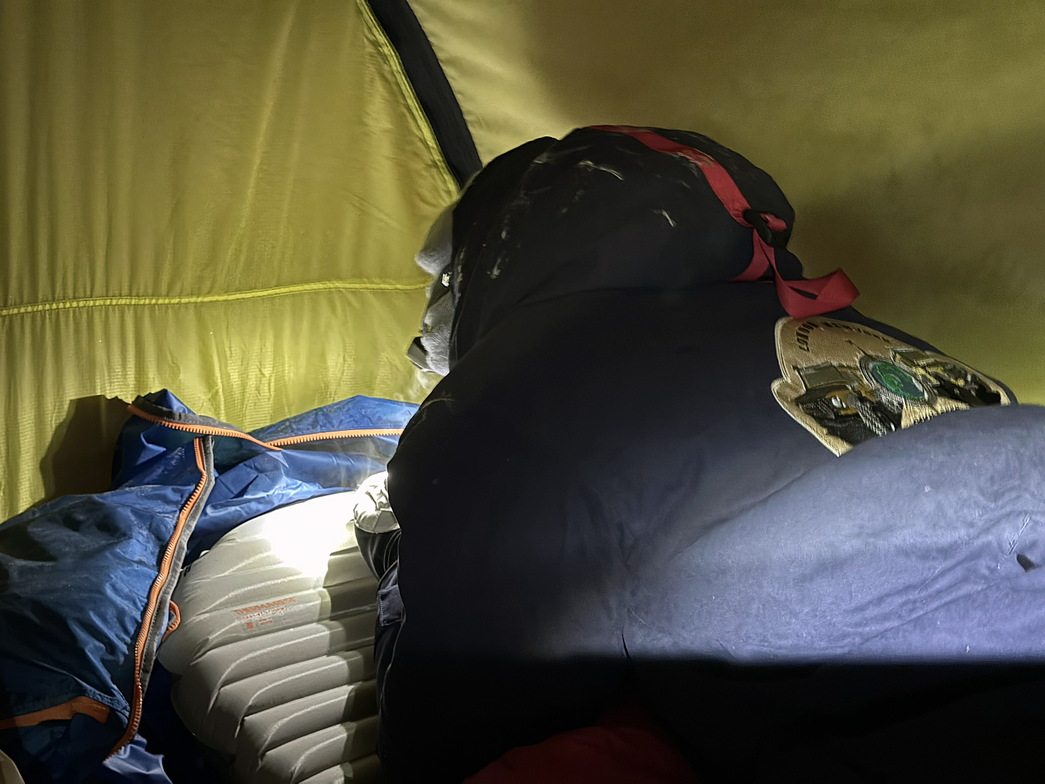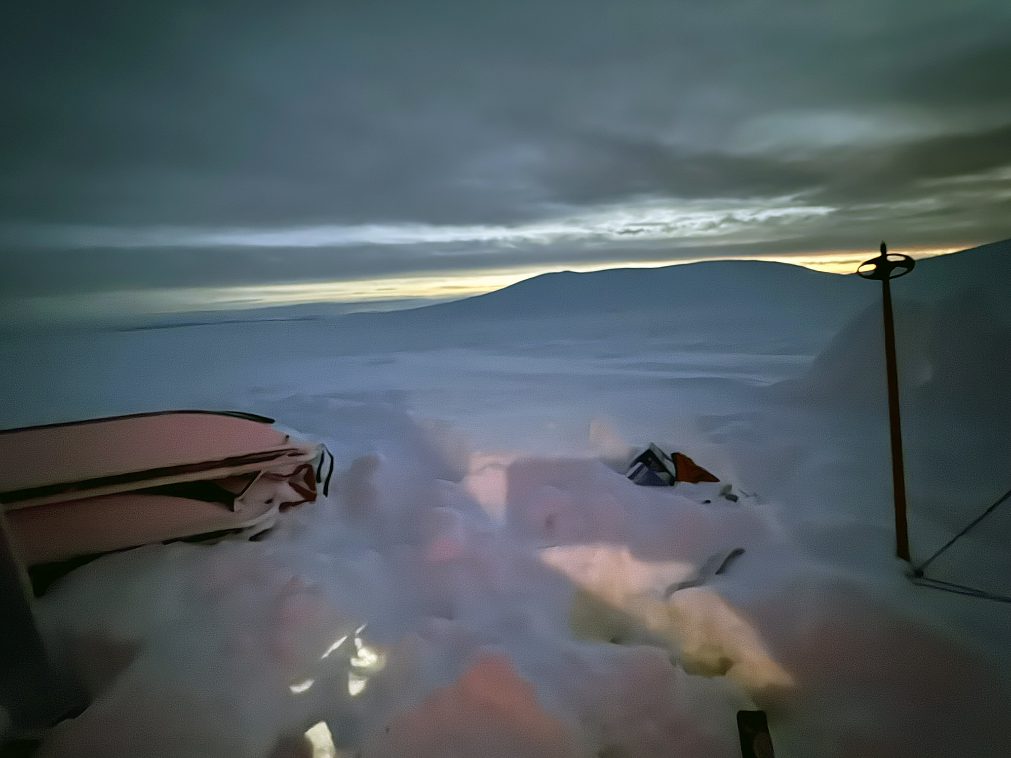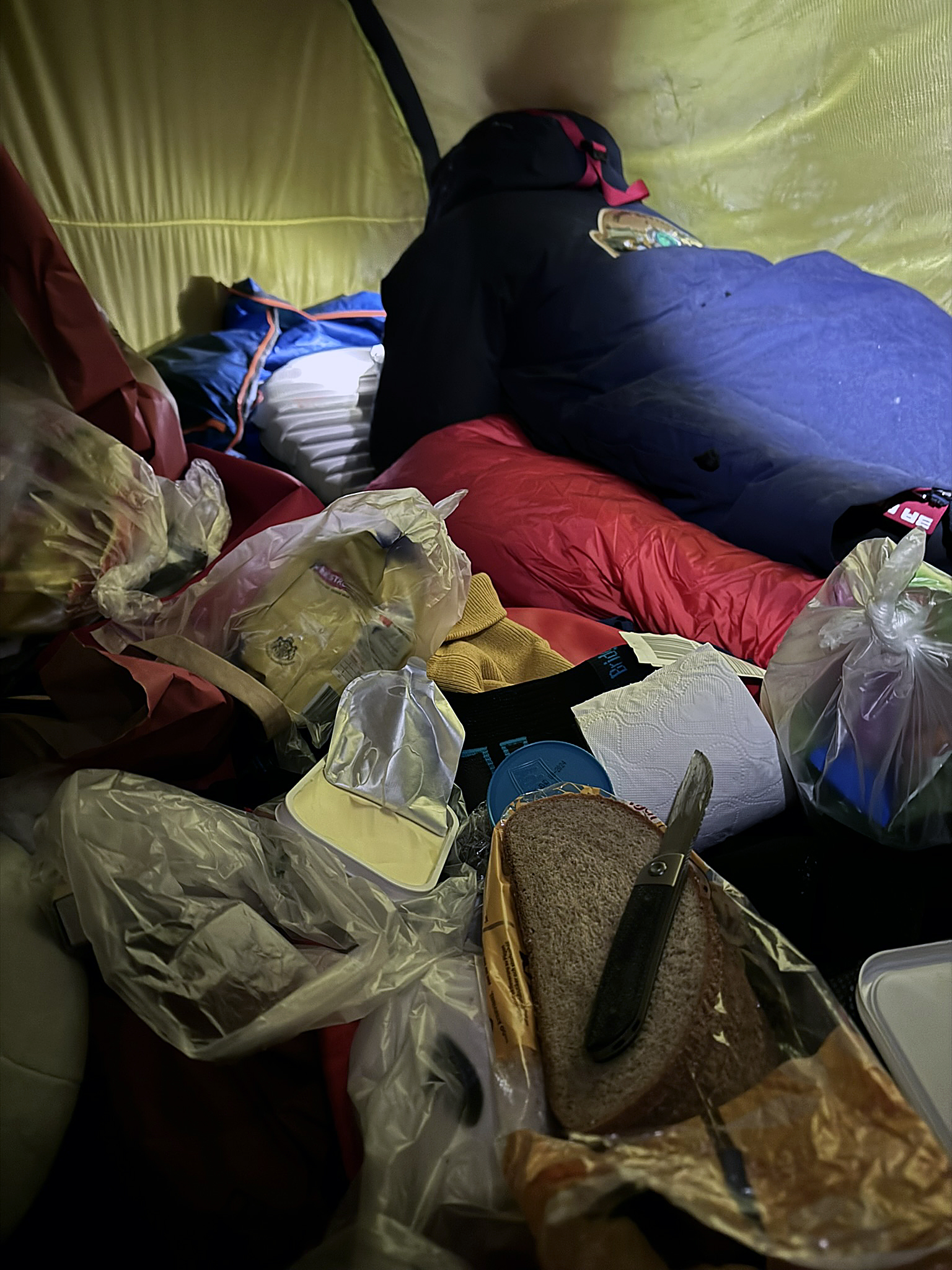 Obviously it was pitched black at 4 p.m. And we knew sunrise was 09.30 am. So yet another quick test for Max in Arctic realities, a long night in the sleeping bag waited. It has to be said, Max was also jetlegged, but fell asleep quickly and got a good nights sleep.