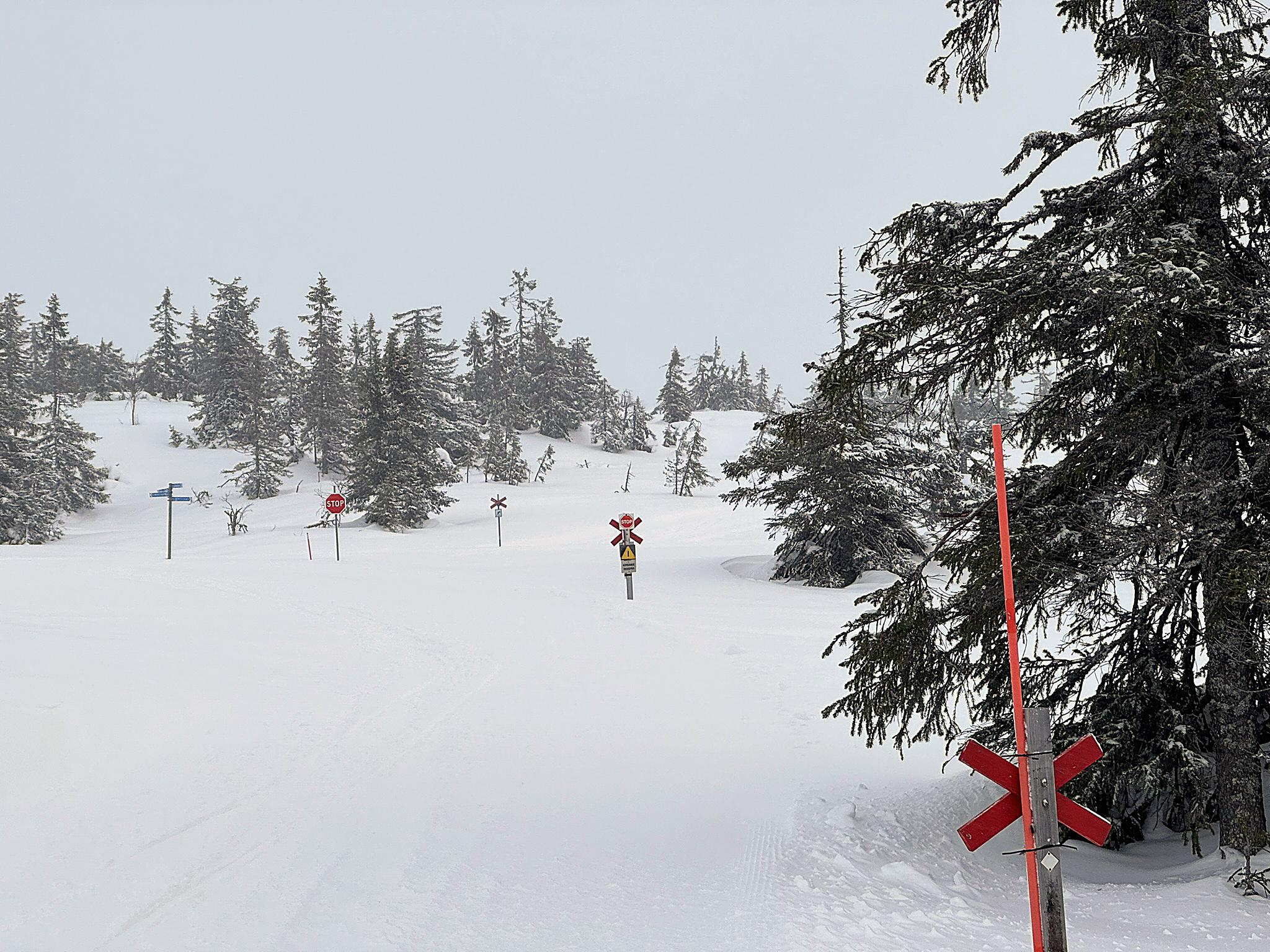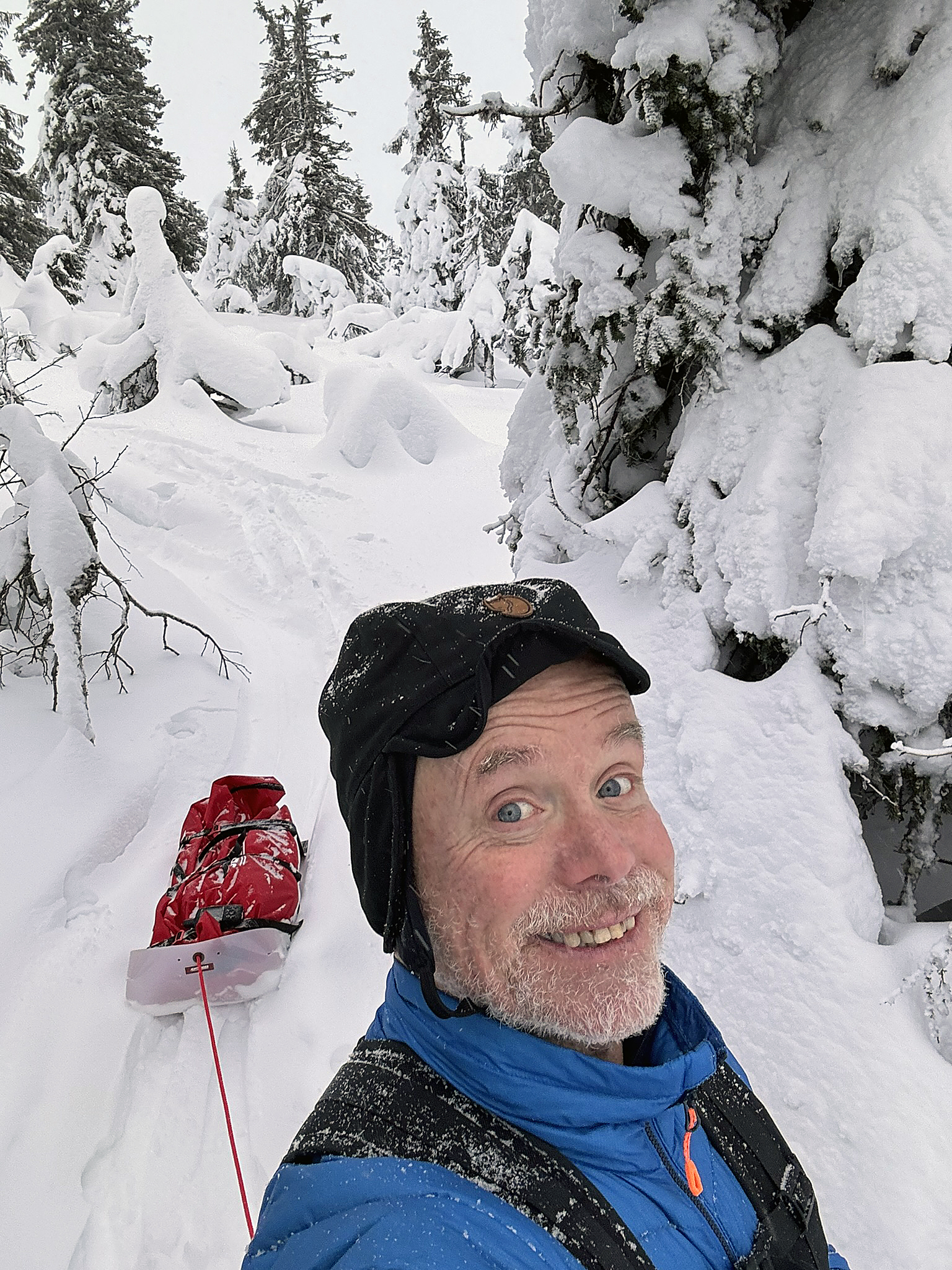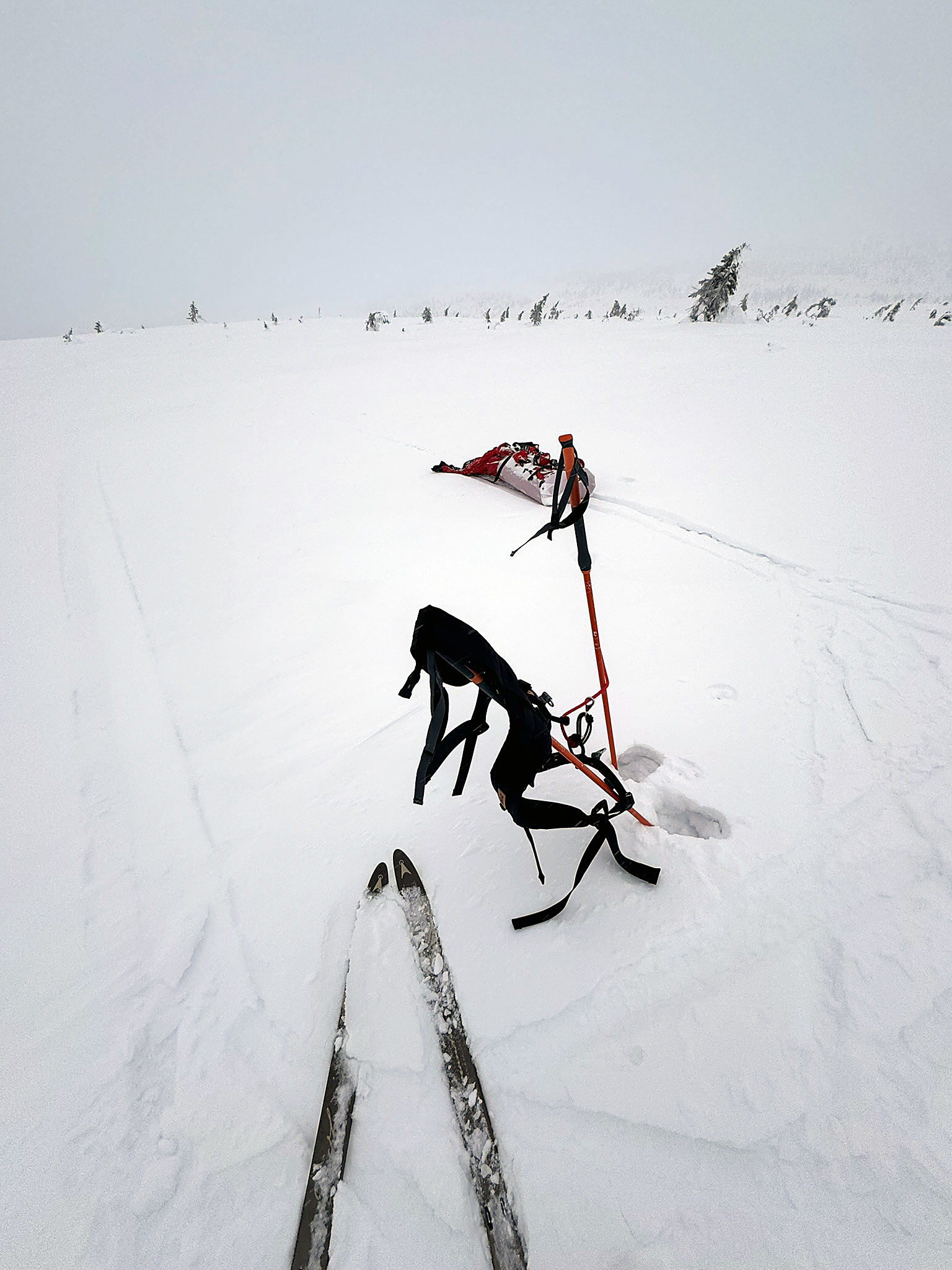 Efter en timme i skogen och djupsnön, såg jag ett slädhundekipage köra förbi och ledmarkeringarna dök upp. På avstånd hörde jag, och luktade mig till, bråkiga skotrar. En familj kom skidande i full fart för att hitta tillbaka till bilen eller stugan innan mörkrets inbrott. Jag korsade leden och åkte ut på en vacker myr och följde den tillbaka till parkeringen. En riktig höjdardag jag önskar alla människor att få uppleva! Bryt mönster!