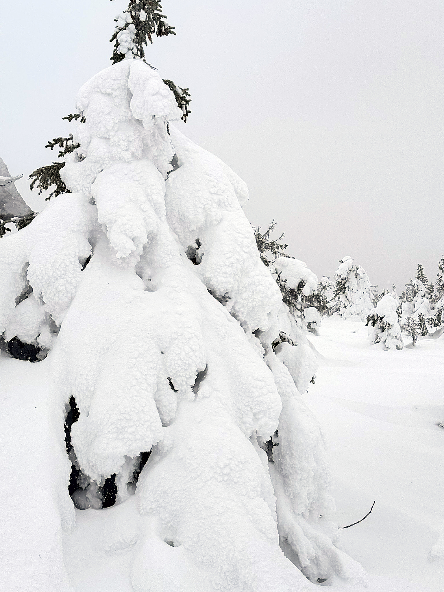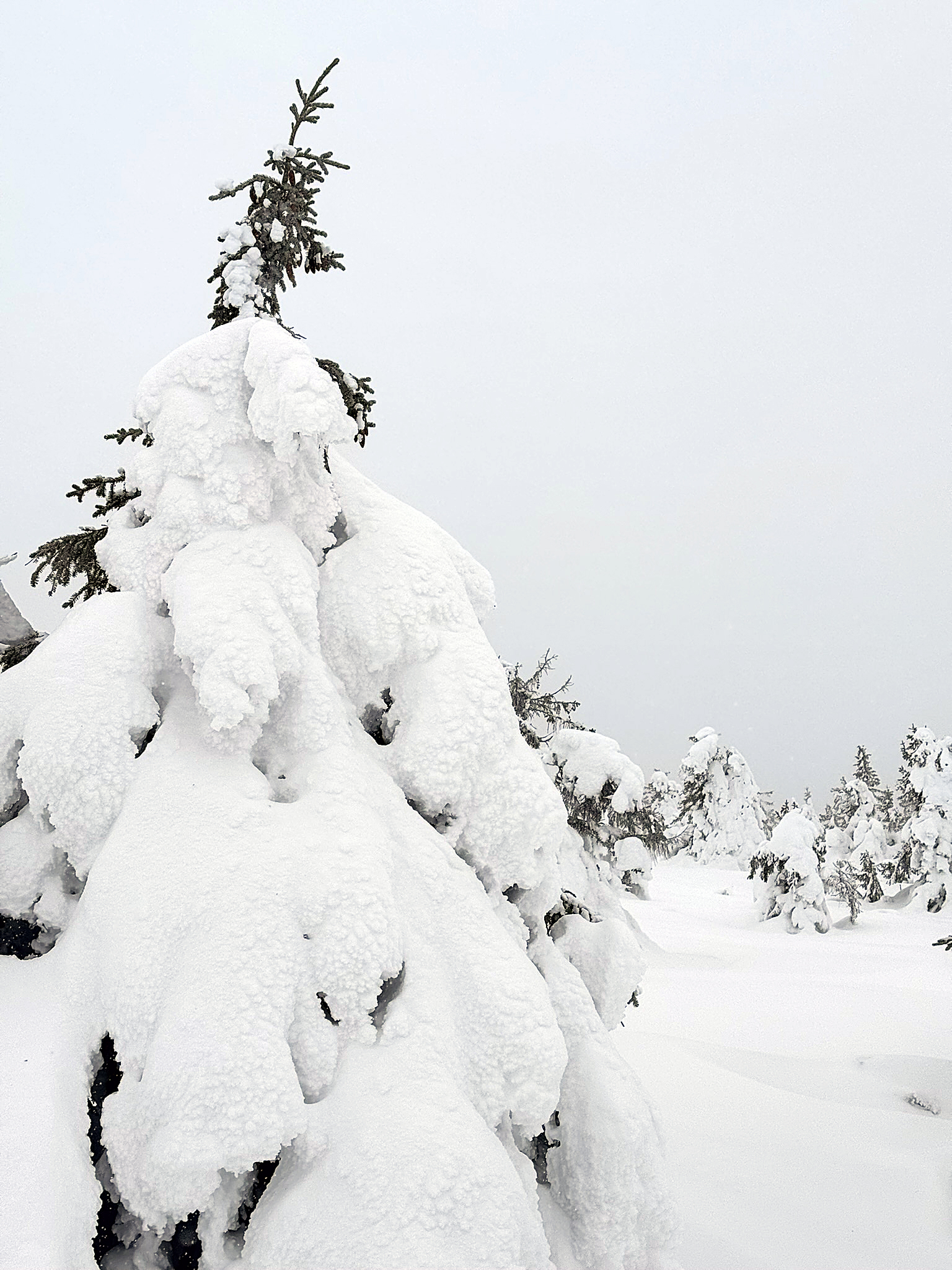 Snön vräkte ned så det tog sin tid att hitta och ta sig fram till parkeringen vid fjället. Hemfjällstangen är en liten pärla fjäll som passar som dagsutflykt.3 mil från Bu där jag bor. Det första jag gjorde var att direkt lämnade den kryssade leden. Att följa en markerad led är som att åka på preparerade elljusförsedda spår. Jag ser det ungefär som samhället som helhet, folk bara följer invanda, bekväma, säkra spår och vill helst inte lämna det tryggheten av vad de känner till.
