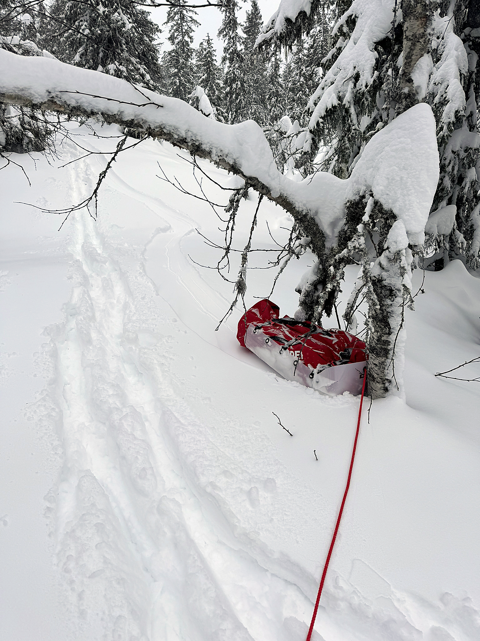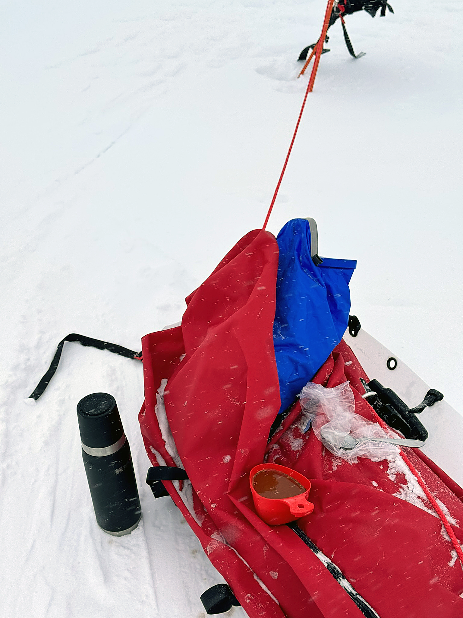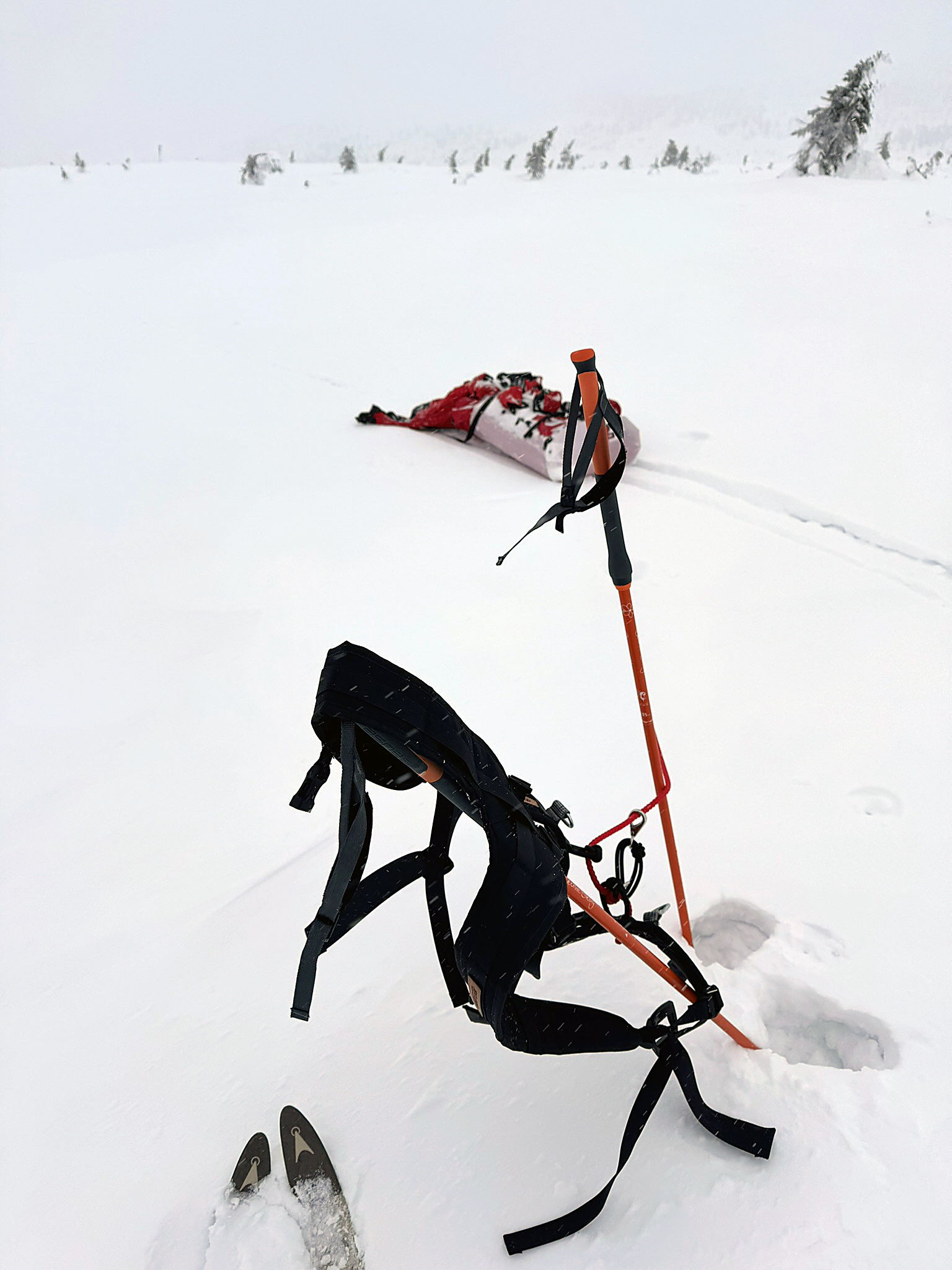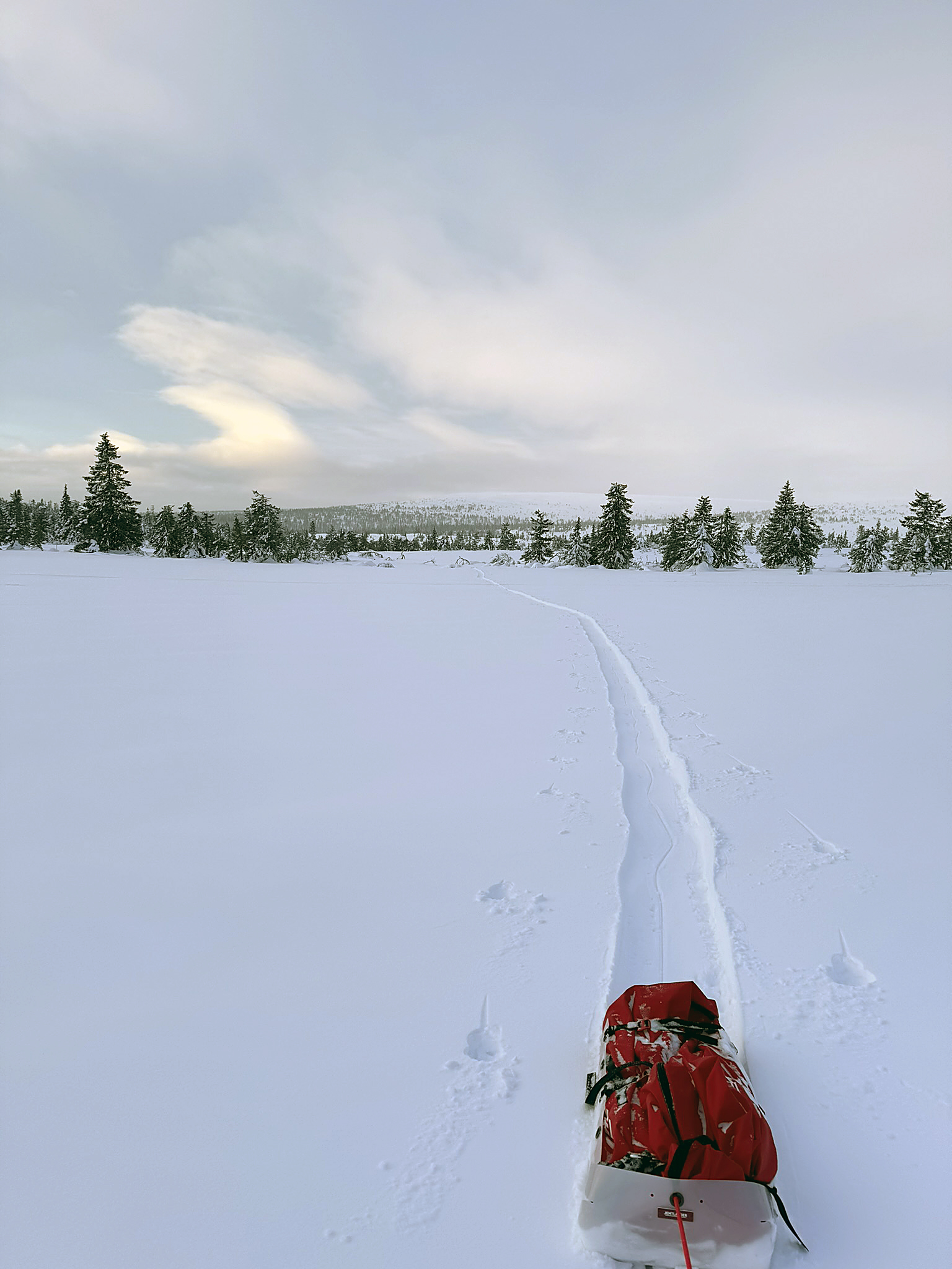 Jag kokade upp vatten för två Thermosar, satte korta stighudar på Åsnes skidorna och packade en liten spännande pulka som den mycket hygglige Lennart på Jemtländer skickat. Tanken är den som extrapulka på en eventuell Sydpolsfärd. Den är också perfekt för dagsutflykter kan jag säga!