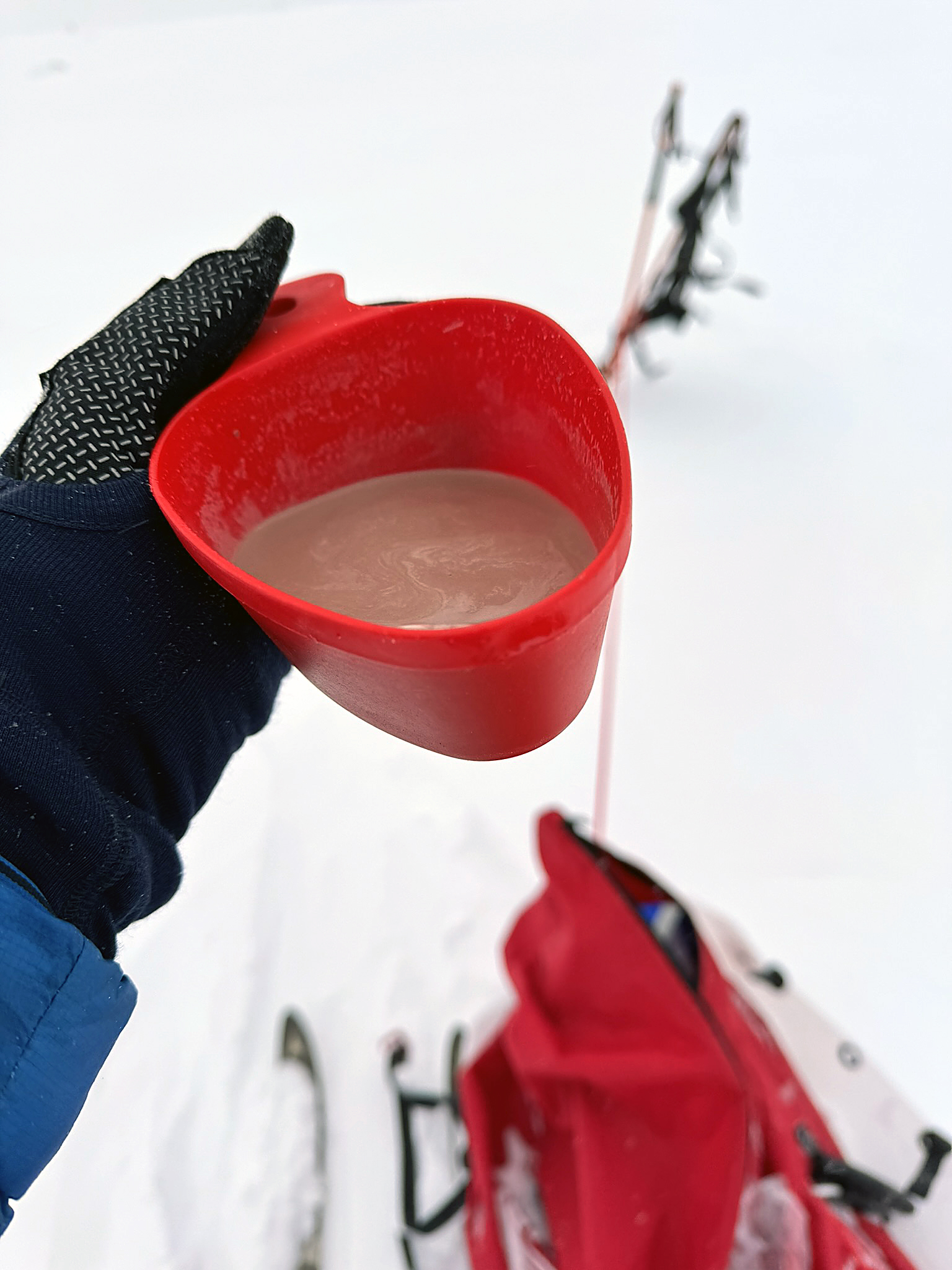Så gick tankarna tills jag nådde upp på den arktiska öknen, fri från träd. Och blåsten sög all energi ur mig. Jag försökte fylla på förråden med chokladdryck och soppa, men fingrarna tog för mycket stryk. Den arktiska öknen är brutal och omgående tvingar in besökaren i total self-awareness som det heter idag. Alltså kort sagt, leva i nuet.