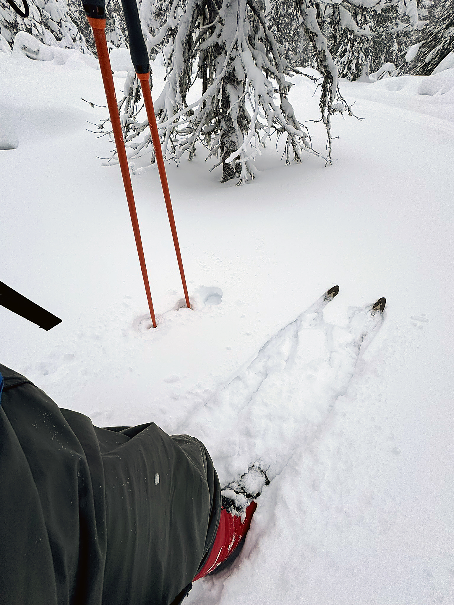 Det första jag började tänka på när jag skidade genom den oerhört vackra fjällnära skogen, med granar tyngda av snö, var den stora frågan: