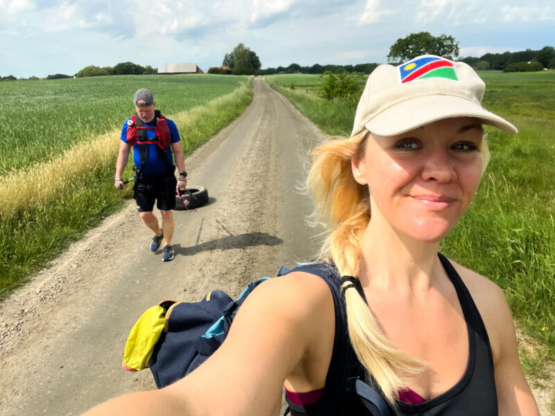 Mikael is pulling a tire, it’s what he does these days, among many other regimes as he trains to cross the prodigiously challenging Greenland Icecap in only a couple of months. We love training together, it is one of our things.