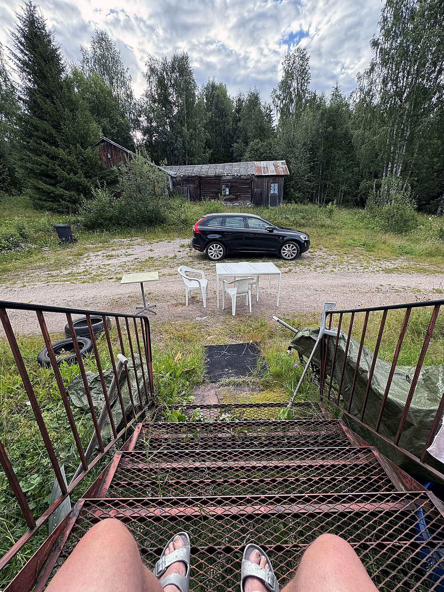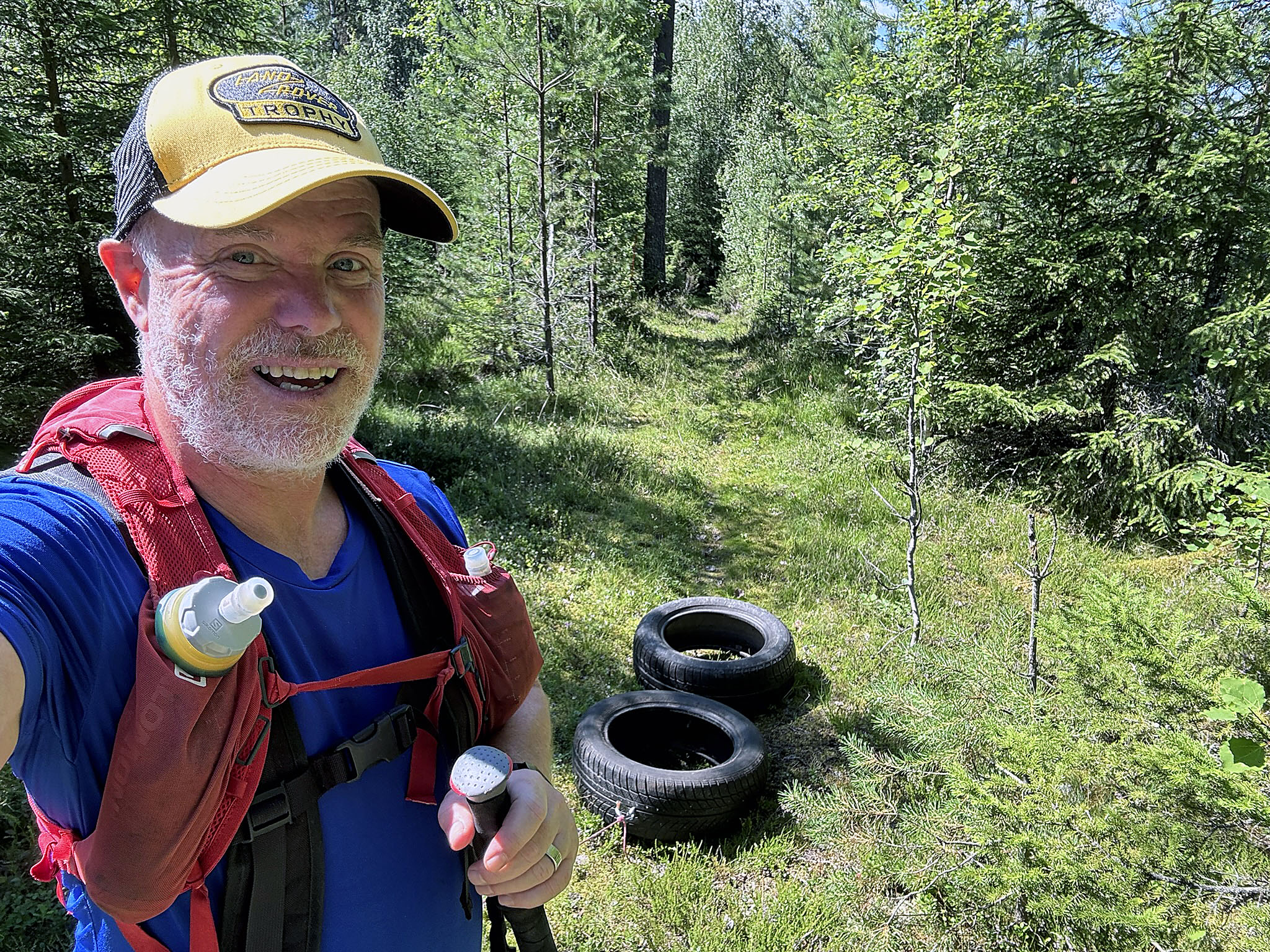 Förmiddagarna är helt och hållet träning. Jag försöker upptäcka nya platser när jag drar däck. Igår följde jag stigar, övervuxna, genom skog, över bäckar och myrar, storslagen utsikt och skog, men de satans bromsarna är tuffa! Kliat hela natten….