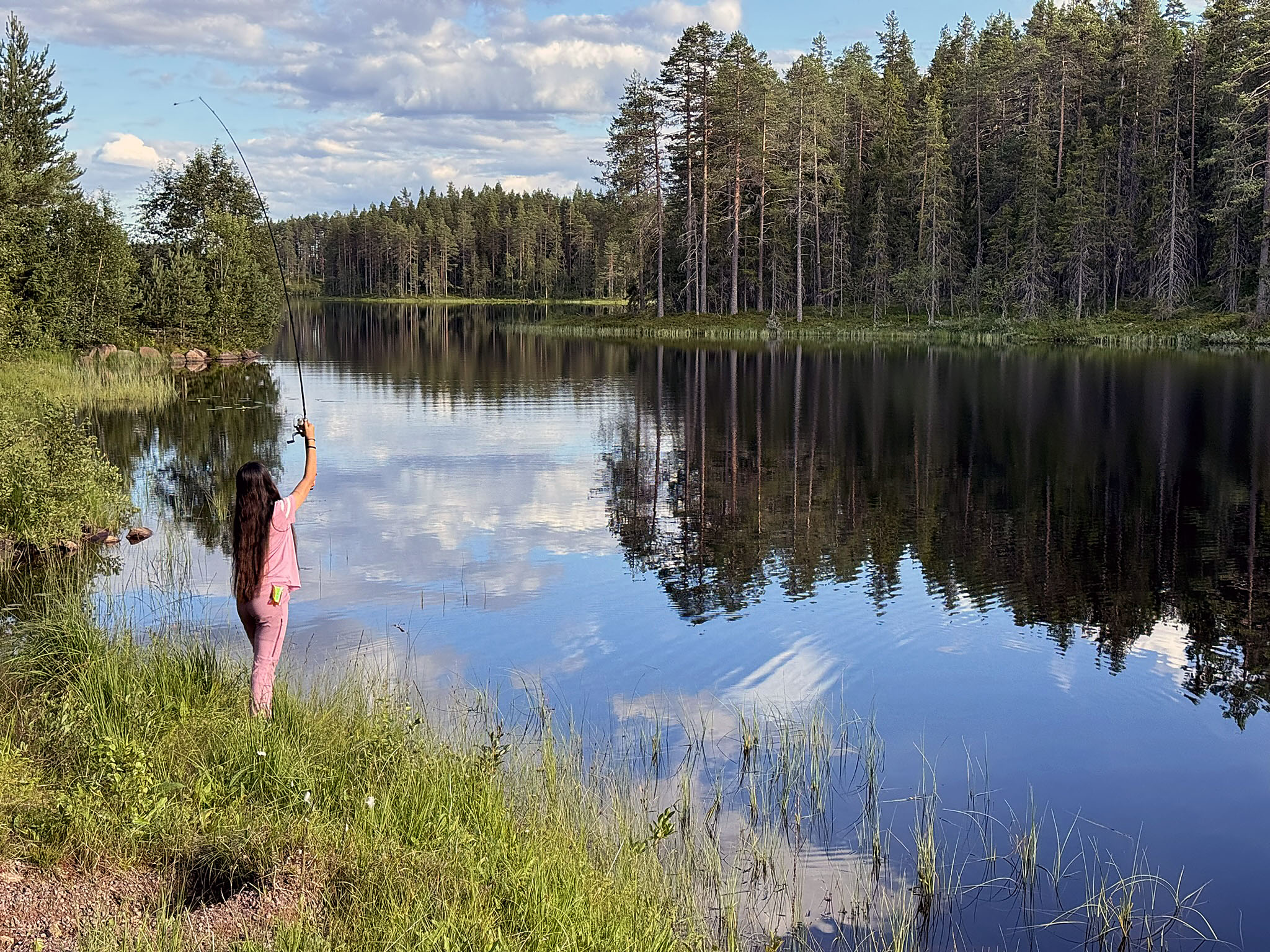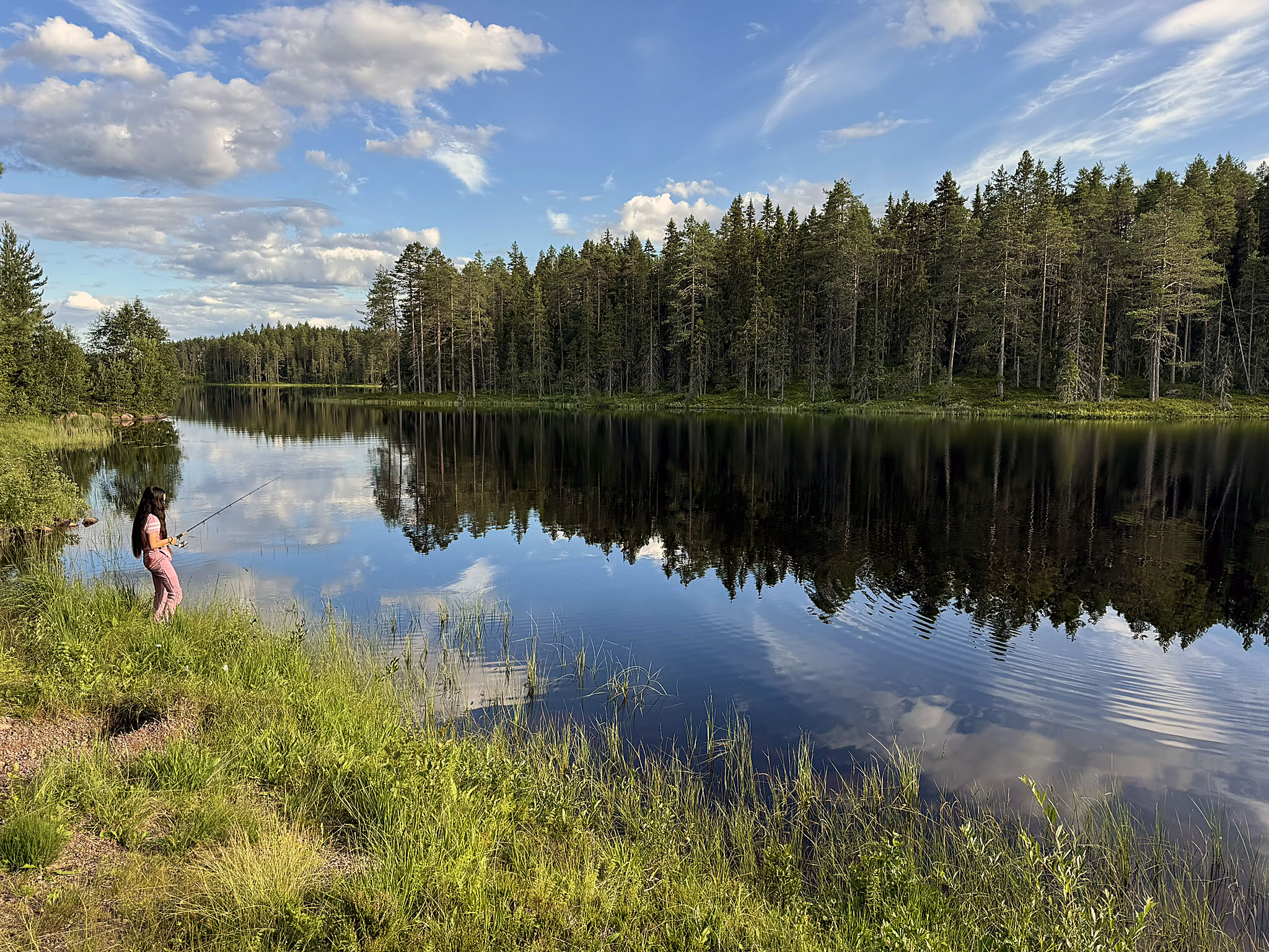 De två första dagarna här i Västerdalarna och Limedsforsen har varit guld värda. Tjejerna har ju inga måsten heller, ingen skola, ingen fotboll, inga kompisar. De är uppe till tidig morgon och gör sina grejer. Vi tillbringar eftermiddagen och kvällarna tillsammans. I fredags köpte vi en grill och grillade. Det tog en hel eftermiddag och kväll, men vi satt ute i den underbar kvällsluften och njöt. Igår åkte vi till Hässjön och försökte fiska. Som vanligt blev det inget. Det är svårt att fiska från land. Men så oerhört vackert. I stället åt vi sill, tyta och potatis till middag. Underbart!