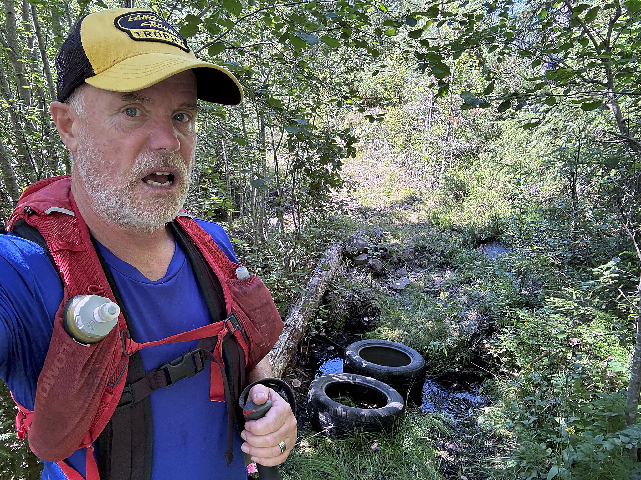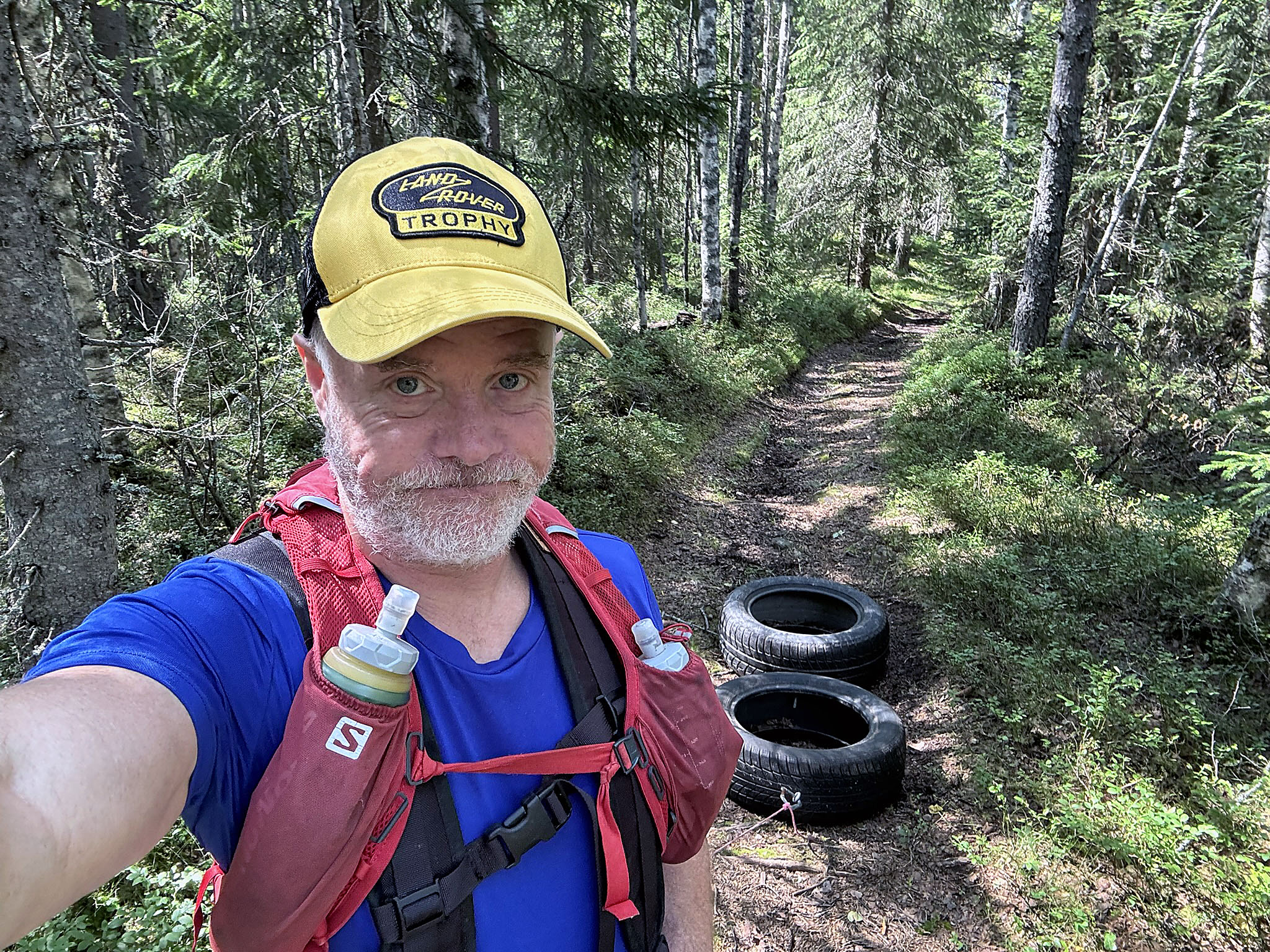Förmiddagarna är helt och hållet träning. Jag försöker upptäcka nya platser när jag drar däck. Igår följde jag stigar, övervuxna, genom skog, över bäckar och myrar, storslagen utsikt och skog, men de satans bromsarna är tuffa! Kliat hela natten….