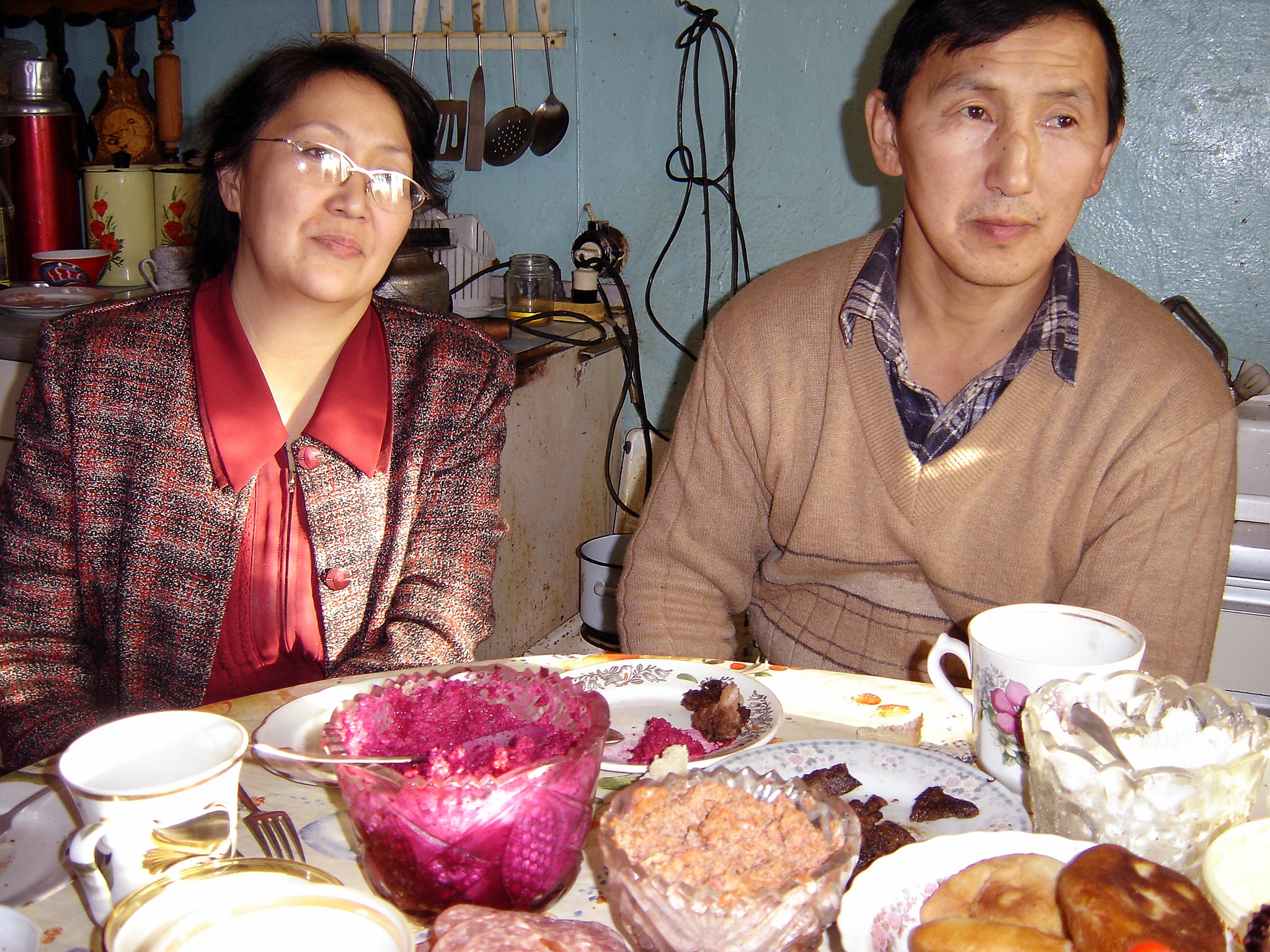 Natasha seems very intelligent, but takes her backward traditional role as a woman seriously, and doesn’t therefore say a lot. Anatolij’s father is also sitting at the table. His face is extremely weather bitten, sculptured by age and experience. To honor our visit he has donned himself in a coat full of medals. He’s passed his 70th year, doesn’t say one single word, but look as wise as the Mountain owl.