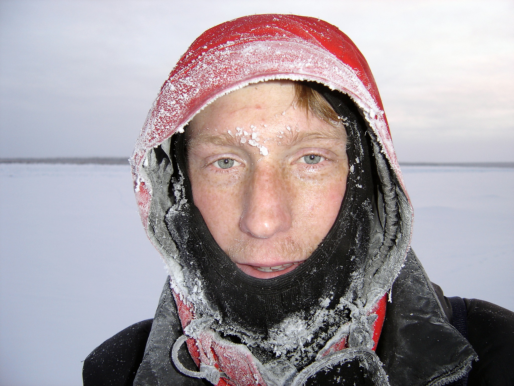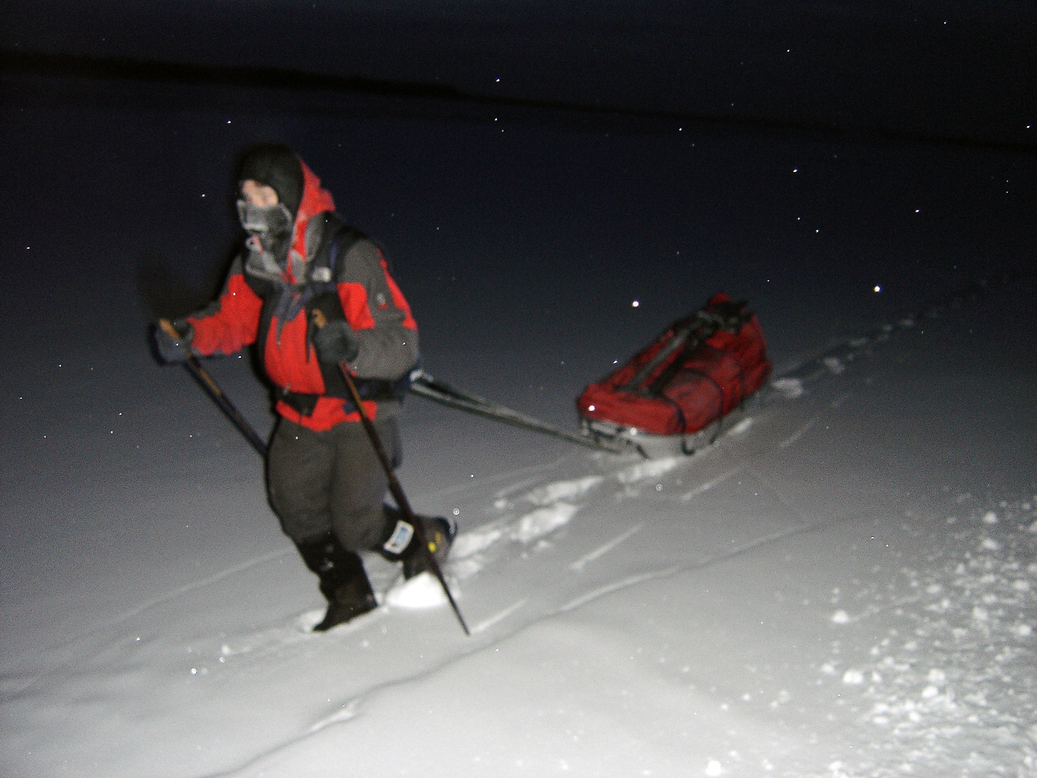 We’re extremely tired and cold right now. We’re just advancing one step at a time. Focusing a few meters ahead. We’re freezing pretty much all the time. But we’re at least coping with the cold now and don’t suffer too much from freezing all the time. Day and night. We don’t seem to get any worrisome frostbites any more as I did in the beginning, when the skin was totally unprepared for this extreme cold. We do get the odd light frostbite. On fingers, cheeks and noses. It’s just like getting burned, a small sore, where you temporarily loose your feeling on this particular spot, until the new skin grows out and you’re ok again. It seems to take a couple of weeks to cure. It doesn’t bother us at all. However, this extreme cold bothers us a lot. It is no easy thing to handle. Right now, we seem to be able to tolerate it relatively well, live with it, but we will never like it.