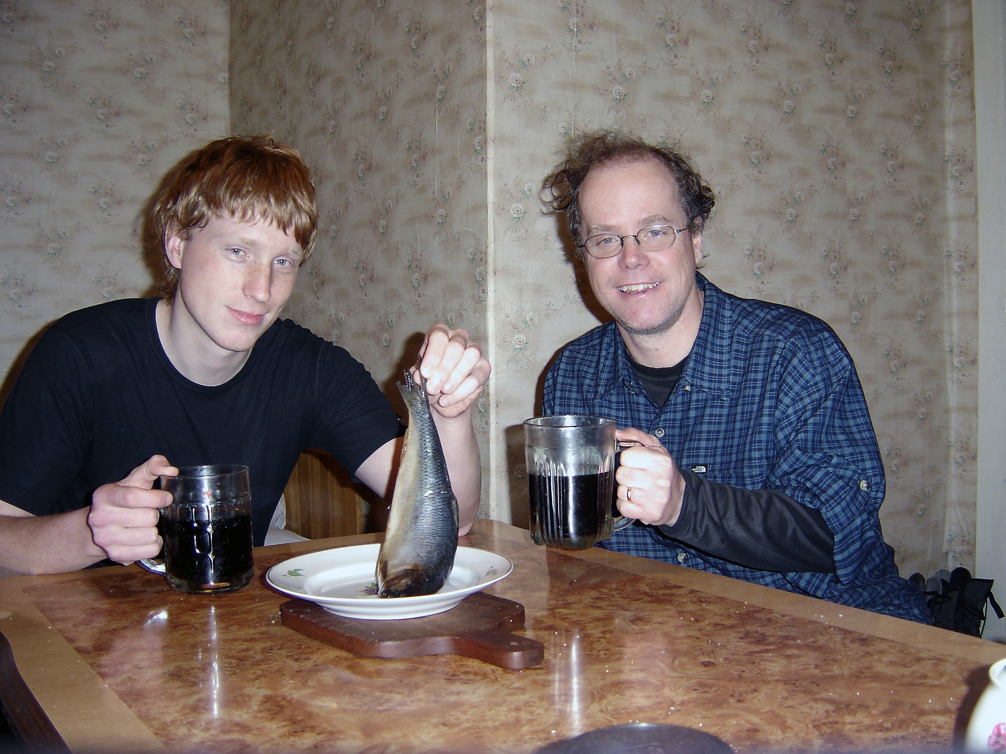 We also showed him the 3 minute slot we’d just made to be broadcast by the Swedish Television the same day. A bit about our freezing trip and a lot about a couple of trappers we’d met and filmed. (See www.svt.se and click Gokväll in the top list of options.) He didn’t seem impressed at all, and reacted only once, when he saw that one of the toughest guys I’ve ever met, were handling the fish in a mere -49°F in rubber gloves.