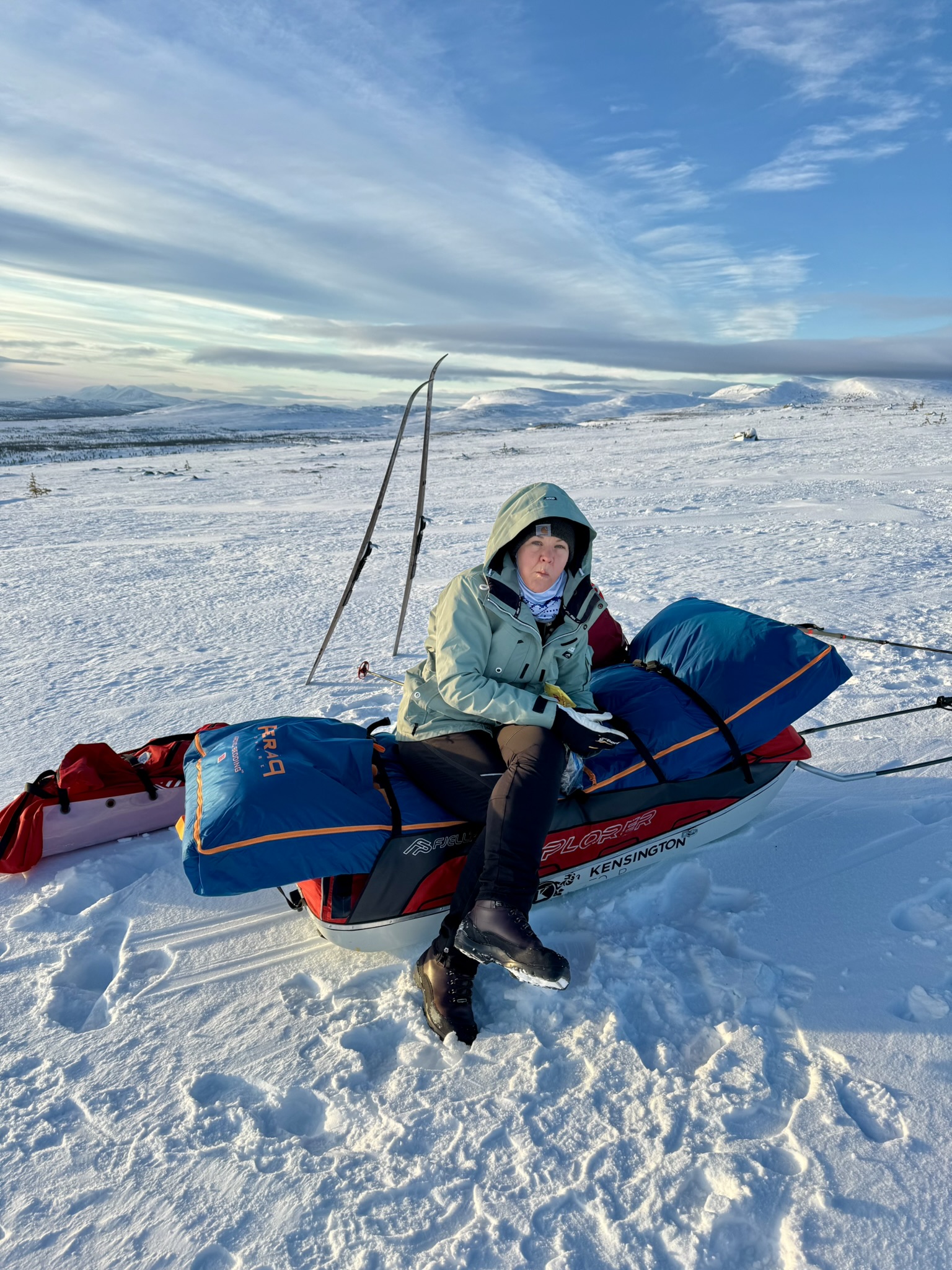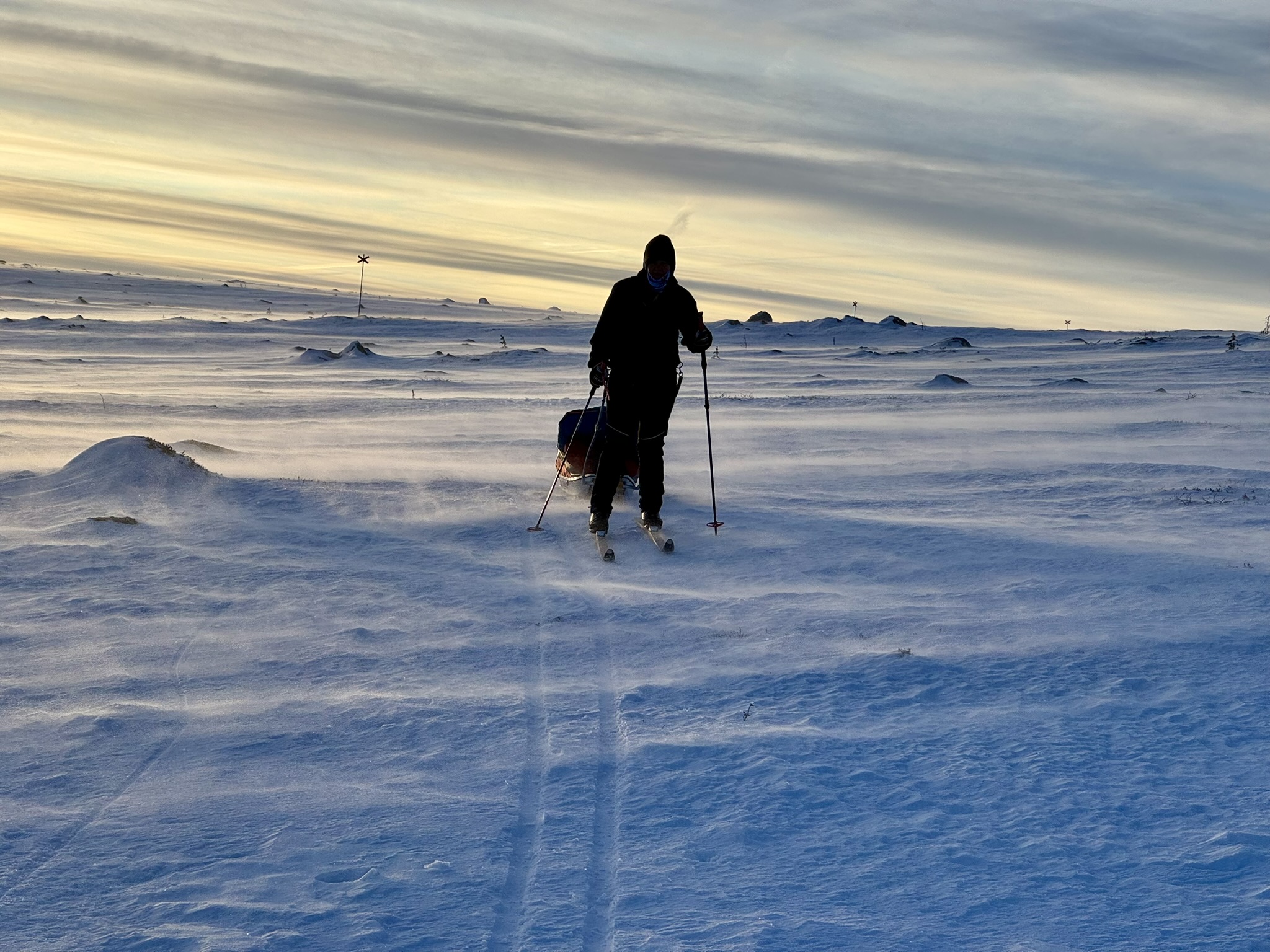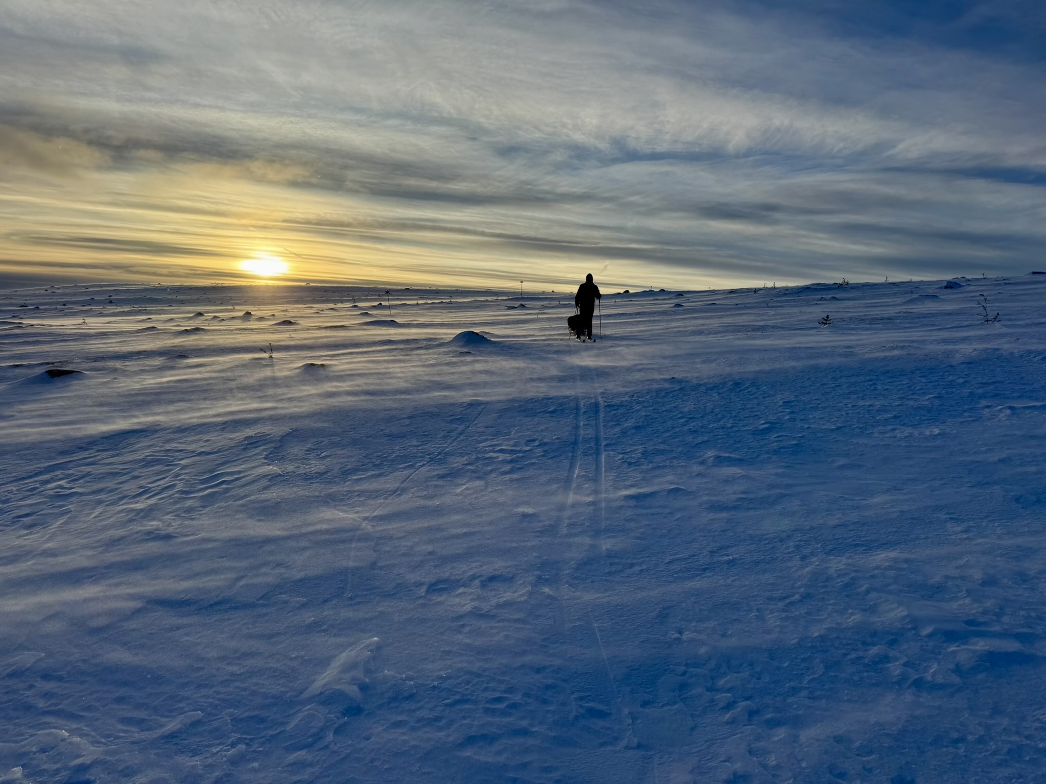 We decided that I would take down the camp, pack it all up in the sled, a rucksack and a pullpac from Jemtlander. And she would just get herself all the way back to the parking, a couple of hours back and meet me there. It was great visibility, and easy route to follow and off she went. I was sure I would easily pick her up on route and that it would take a full day to get back. Not so. She was fast. And waited for me, rehydrating a couple of hours later. She recovered quickly and an hour later we stopped for the traditional big pizza in Idre.