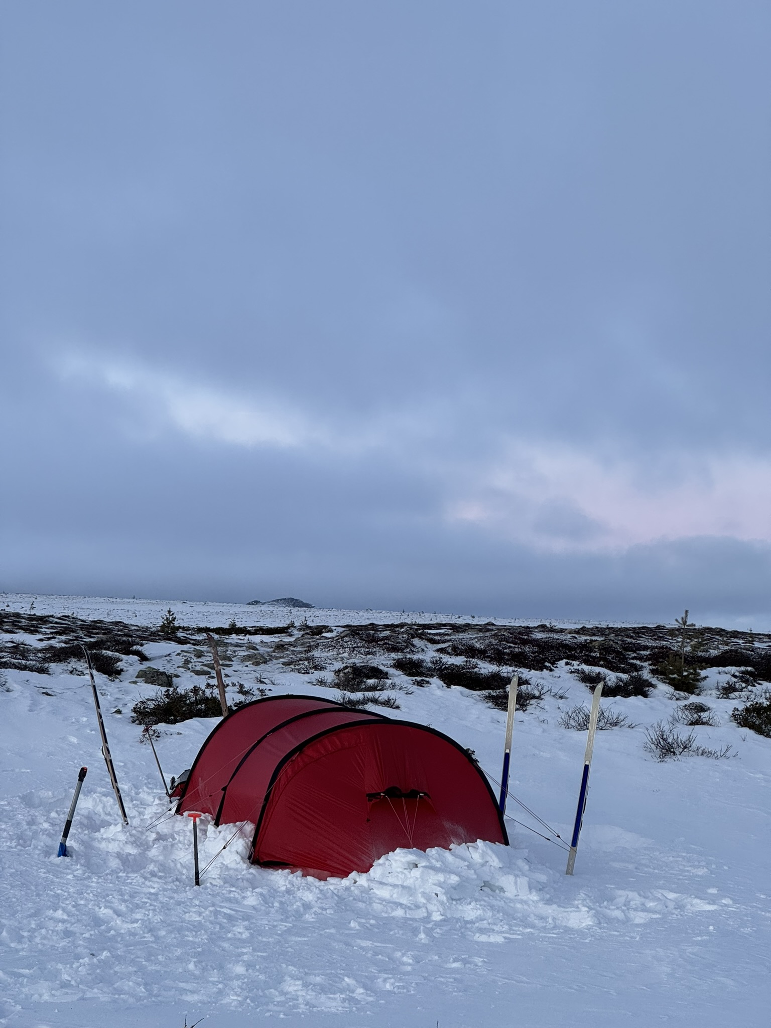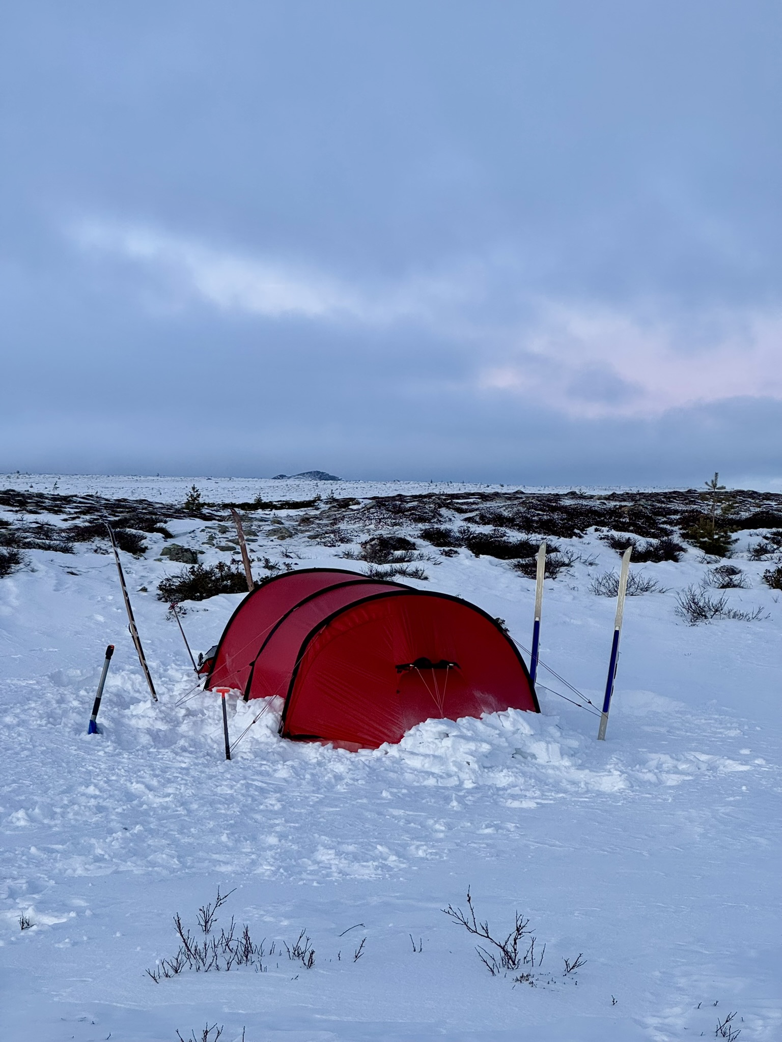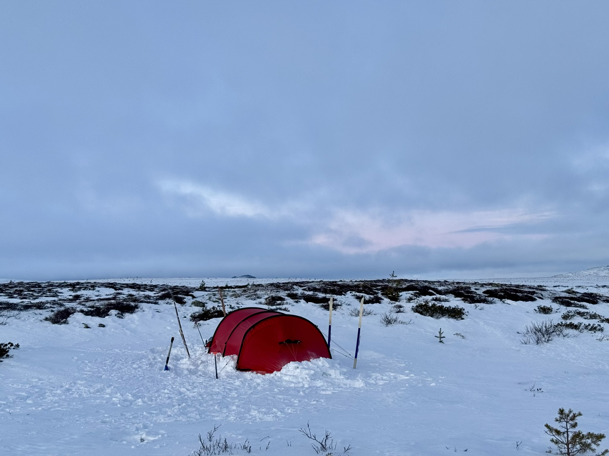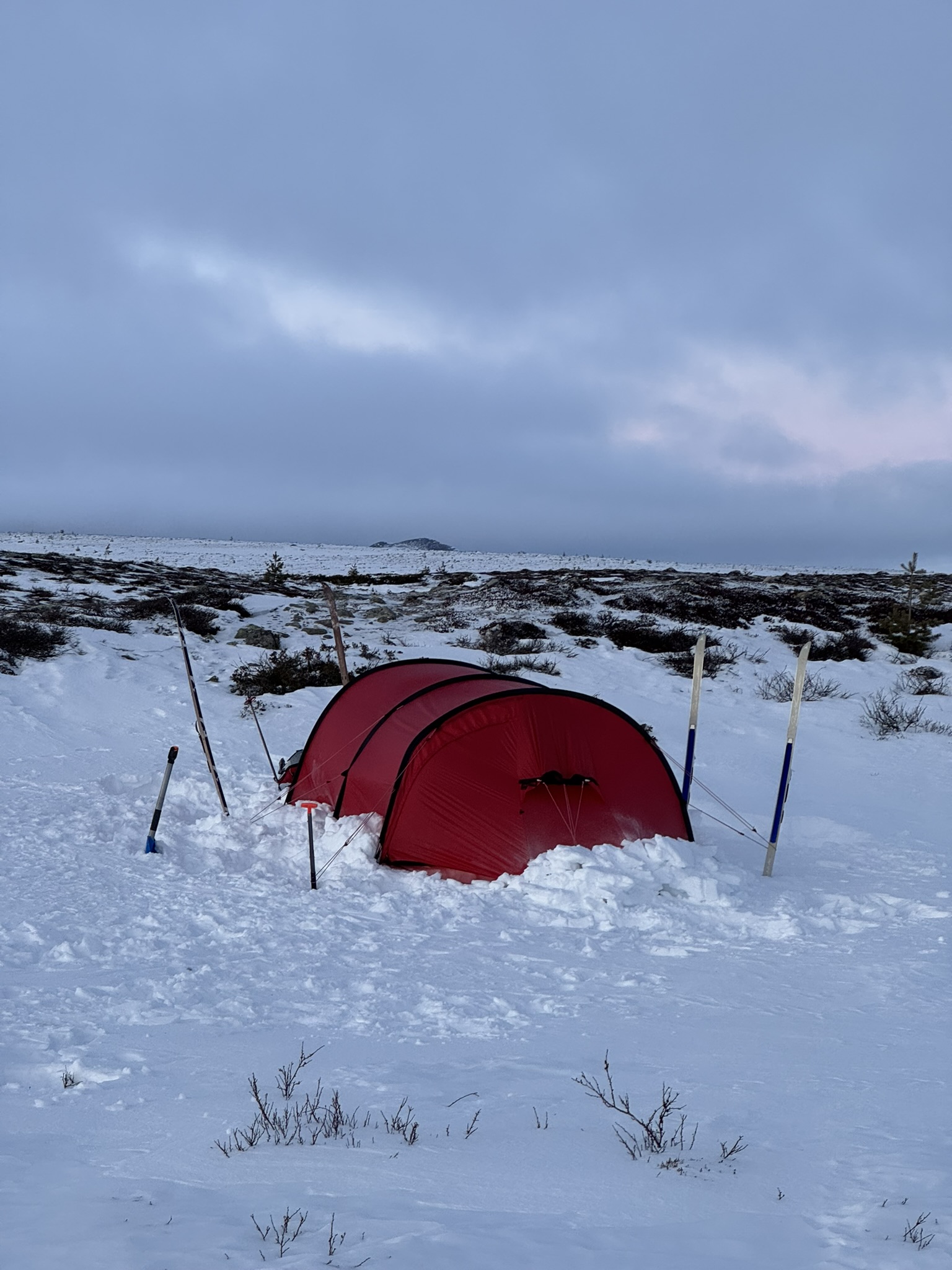 Hannah woke up feeling sick. She threw up as quick as she tried to eat or drink something. We tried small sips of water, crackers, the usual possibilities, but it didn´t help. I figured it was probably dehydration. Maybe a light hypothermia. Or side effects of jetlag? She hadn´t been drinking and eating much, and even though we had brought salmon and moose sausage for food, she had one meal at 15.00 when we came back from the climb and then went inside the sleeping bag. It was dark outside. The sleeping bag is a great place. But you need to eat and drink. At least 3-4 liters a day. The dry cold takes a lot of energy, even if the gear is really good.