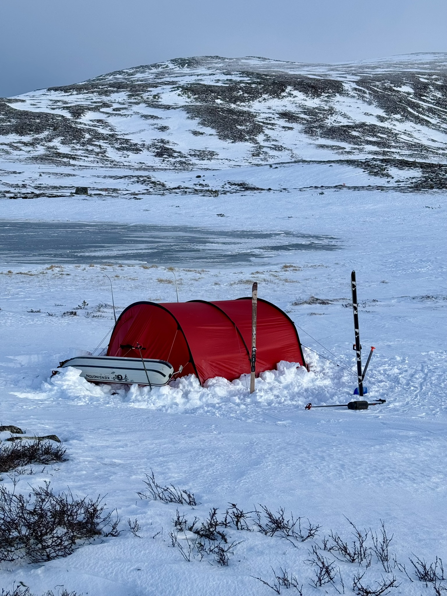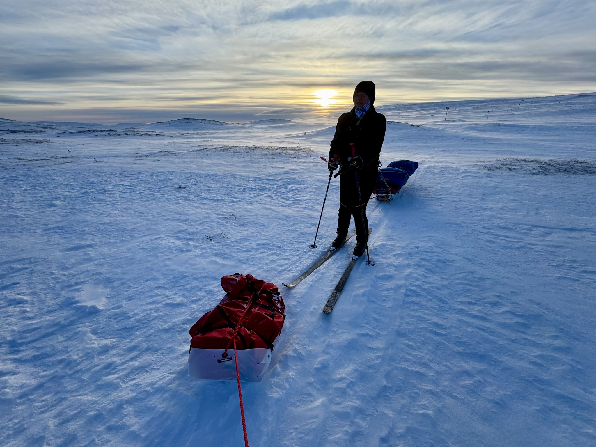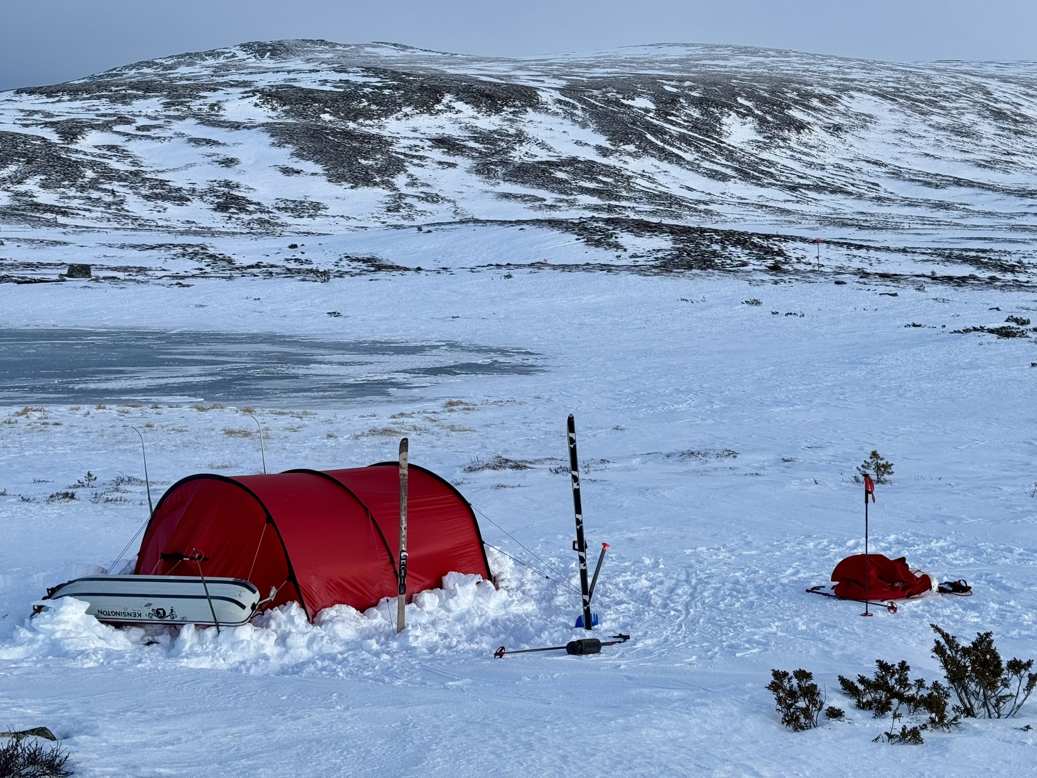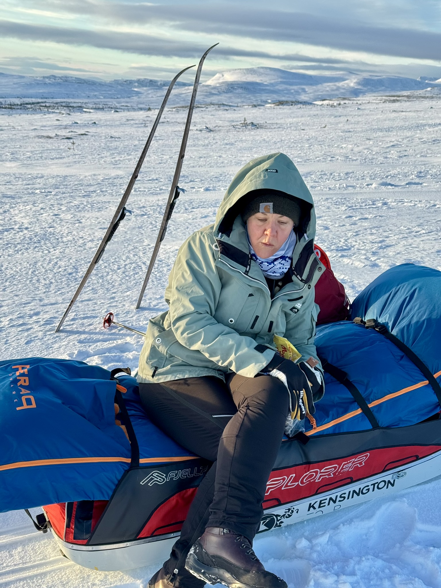 Hannah woke up feeling sick. She threw up as quick as she tried to eat or drink something. We tried small sips of water, crackers, the usual possibilities, but it didn´t help. I figured it was probably dehydration. Maybe a light hypothermia. Or side effects of jetlag? She hadn´t been drinking and eating much, and even though we had brought salmon and moose sausage for food, she had one meal at 15.00 when we came back from the climb and then went inside the sleeping bag. It was dark outside. The sleeping bag is a great place. But you need to eat and drink. At least 3-4 liters a day. The dry cold takes a lot of energy, even if the gear is really good.
