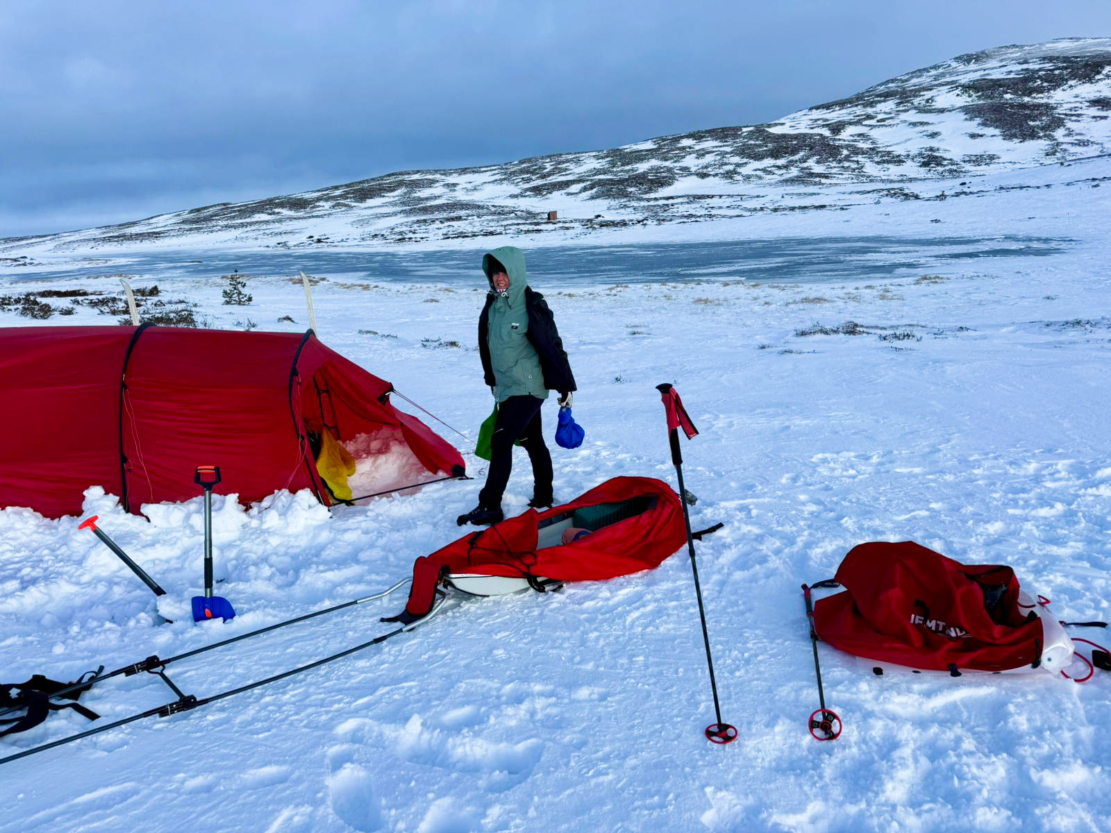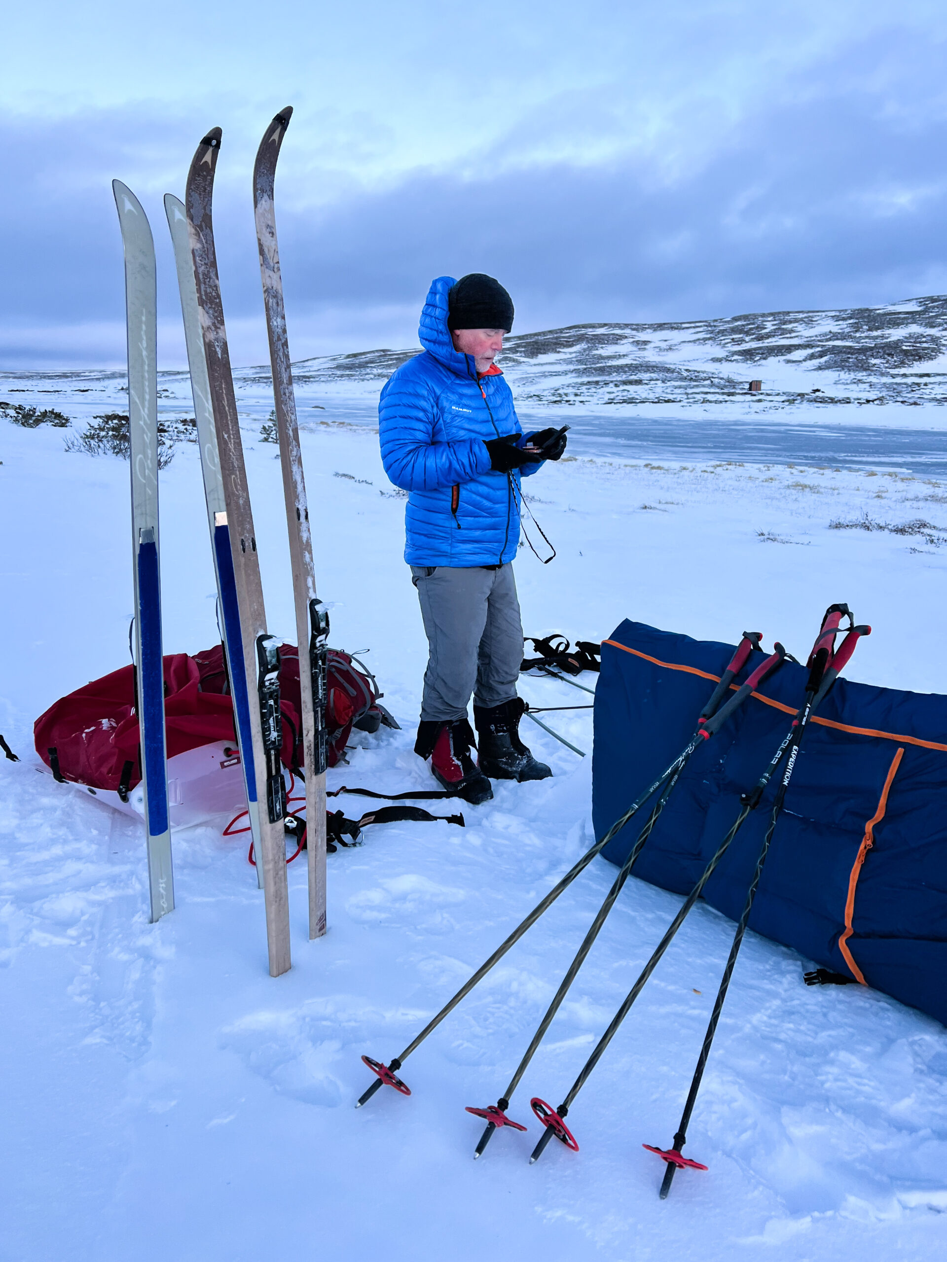 For two active days, I’ve had no problems, and we’ve had a laughter-filled, loving good times out here, with long deep sleep, after ski-hauling a sled on Day 1, and hiking to the summit of Storvätteshågna (1204m/3950ft) on Day 2.