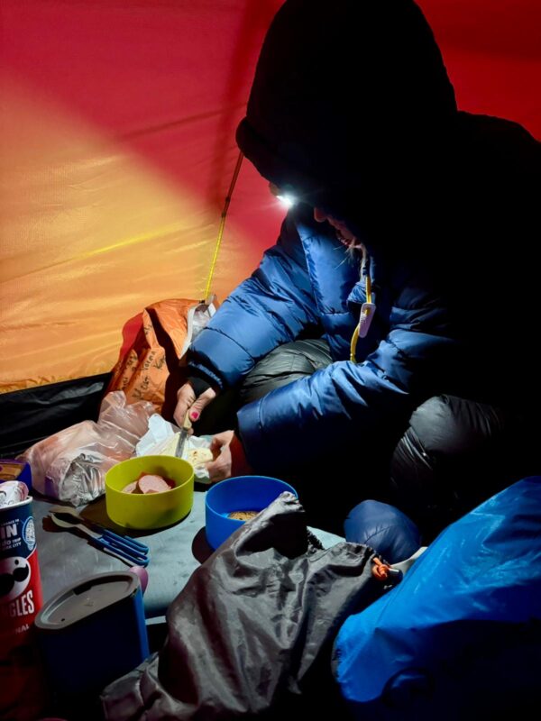 And while it was not the hardest few hours of my life, the memory will last. These are the small moments of growth, the out-of-nowhere calls to resoluteness. Vomit and ski! It was the lesson I needed. The morning brought Mikael and me even closer as partners, demonstrating my graft and resilience and his emotional support, experience, and brute strength.