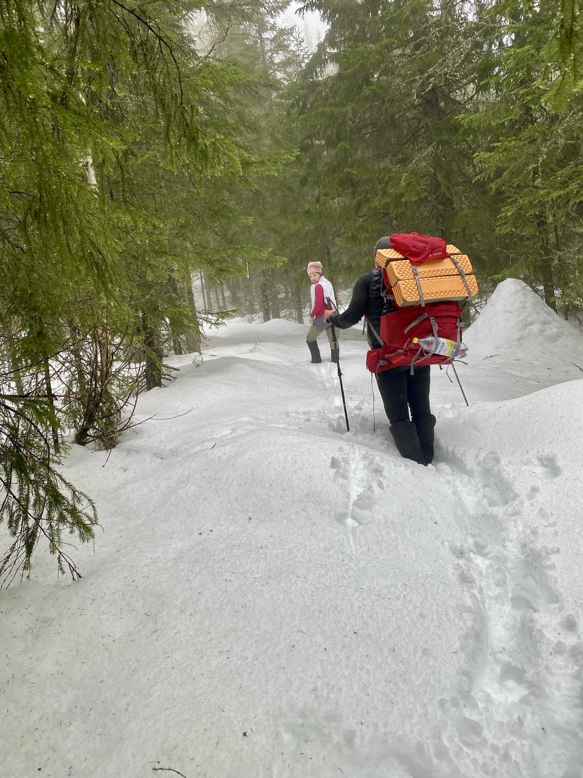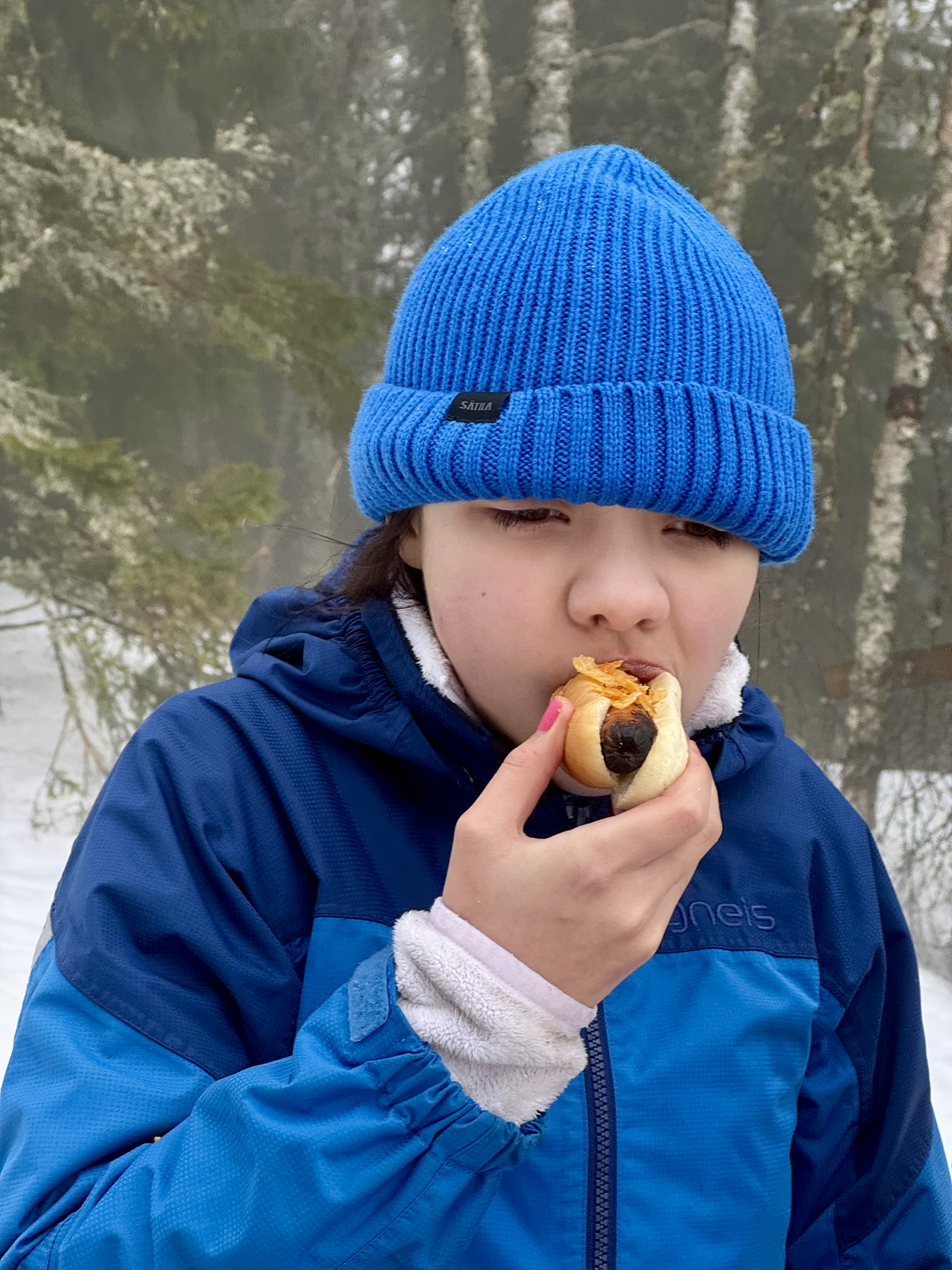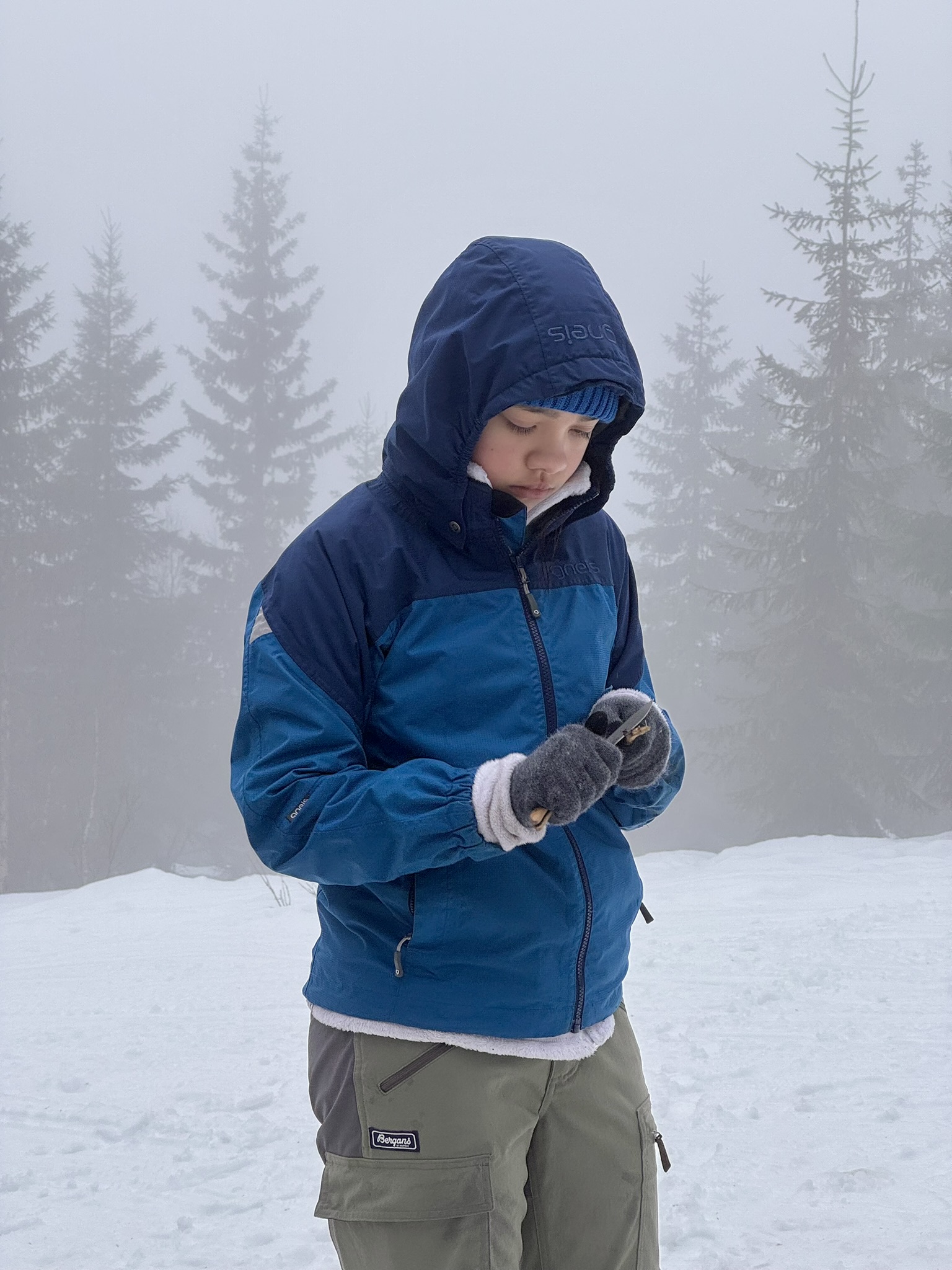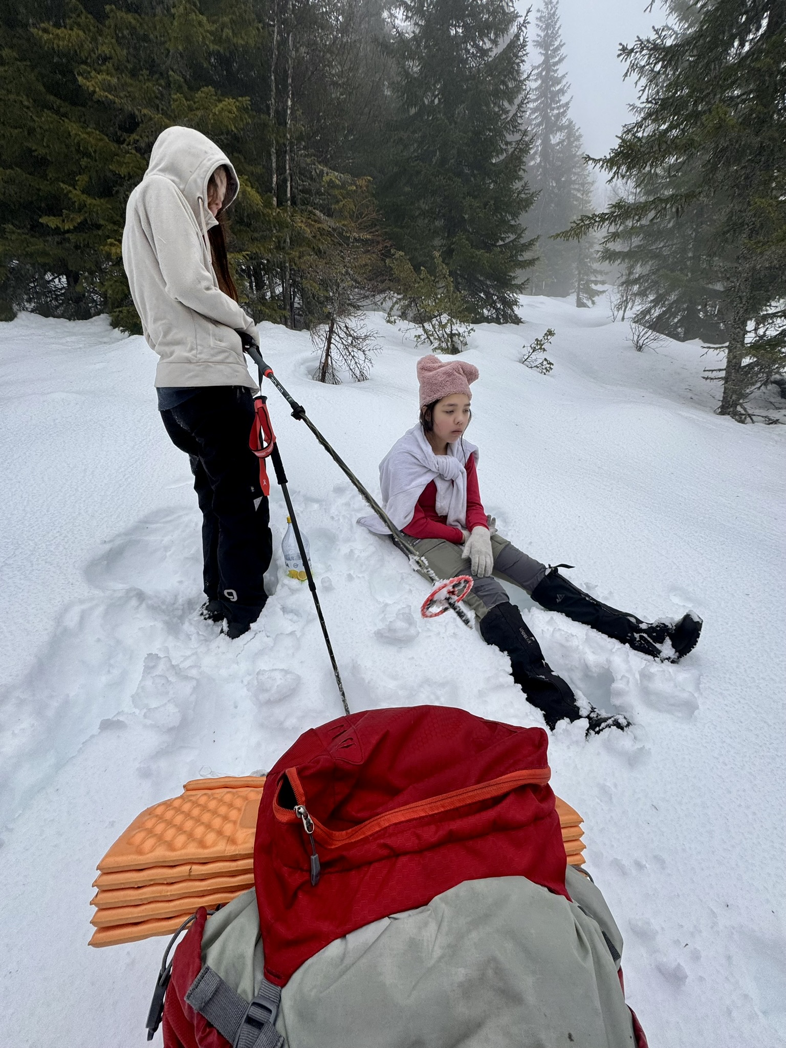My girls are quite different personalities. Eva, the oldest is by the day turning into what my agent Thierry calls a typical author type. Silent, loving, intellectual, somewhat controlling her feelings, always thinking and observing. Her sister, Dana, is quite the opposite. And right now, she was forcing her way through deep snow,breaking trail climbing up the steepest part of a local hill called Bullberget. (Possibly meaning Bun Mountain or Dana thinks, Cinnamon Roll Mountain due to all the layers we had to cross to get up.) It was hard work and Dana had been leading since we started 2 hours earlier slogging through the forest to get to the mountain. The idea was that this was a training moment for all three, preparing for the summers Expedition and filming in the Himalayas. I was carrying 23 kgs and needed the hard work, but Dana wanted to lead. And when I asked her if I could do the hard work, she looked at me confidently and said that she is in control. Dana is fit and strong for her age. She is also very encouring to the rest of us and she left us loving hearts in the snow when we couldn´t keep up with her. Always positive.