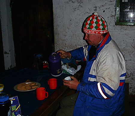 ”Jag bär hela ansvaret” ,påpekade denne världsvane, unge bergsguiden när vi klagade på den mycket undermåliga utrustning vi tilldelats, ”men nu är det som det är. Detta är vad jag kan tillhandahålla. ”