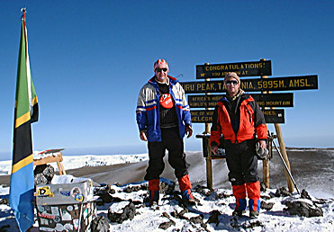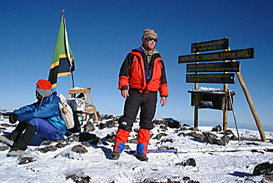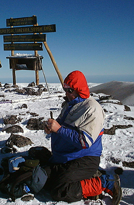 Plötsligt kastade han sig över oss, gratulerade och kramade om oss för att vi nått upp till toppen och förklarade att nedgången skulle gå snabbt. Leif och jag bara fortsatte förbi denne professionella guide och anträdde en snöig stig längs kraterväggen i riktning mot den verkliga toppen Uhuru Peak, som vi kunde skönja långt bort i den soluppgång som nu påbörjats. Omgivningen och vyerna där uppifrån kraterkanten var storslagna. Det var förvisso en värld av is, snöskulpturer och glaciärer, och plötsligt insåg vi att vi på fem dagar passerat från ekvatorial tropisk hetta och rakt upp till iskalla arktiska trakter. Däremellan hade vi passerat alla befintliga ekologiska nischer och naturtyper. Bestigningen av Kilimanjaro är helt unik för vår jord. (Samma unika upplevelse kan man få på Mount Kenya och Ruwenzori på gränsen mellan Zaire och Uganda.)