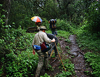 Peter raced ahead with Msafiri. The assistant guide, Arbogaste (a chain-smoker), tried to keep up. Leif and I protested as we overtook group after group: