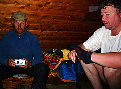 Det vi bråkade om var att vi betalat 600 dollar var och blivit lovade toppengrejer att sova i, men att det vid första lägeruppsättningen visat sig att tältet var en livsfara, de uppblåsbara liggunderlagen var samtliga punkterade med hål omöjliga att laga och sovsäckarna var iskallt tunna.