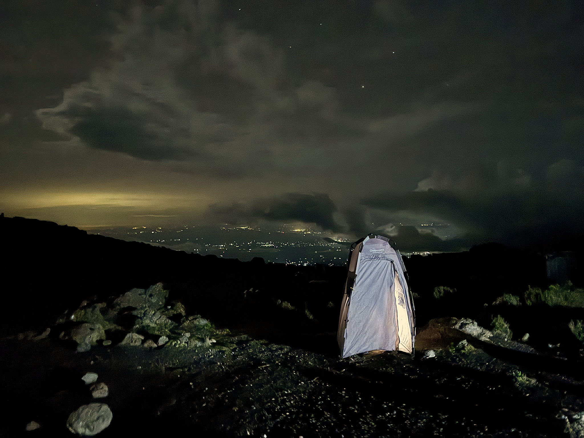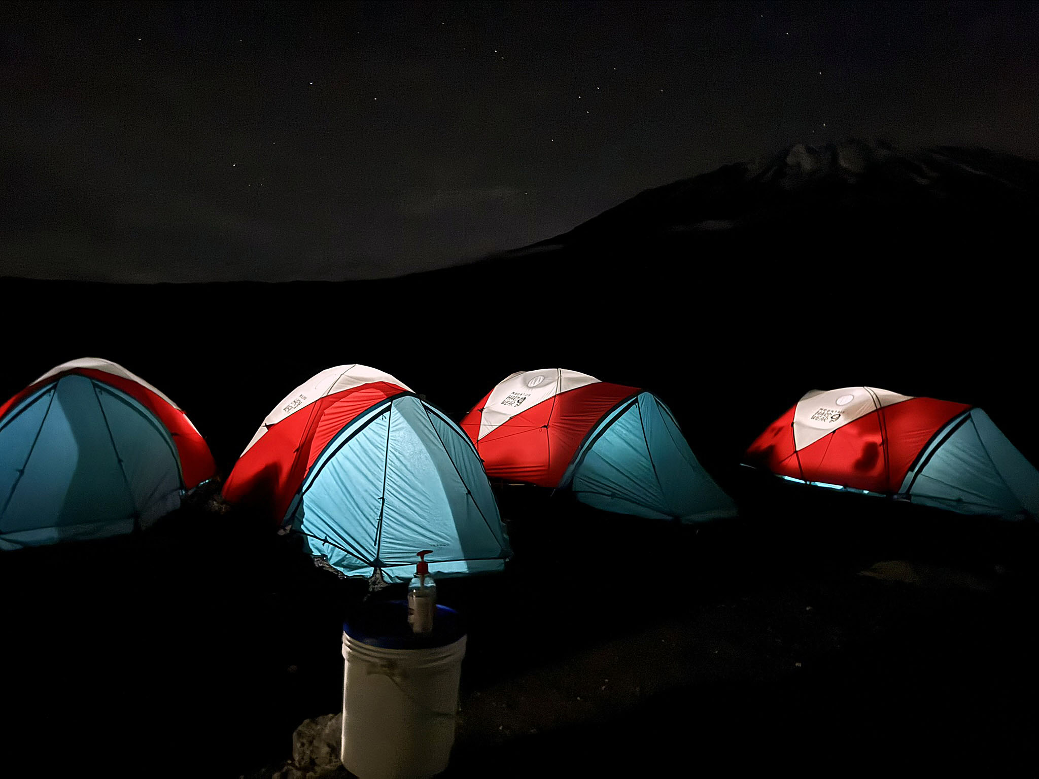 Richard and MJ seemed to have recovered a bit at dinner, though they had a bit of headache. We had such a good atmosphere in the group, so they were still smiling, laughing and taking part in the dinner discussions. Food was spectacularly good, done by the experienced mountain chef, Juma. We also had a private toilet, a tent with a real toilet inside. Which we all visited a lot. This night, I went up twice to pee, but hard the some of the others did plenty of more visits. And in the morning, both Richard and MJ felt weaker, though MJ was on paracetamol and Imodium, which seemed to help little. Richard still in thought what was good or not. We Westerners were all on Diamox and especially Norm felt the side effect of taking it, with tingling fingers. Richard didn´t want to mix medicine.